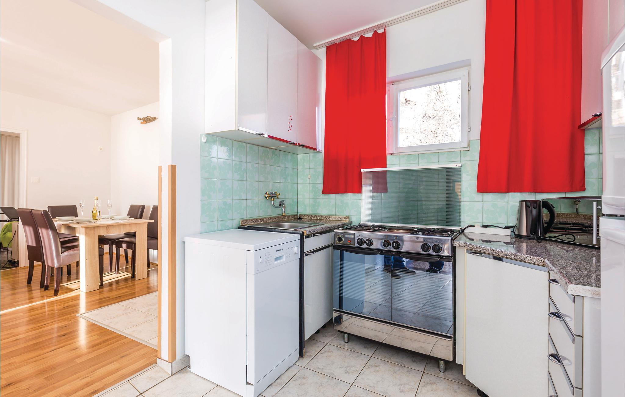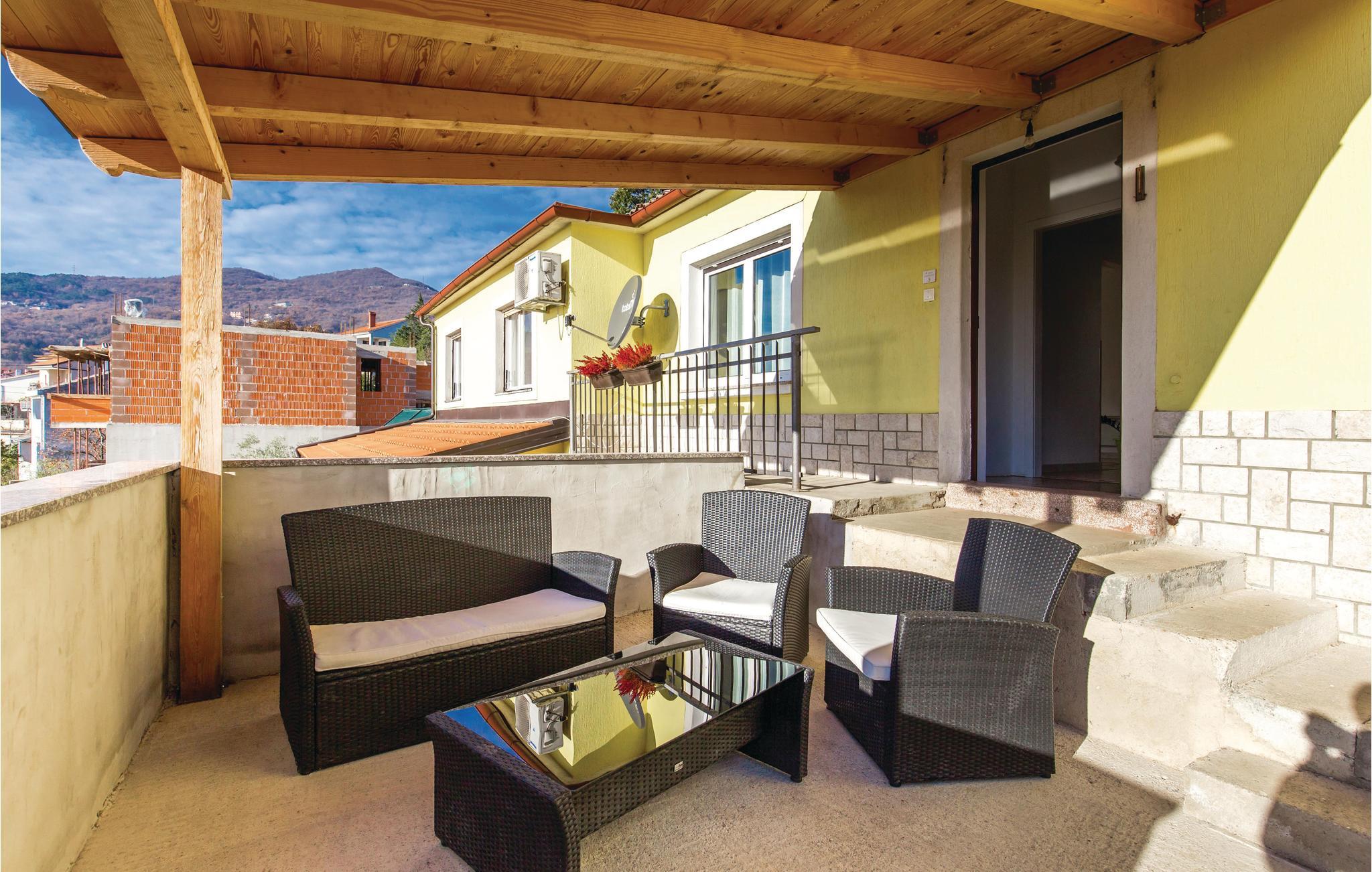 Over Kvernerbugten, nær Opatija, ligger byen Pobri med denne halvdel af et dobbelthus, der byder på god komfort til en familie eller venner under deres ophold. I stuen ligger der til særskilte etværelseslejligheder med direkte adgang til terrassen. Over en ydertrappe kommer I til lejligheden ovenpå med to soveværelser, køkken, stue og overdækket terrasse med delvis udsigt til havet. Til hyggelige timer står der her en overdækket pavillon samt en rustik taverna til jeres rådighed. I den indhegnede have kan I forfriske jer i poolen. I nærheden er der vandrings- og cykelstier, og med bilen når I nemt de nærmeste badestrande i Volosko, Opatija, Icici og den idylliske strandpromenade på ca. 12 km.