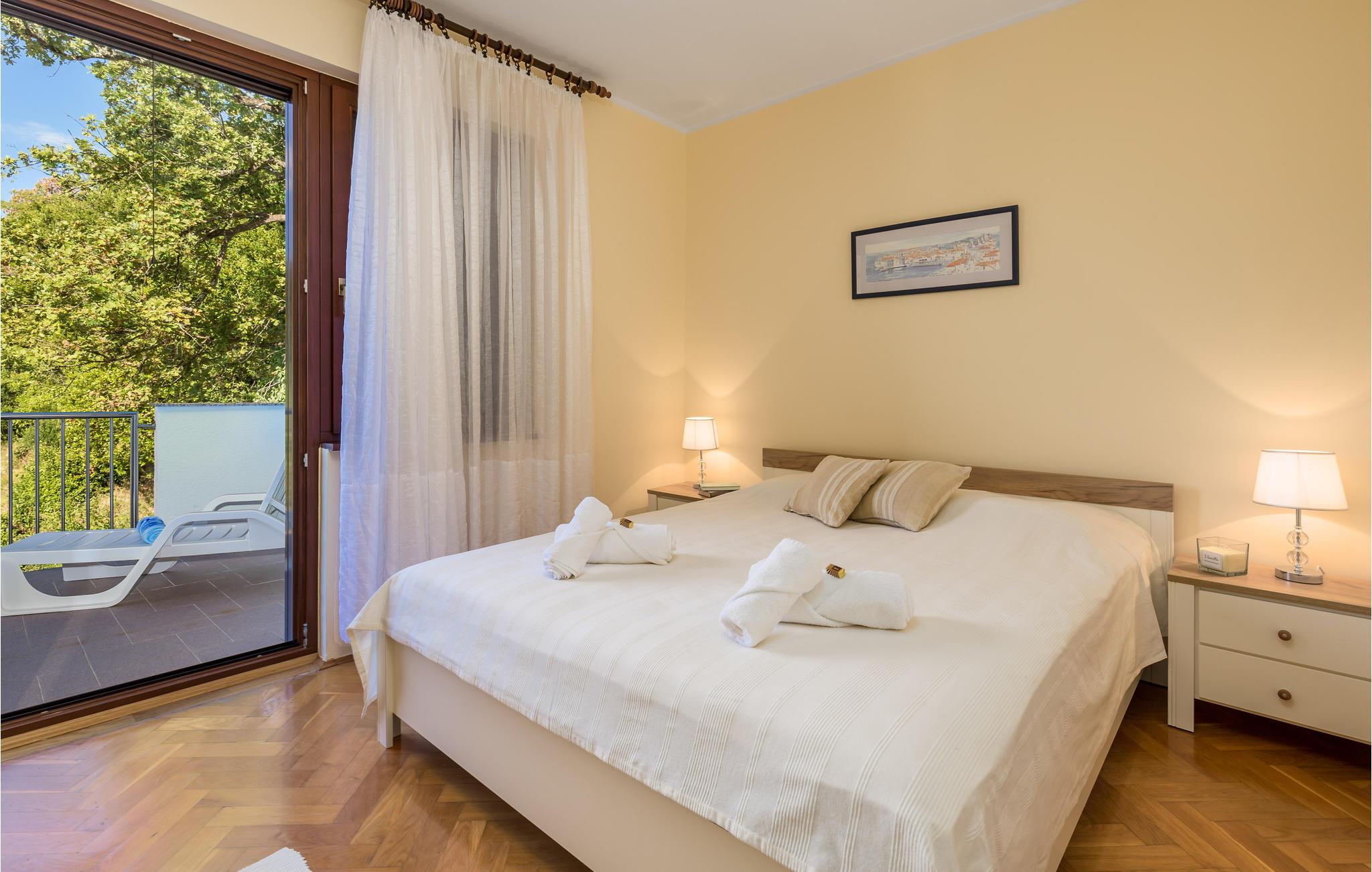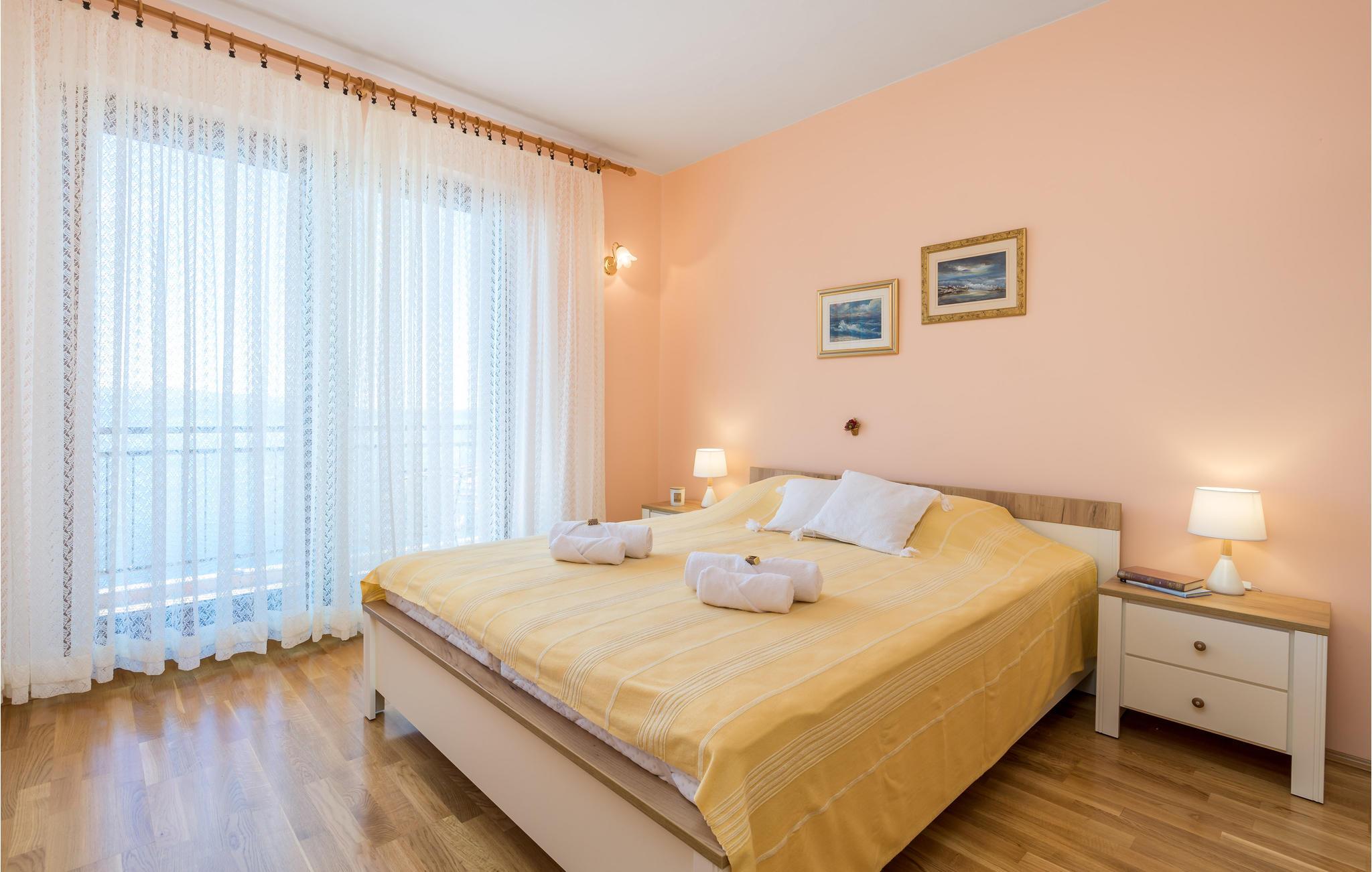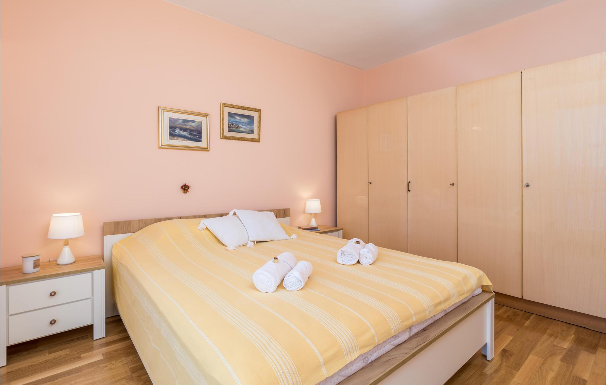 Lejligheden ligger på første sal og er hyggeligt indrettet, så her får I skønne rammer om en afslappende ferie når som helst på året. Klimaanlægget sørger for behagelige temperaturer, selv på varme sommerdage. Glæd jer til en vidunderlig havudsigt. Der er fire separate soveværelser og to badeværelser, så lejligheden er ideel til en større familie eller to par med børn.