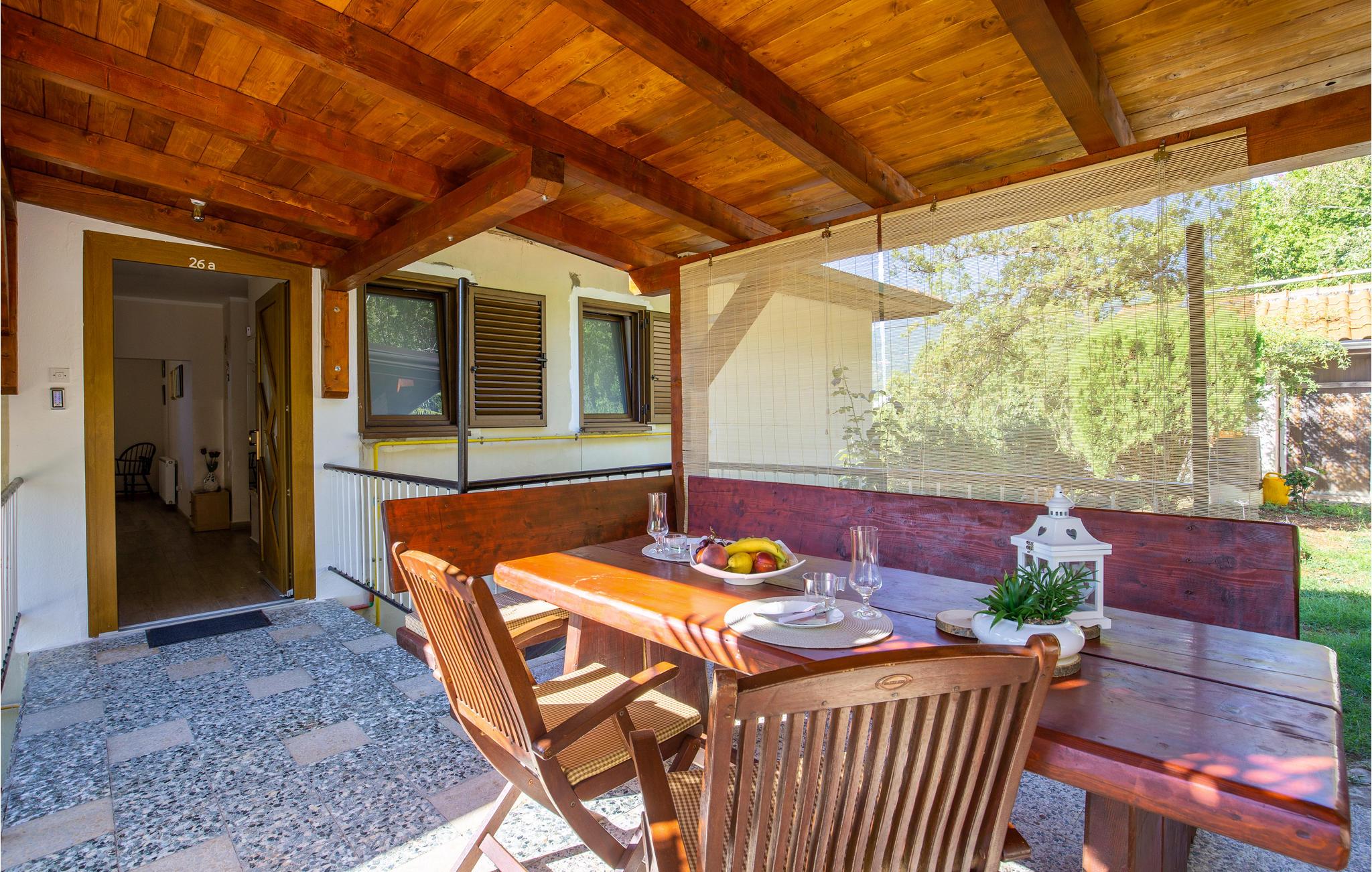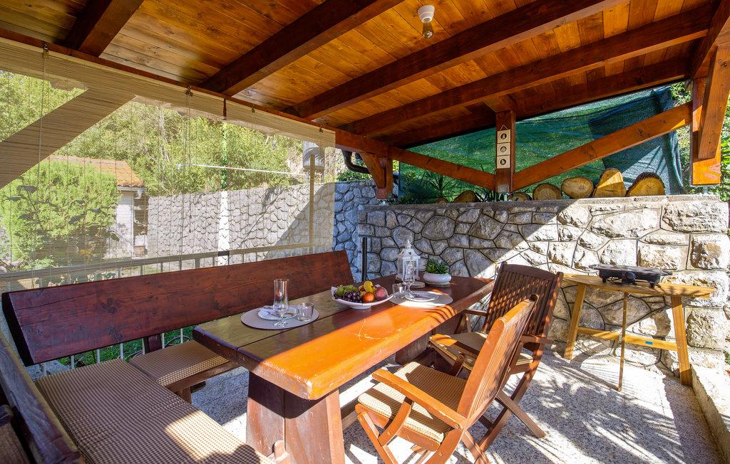 Bag huset er der en overdækket terrasse med grill og havemøbler. Garageparkering og en parkeringsplads på gaden til et ekstra køretøj følger også med.