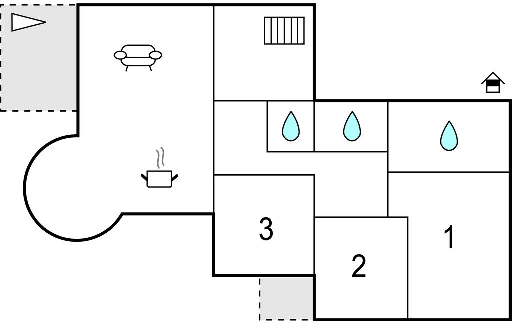 Badeværelse 11m2 (nr. 1) - WC. Varmt og koldt vand. Bruser og badekar