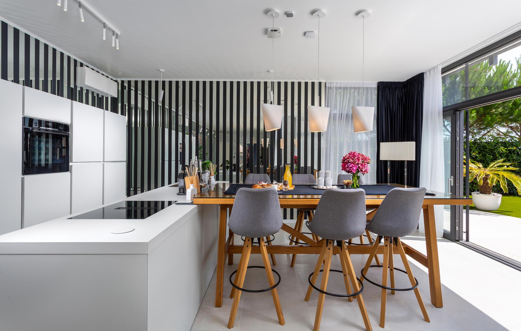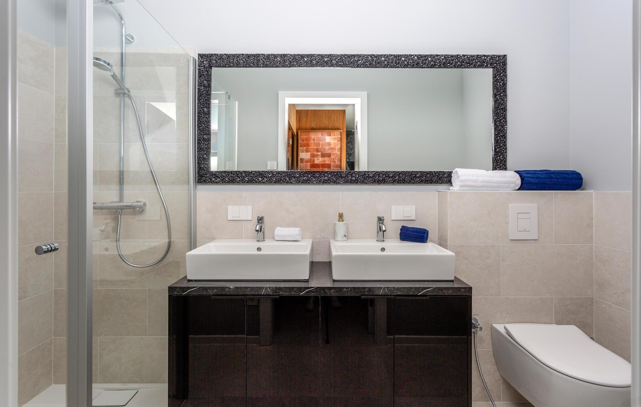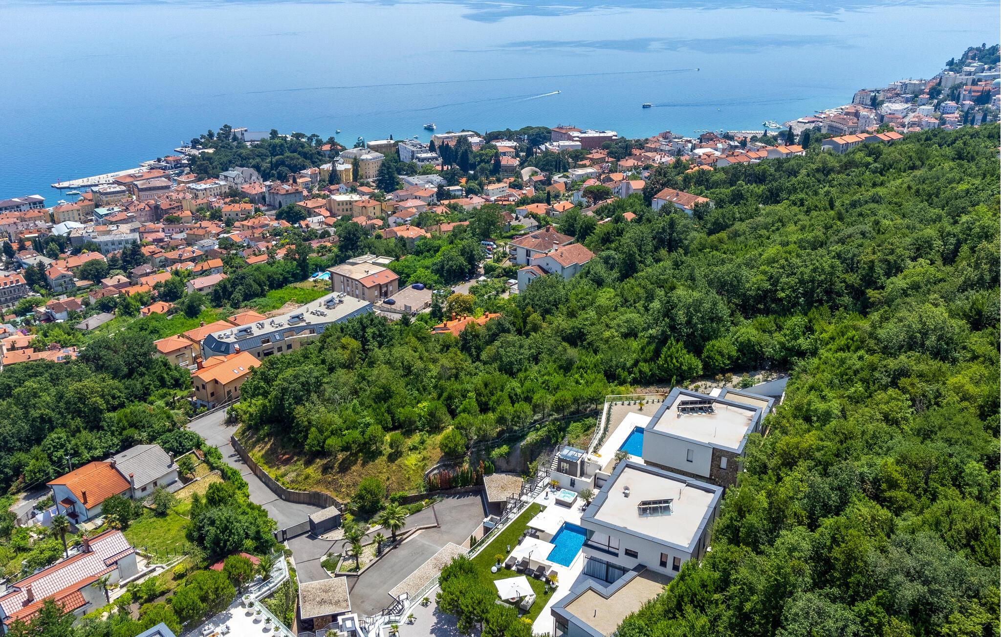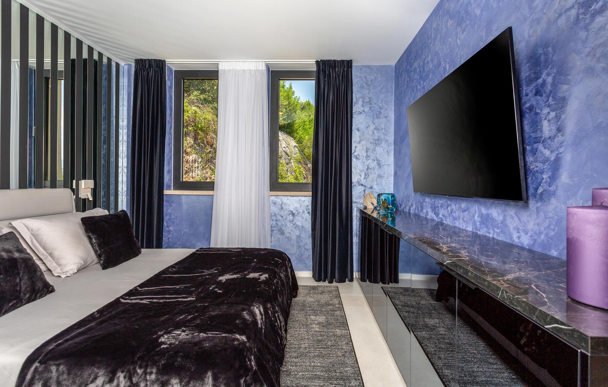 Hvis I er på udkig efter en ferieoplevelse langt udover det sædvanlige, er denne store, resort-lignende villa i Opatija det helt rette valg for jer. I bor tæt på centrum af byen på en klippe med en elevator, der fører dertil. Alt emmer simpelthen af luksus her. Alle soveværelser har eget badeværelse, så I kan nyde nattesøvnen og en rolig morgenstund i privatlivets trygge rammer, inden I mødes til morgenmaden ved det flotte spisebord. Her er masser af plads til fælles aktiviteter, I kan spise sammen foran de store panoramavinduer, som gør det muligt at nyde den spektakulære panoramaudsigt over havet, selv når i sveder igennem i saunaen efter en aktiv feriedag.