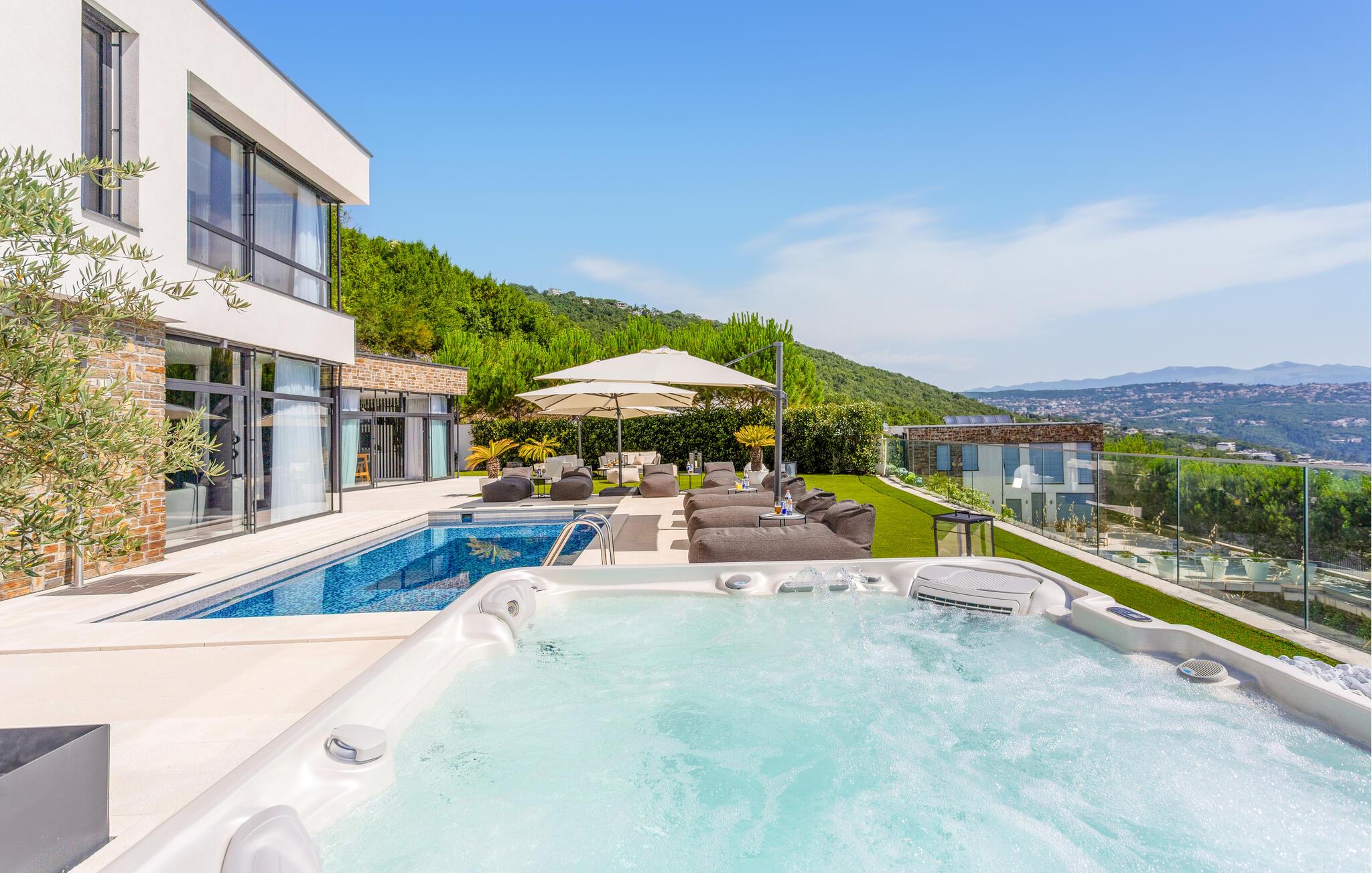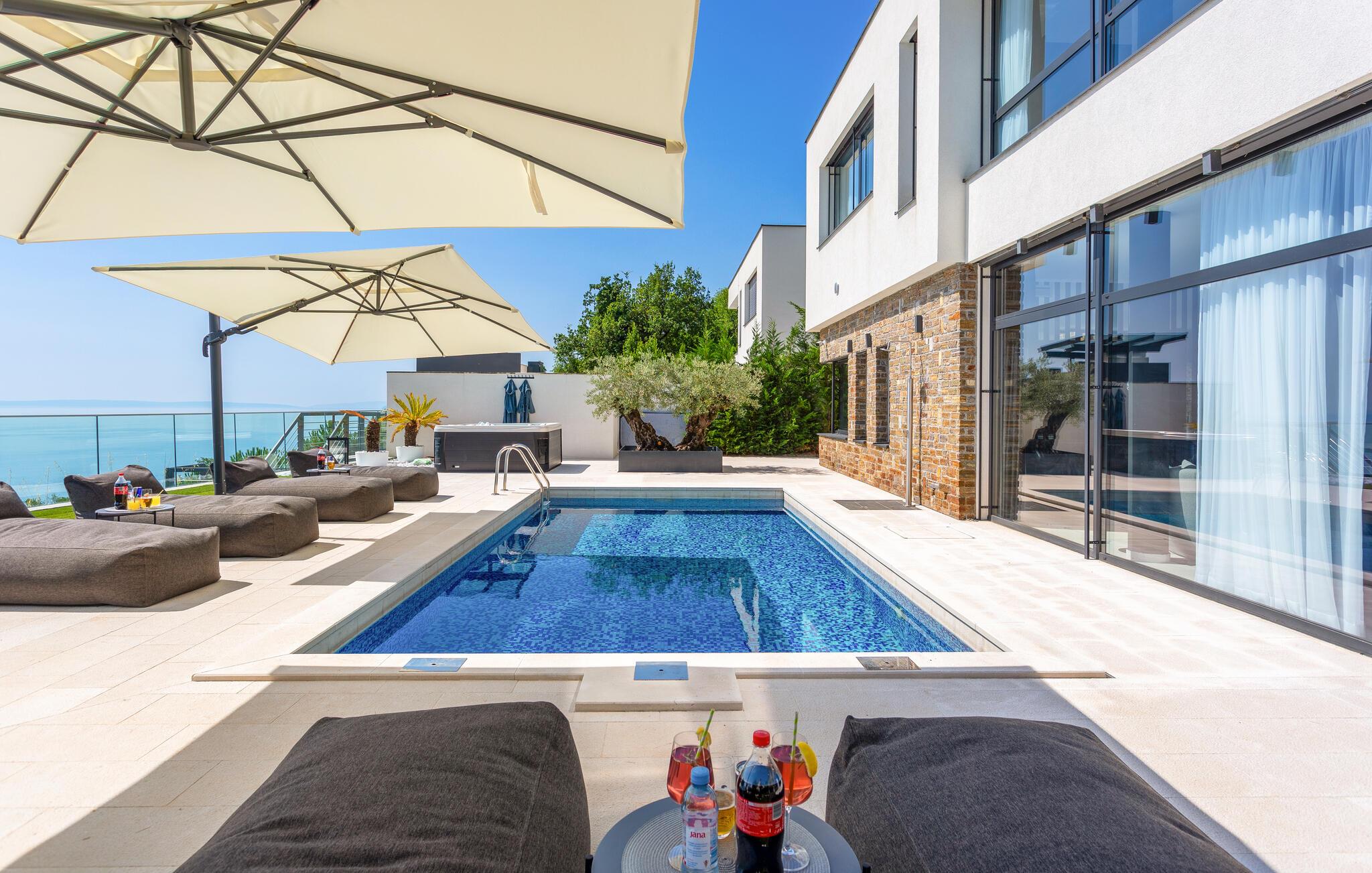Glæd jer til en vaskeægte drømmeferie i denne store luksusvilla med pool, havudsigt og masser af wellness.