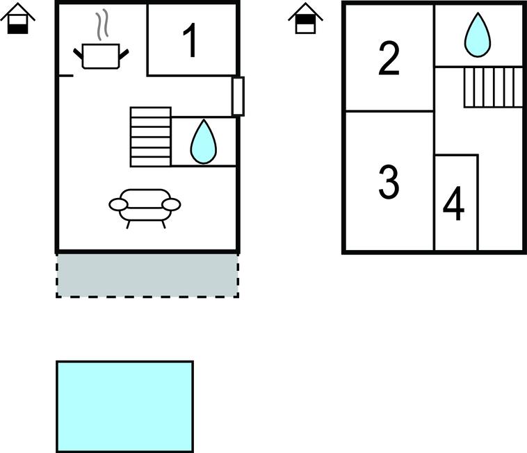 Badeværelse 5m2 (nr. 1) - WC. Varmt og koldt vand. Bruser
