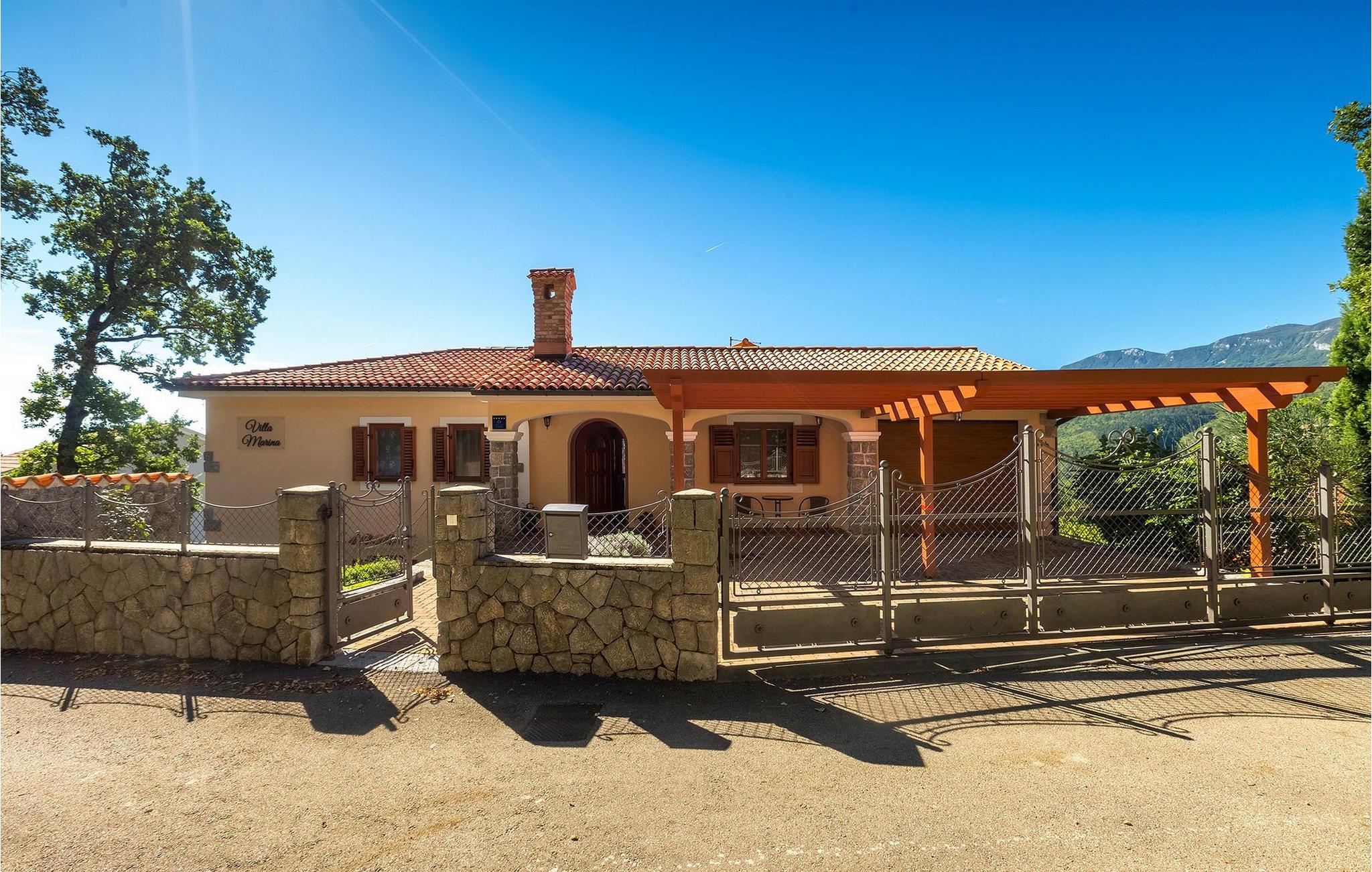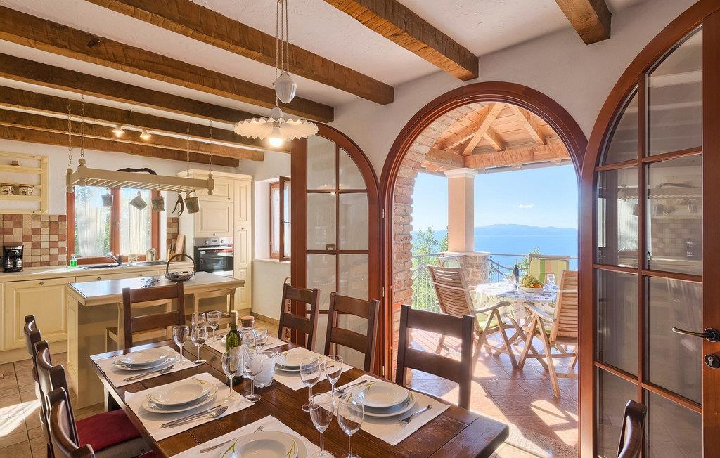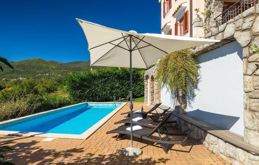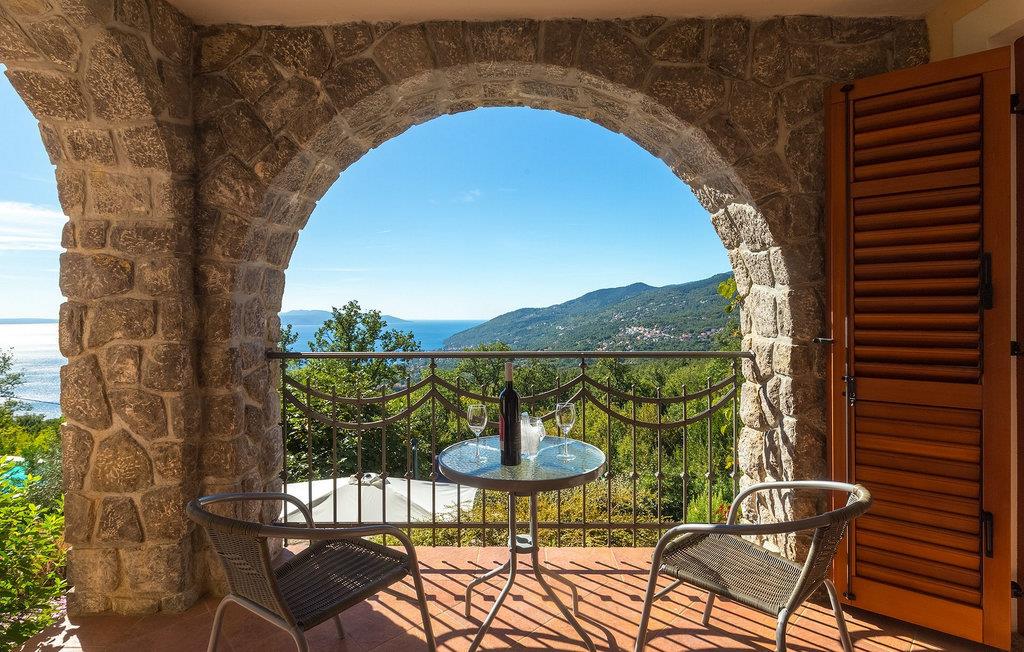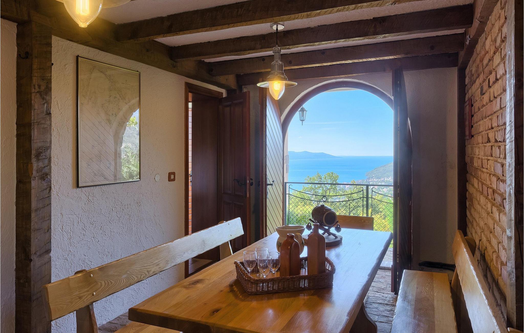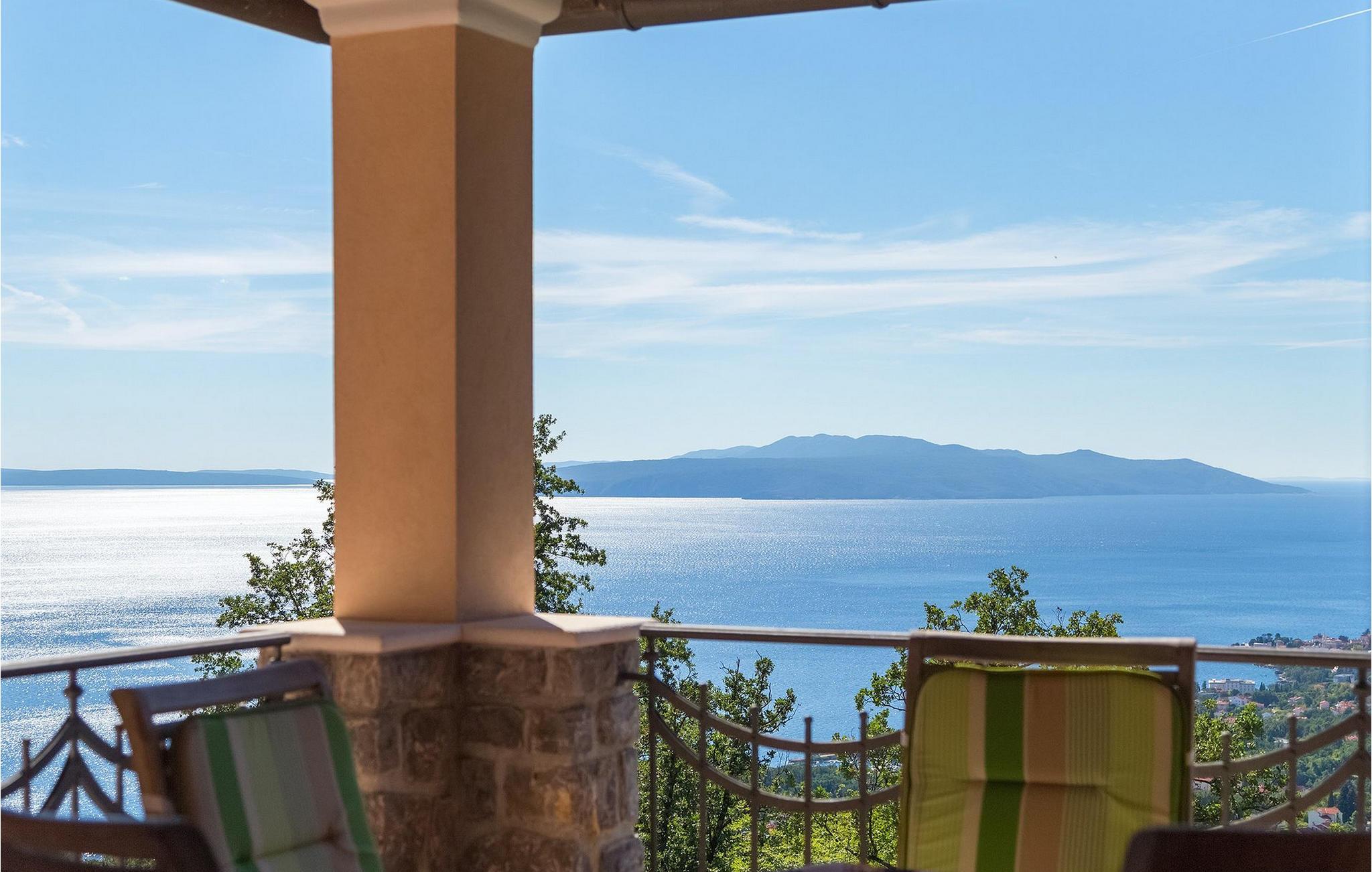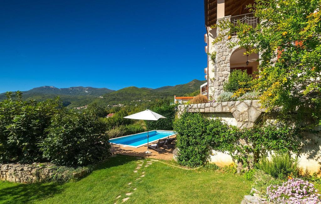 Omgivet af Kvarner-bugten fra forsiden og Ucka-bjerget i baggrunden, er placeringen af Villa Opatija intet mindre end fantastisk. Villaen kan rumme op til 8 gæster, der er i for en rigtig godbid. Hovedindgangen fører dig til første sal, hvor du finder en hyggelig og lun stue. Fra balkonen kan du nyde den betagende udsigt over omgivelserne. På denne etage finder du også et soveværelse udstyret med en dobbeltseng, et badeværelse og et veludstyret køkken med spiseplads. 3 resterende værelser og 2 badeværelser er fordelt over stueetagen. Der er også en typisk kroatisk "konoba" på denne etage, hvor hele gruppen kan tilbringe tid sammen. Villaens nederste etage er ideel for dem, der kan lide det "ekstra strejf af luksus" i deres feriehuse. Du kan forblive aktiv og træne i dit eget private fitnesscenter eller slappe af i villaens sauna. Denne etage har direkte udgang til poolområdet samt haven. Nyd solen ved poolen eller spis al fresco på villaens terrasse. Denne villa giver virkelig alt, hvad du kan ønske dig på din ferie! Veprinac, en lille bakketop by nær Opatija, var engang et populært turistcenter blandt besøgende fra hele Europa. Oprindelsen af navnet Veprinac er normalt forbundet med det kroatiske ord for slagterkost, en plante som vokser rigeligt i området. Gå en tur gennem byen og nyd en kop kaffe, mens du har udsigt over hele Kvarnerbugten. Veprinac ligger kun en kort køretur fra Opatija, en fantastisk kystby med smuk arkitektur og behageligt og mildt klima. Opatija har den længste historie inden for turisme i Kroatien, der går helt tilbage til det 19. århundrede, hvor det habsburgske dynasti forvandlede det til et rejsemål for adelige og aristokrater. Når du er i Opatija, skal du sørge for at besøge Villa Angiolina, som markerede begyndelsen på turismen i dette område, eller gå en tur gennem parkerne St. Jakob og Park Angiolina, begge bygget i det 19. århundrede. Den bedste måde at lære området at kende er gennem Lungomare-promenaden, der strækker sig fra Preluka til Lovran og forbinder Opatija med en række mindre strande og bugter.