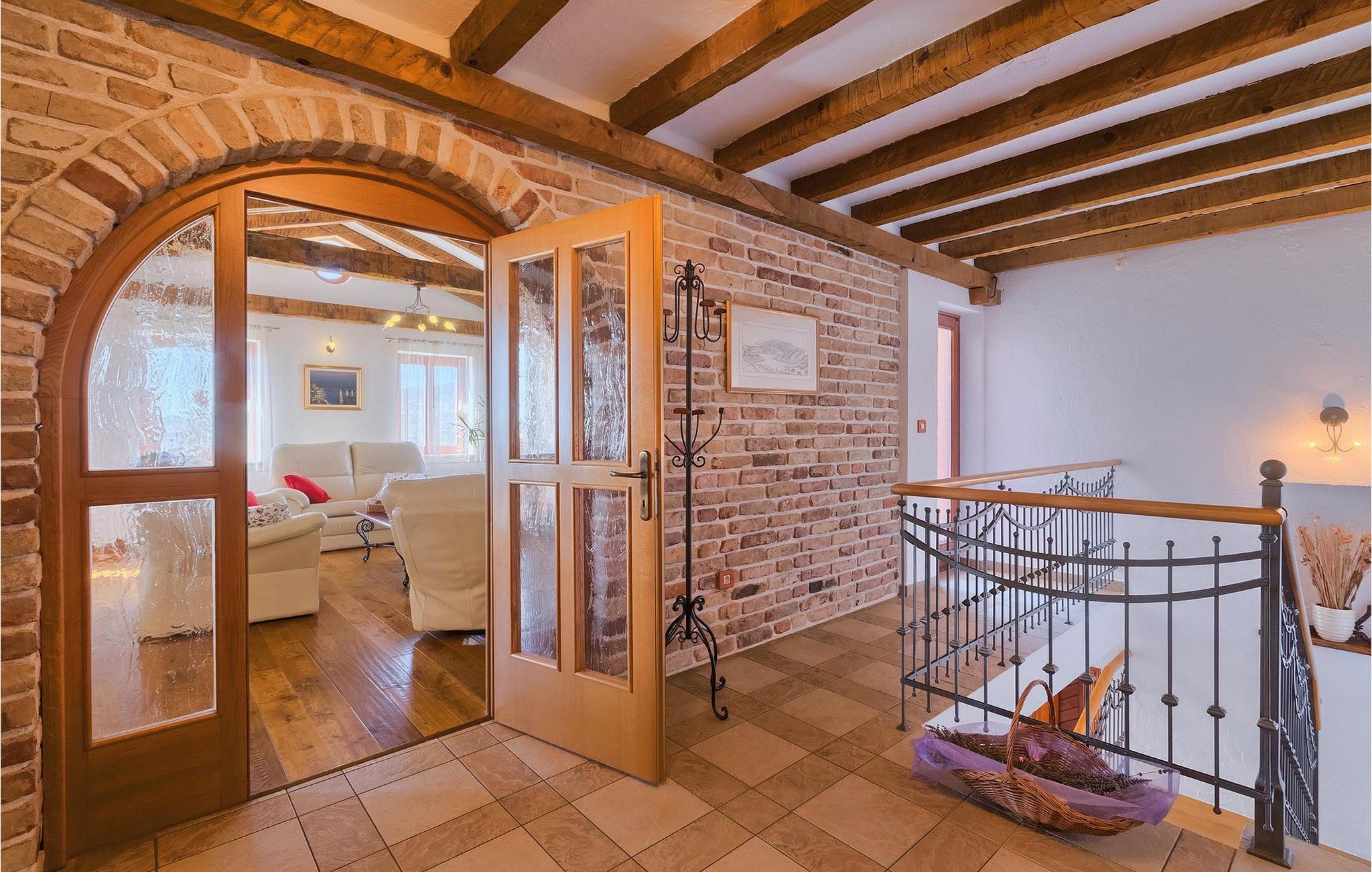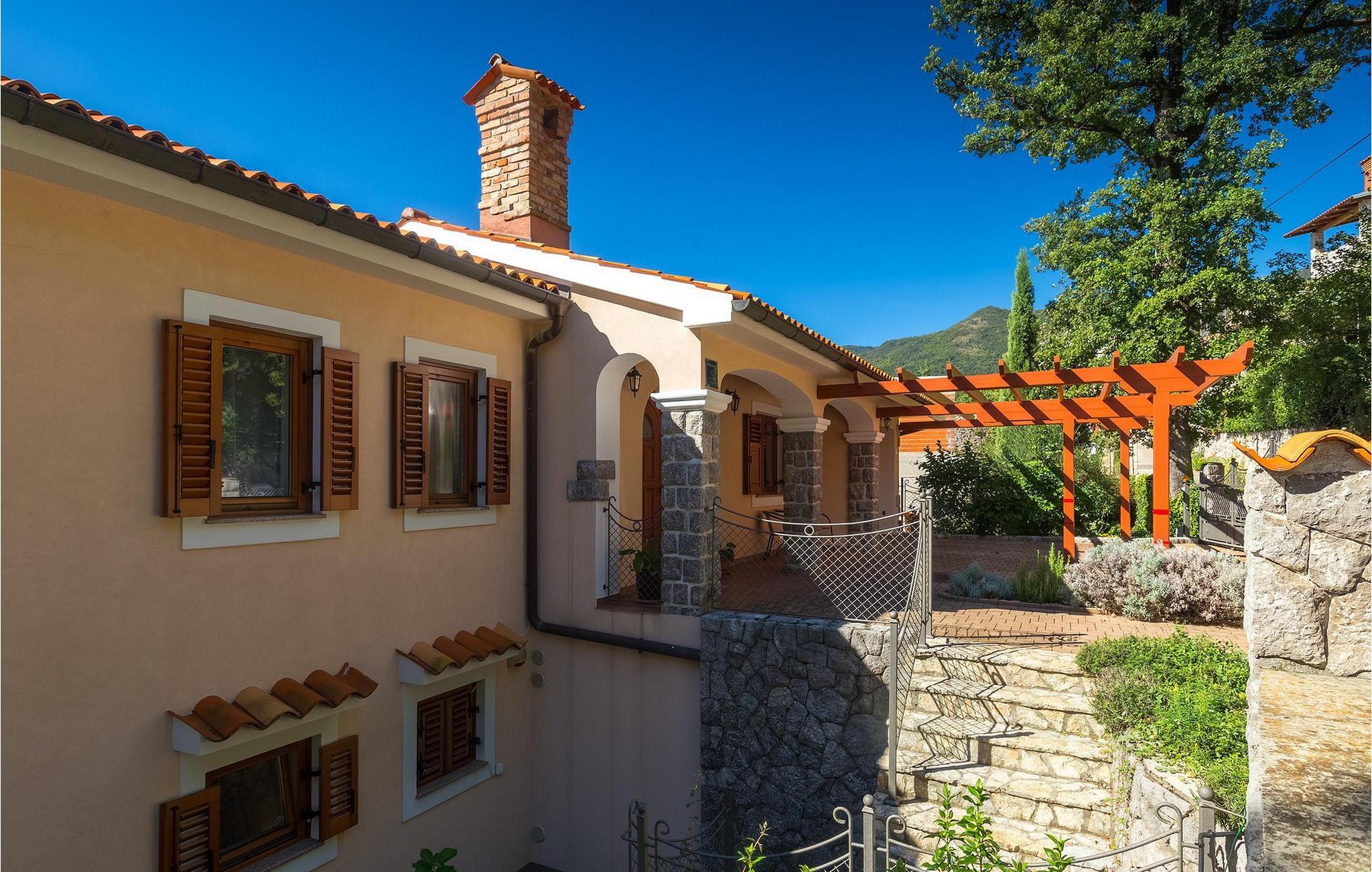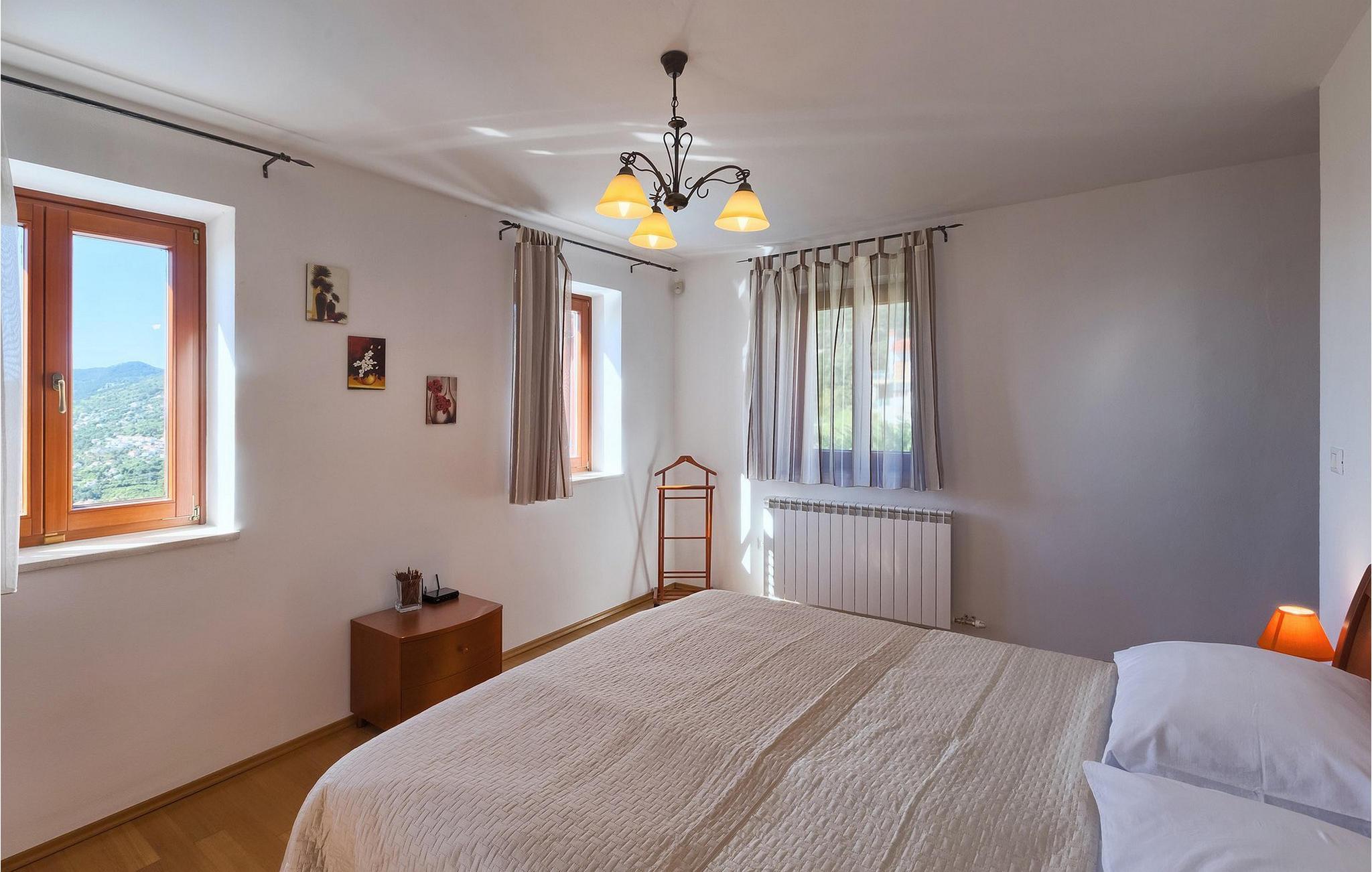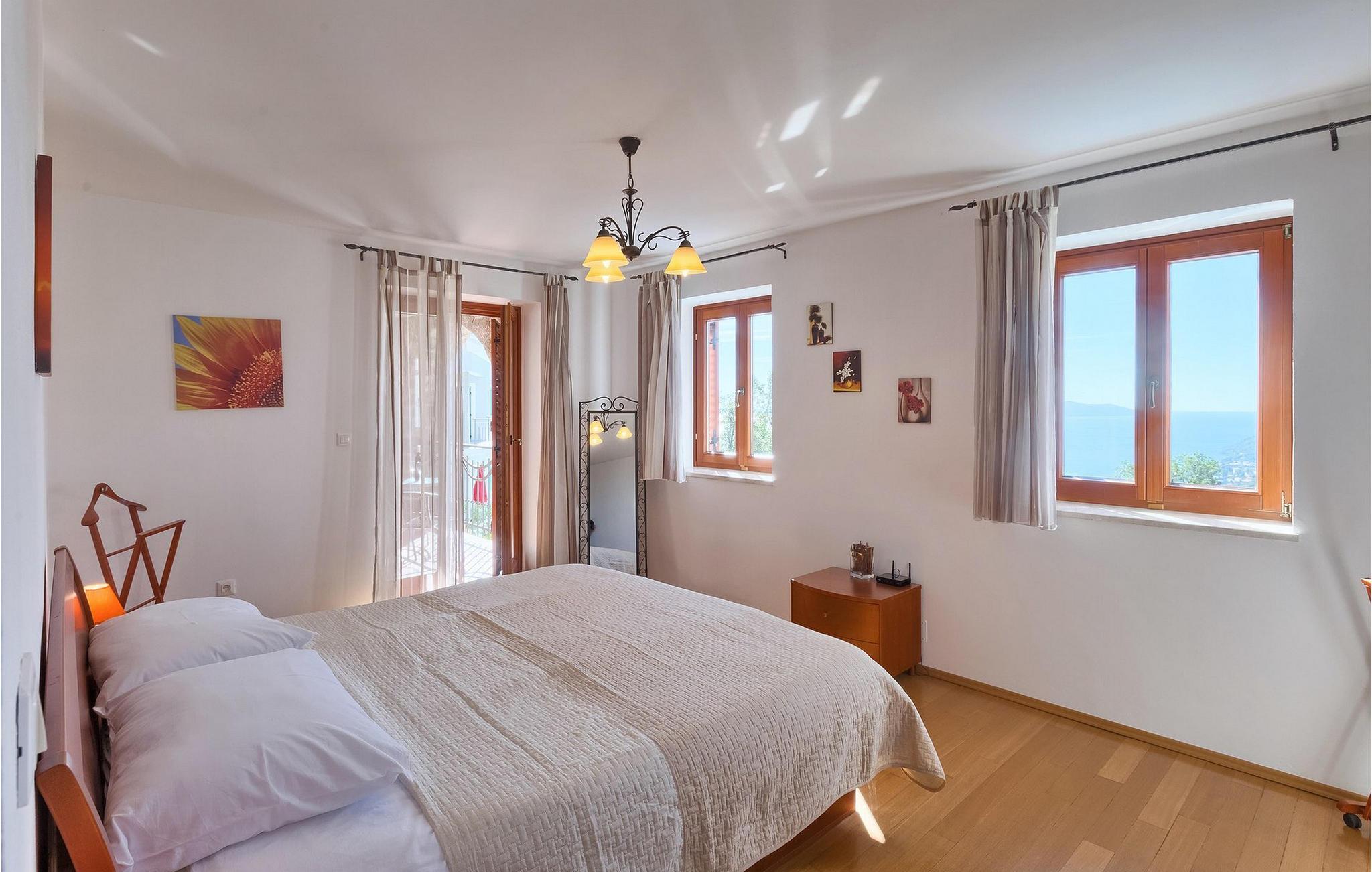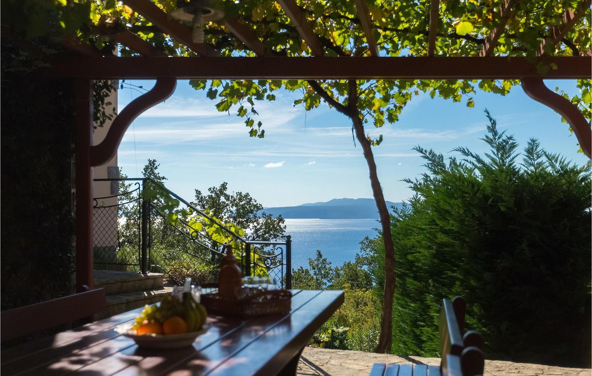 Omgivet af Kvarner-bugten fra forsiden og Ucka-bjerget i baggrunden, er placeringen af Villa Opatija intet mindre end fantastisk. Villaen kan rumme op til 8 gæster, der er i for en rigtig godbid. Hovedindgangen fører dig til første sal, hvor du finder en hyggelig og lun stue. Fra balkonen kan du nyde den betagende udsigt over omgivelserne. På denne etage finder du også et soveværelse udstyret med en dobbeltseng, et badeværelse og et veludstyret køkken med spiseplads. 3 resterende værelser og 2 badeværelser er fordelt over stueetagen. Der er også en typisk kroatisk "konoba" på denne etage, hvor hele gruppen kan tilbringe tid sammen. Villaens nederste etage er ideel for dem, der kan lide det "ekstra strejf af luksus" i deres feriehuse. Du kan forblive aktiv og træne i dit eget private fitnesscenter eller slappe af i villaens sauna. Denne etage har direkte udgang til poolområdet samt haven. Nyd solen ved poolen eller spis al fresco på villaens terrasse. Denne villa giver virkelig alt, hvad du kan ønske dig på din ferie! Veprinac, en lille bakketop by nær Opatija, var engang et populært turistcenter blandt besøgende fra hele Europa. Oprindelsen af navnet Veprinac er normalt forbundet med det kroatiske ord for slagterkost, en plante som vokser rigeligt i området. Gå en tur gennem byen og nyd en kop kaffe, mens du har udsigt over hele Kvarnerbugten. Veprinac ligger kun en kort køretur fra Opatija, en fantastisk kystby med smuk arkitektur og behageligt og mildt klima. Opatija har den længste historie inden for turisme i Kroatien, der går helt tilbage til det 19. århundrede, hvor det habsburgske dynasti forvandlede det til et rejsemål for adelige og aristokrater. Når du er i Opatija, skal du sørge for at besøge Villa Angiolina, som markerede begyndelsen på turismen i dette område, eller gå en tur gennem parkerne St. Jakob og Park Angiolina, begge bygget i det 19. århundrede. Den bedste måde at lære området at kende er gennem Lungomare-promenaden, der strækker sig fra Preluka til Lovran og forbinder Opatija med en række mindre strande og bugter.