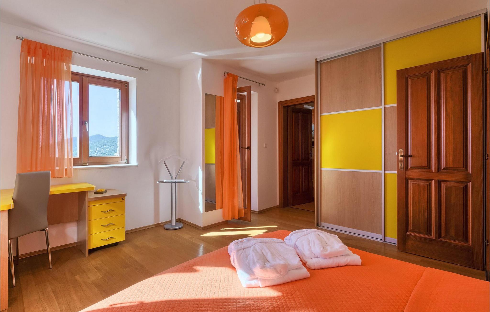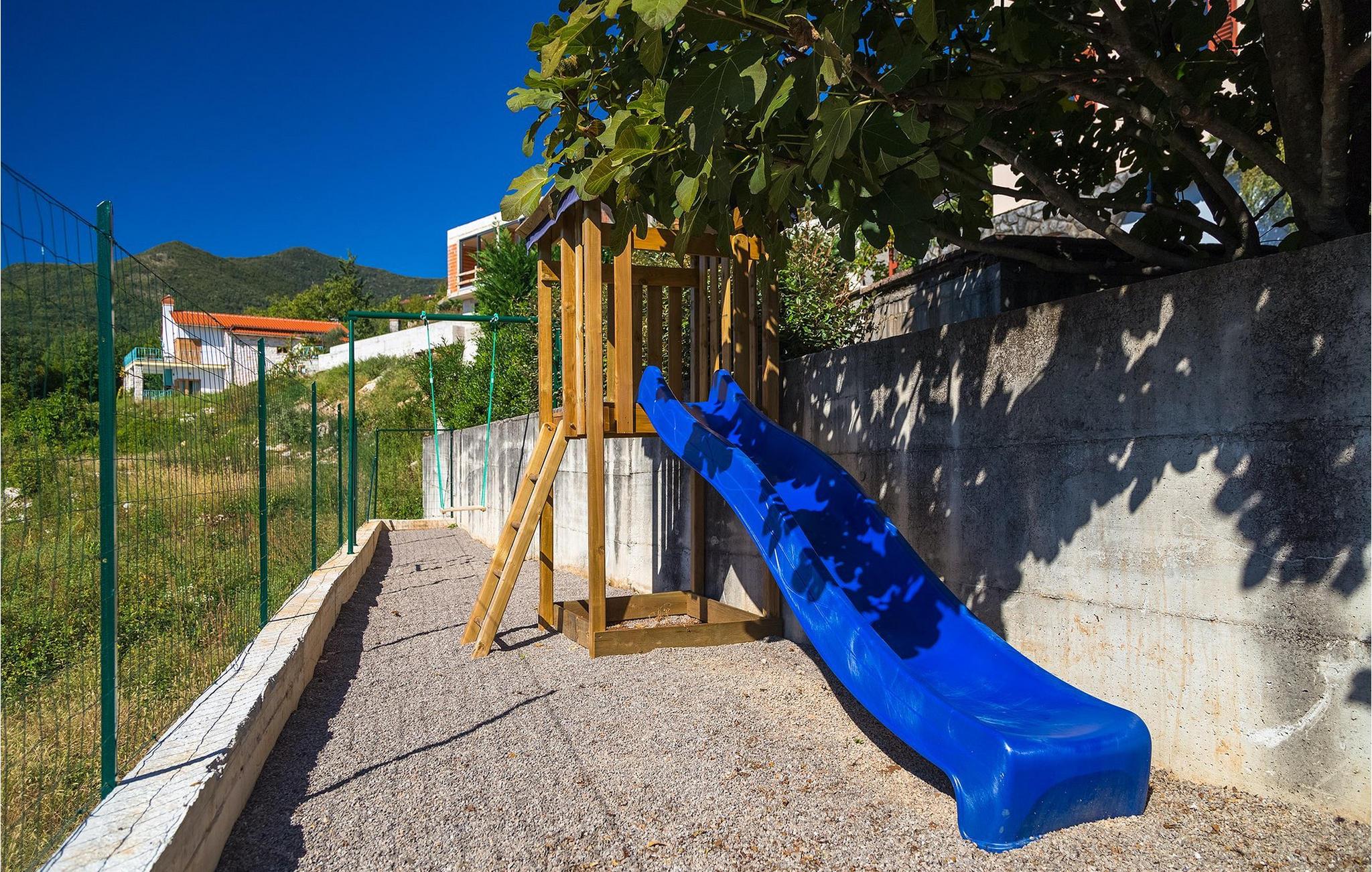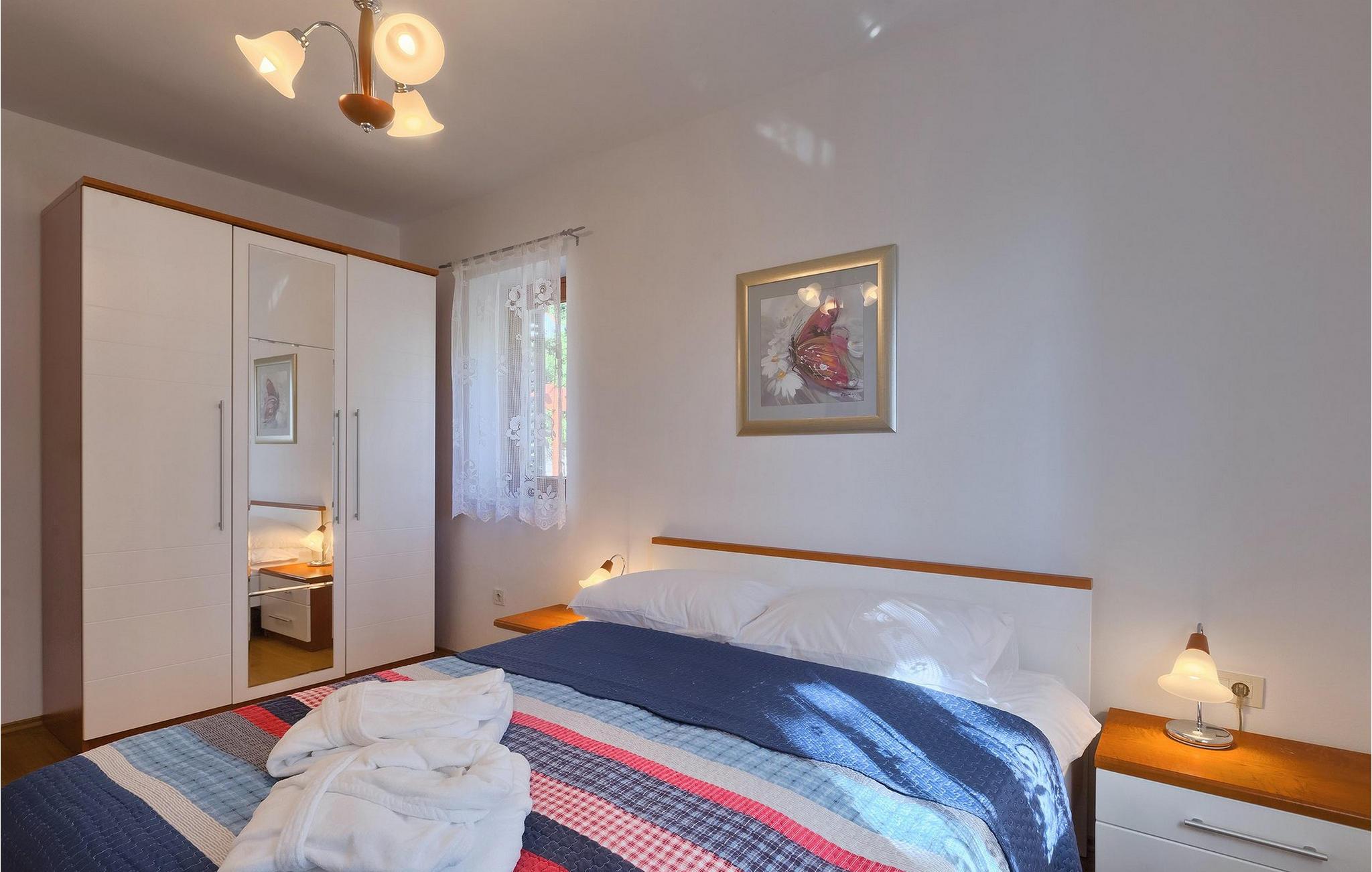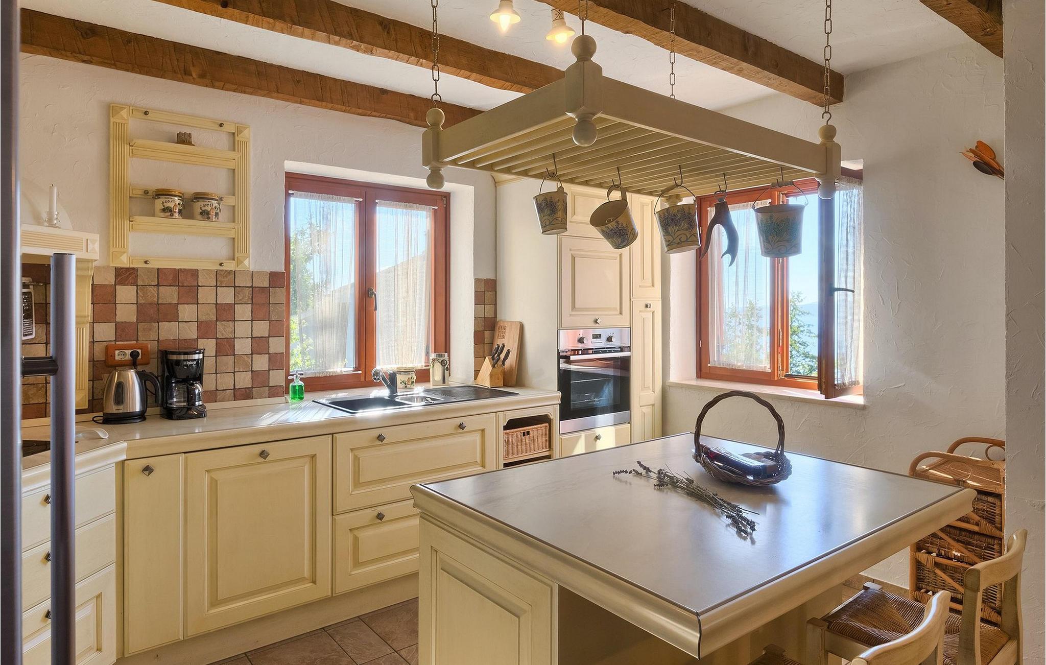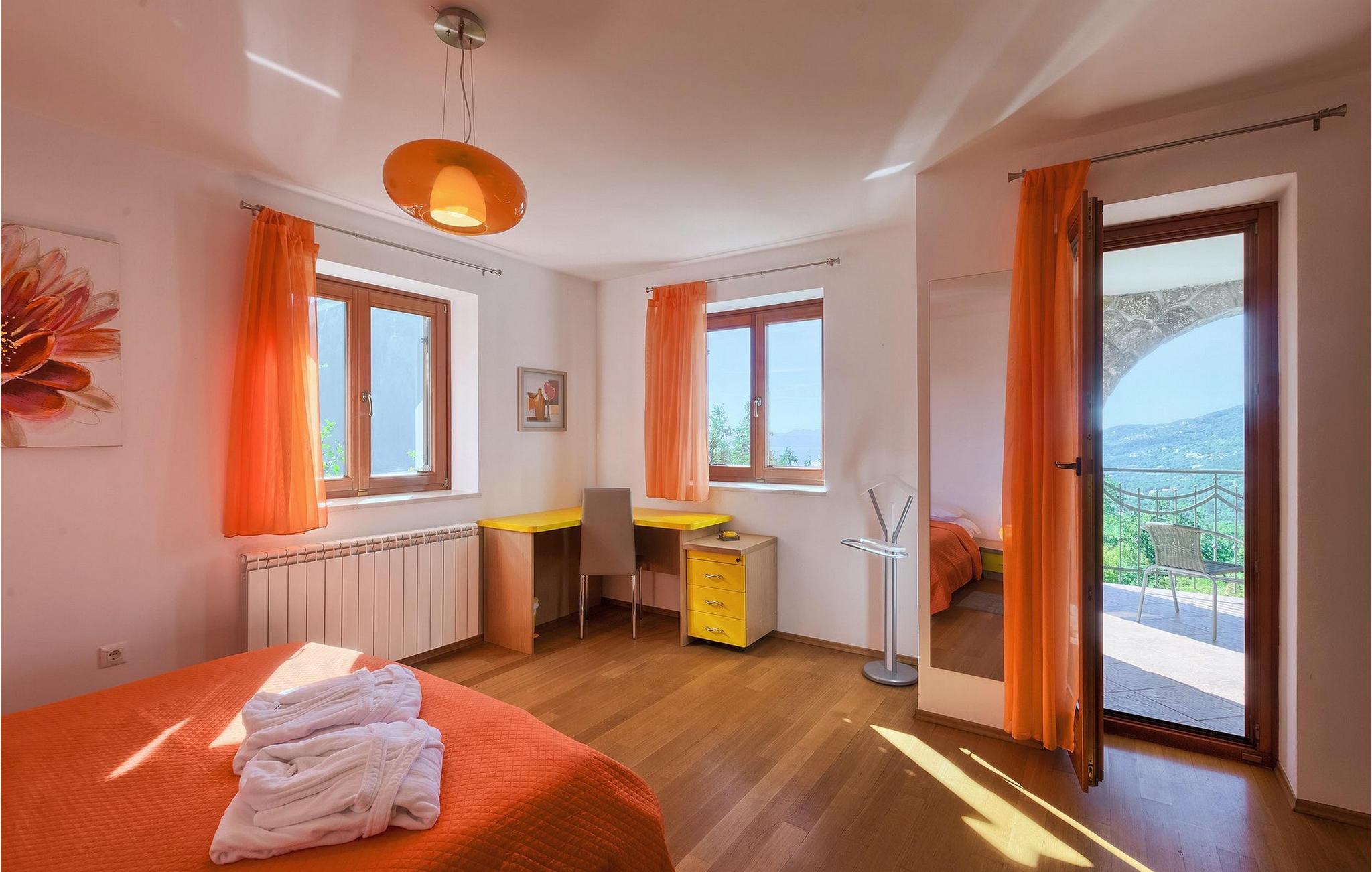 Omgivet af Kvarner-bugten fra forsiden og Ucka-bjerget i baggrunden, er placeringen af Villa Opatija intet mindre end fantastisk. Villaen kan rumme op til 8 gæster, der er i for en rigtig godbid. Hovedindgangen fører dig til første sal, hvor du finder en hyggelig og lun stue. Fra balkonen kan du nyde den betagende udsigt over omgivelserne. På denne etage finder du også et soveværelse udstyret med en dobbeltseng, et badeværelse og et veludstyret køkken med spiseplads. 3 resterende værelser og 2 badeværelser er fordelt over stueetagen. Der er også en typisk kroatisk "konoba" på denne etage, hvor hele gruppen kan tilbringe tid sammen. Villaens nederste etage er ideel for dem, der kan lide det "ekstra strejf af luksus" i deres feriehuse. Du kan forblive aktiv og træne i dit eget private fitnesscenter eller slappe af i villaens sauna. Denne etage har direkte udgang til poolområdet samt haven. Nyd solen ved poolen eller spis al fresco på villaens terrasse. Denne villa giver virkelig alt, hvad du kan ønske dig på din ferie! Veprinac, en lille bakketop by nær Opatija, var engang et populært turistcenter blandt besøgende fra hele Europa. Oprindelsen af navnet Veprinac er normalt forbundet med det kroatiske ord for slagterkost, en plante som vokser rigeligt i området. Gå en tur gennem byen og nyd en kop kaffe, mens du har udsigt over hele Kvarnerbugten. Veprinac ligger kun en kort køretur fra Opatija, en fantastisk kystby med smuk arkitektur og behageligt og mildt klima. Opatija har den længste historie inden for turisme i Kroatien, der går helt tilbage til det 19. århundrede, hvor det habsburgske dynasti forvandlede det til et rejsemål for adelige og aristokrater. Når du er i Opatija, skal du sørge for at besøge Villa Angiolina, som markerede begyndelsen på turismen i dette område, eller gå en tur gennem parkerne St. Jakob og Park Angiolina, begge bygget i det 19. århundrede. Den bedste måde at lære området at kende er gennem Lungomare-promenaden, der strækker sig fra Preluka til Lovran og forbinder Opatija med en række mindre strande og bugter.