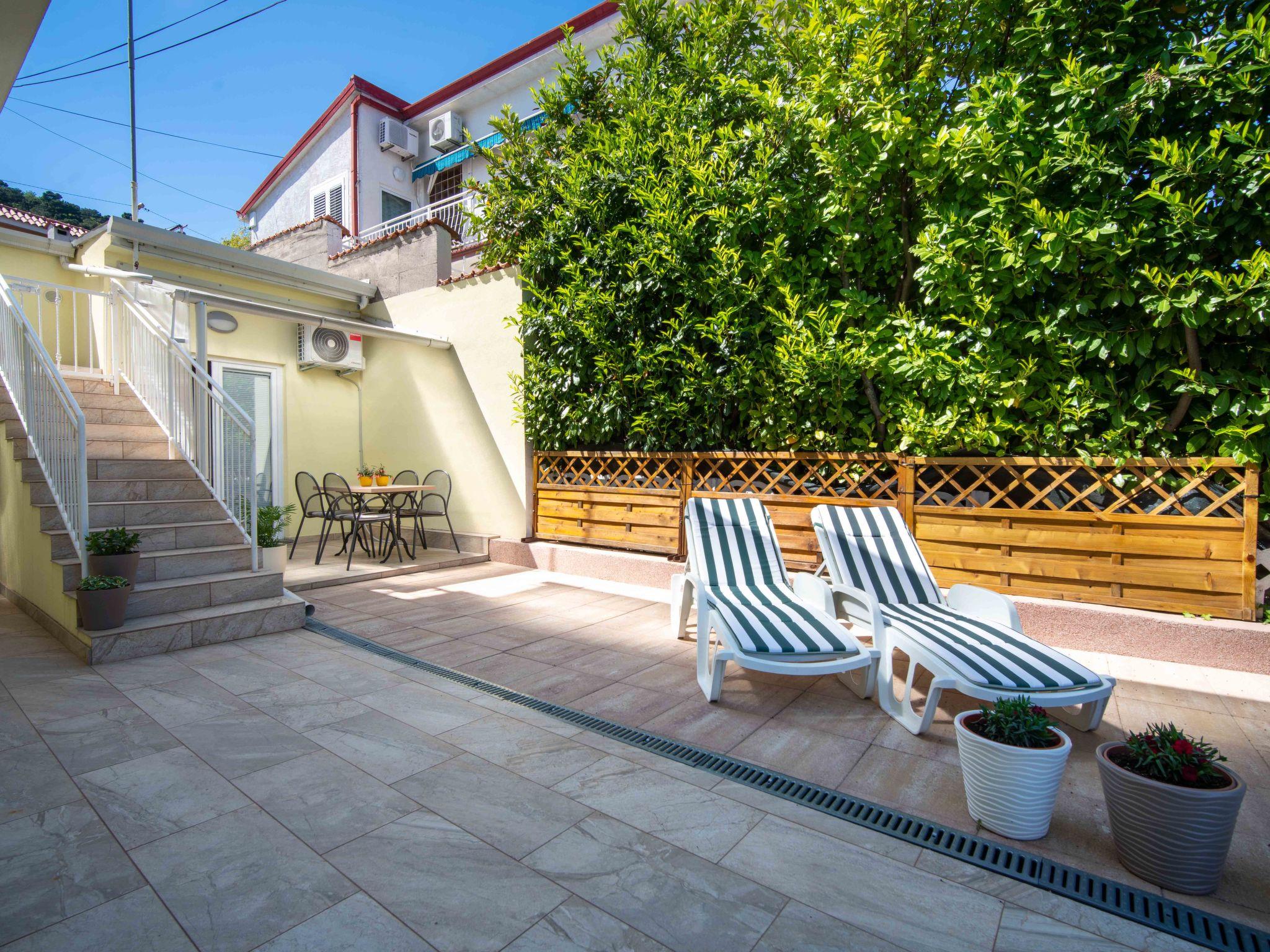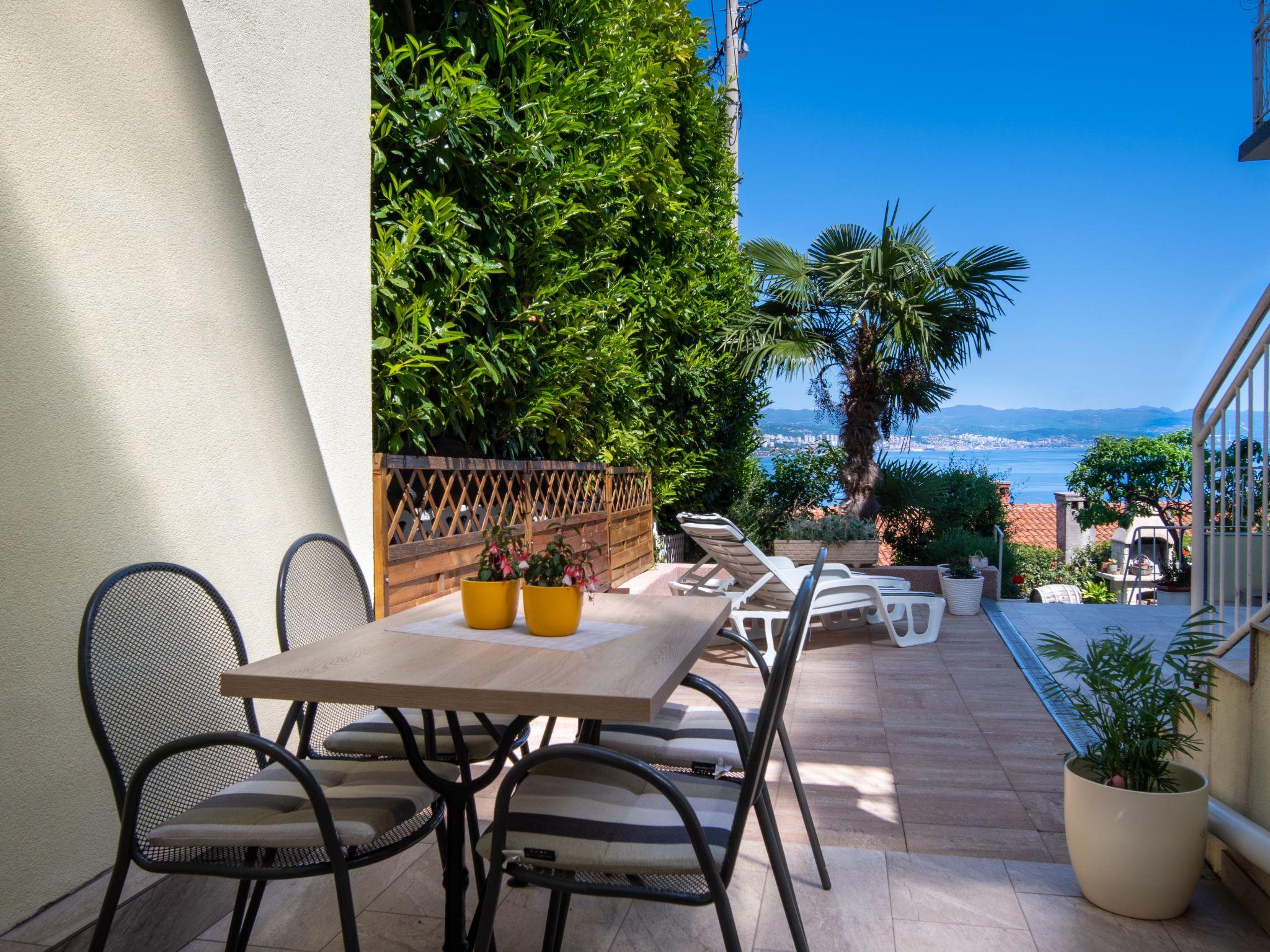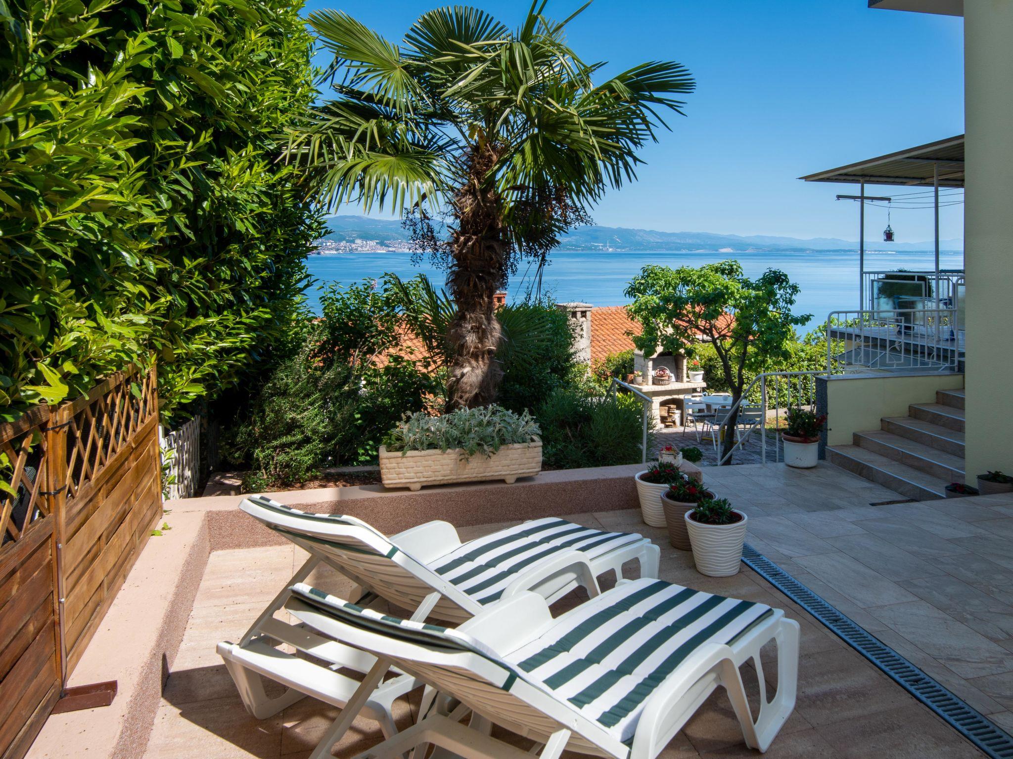 Semi-detached house "Bono". 1.5 km from the centre of Opatija, in a quiet, sunny, elevated position, 1.5 km from the sea, 1.5 km from the beach, in a cul-de-sac. For shared use: property 1'800 m2 (fenced) with plants and flowers. Private: terrace (25 m2), garden furniture, barbecue. In the house: internet access. Parking at the house on the premises. Shop 1.5 km, supermarket 2.3 km, restaurant 1.5 km, bus stop 1.3 km, public bathing area 1.5 km, concrete beach 1.5 km. Tennis 2.3 km.