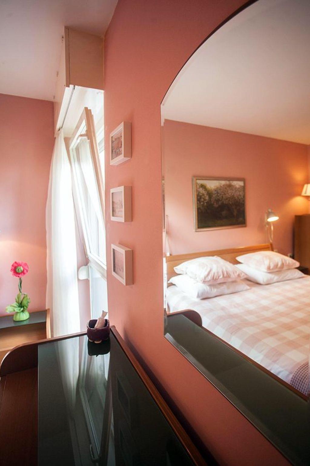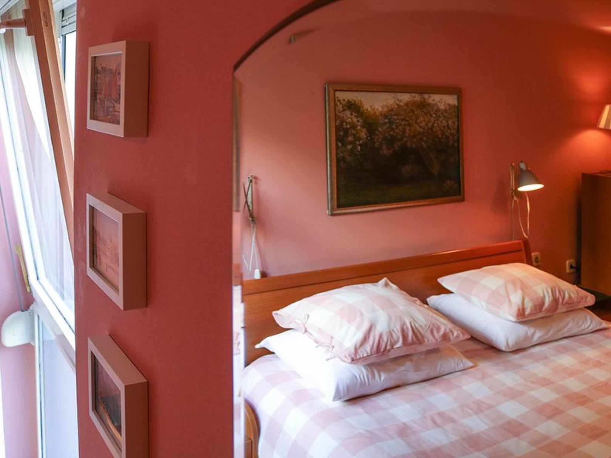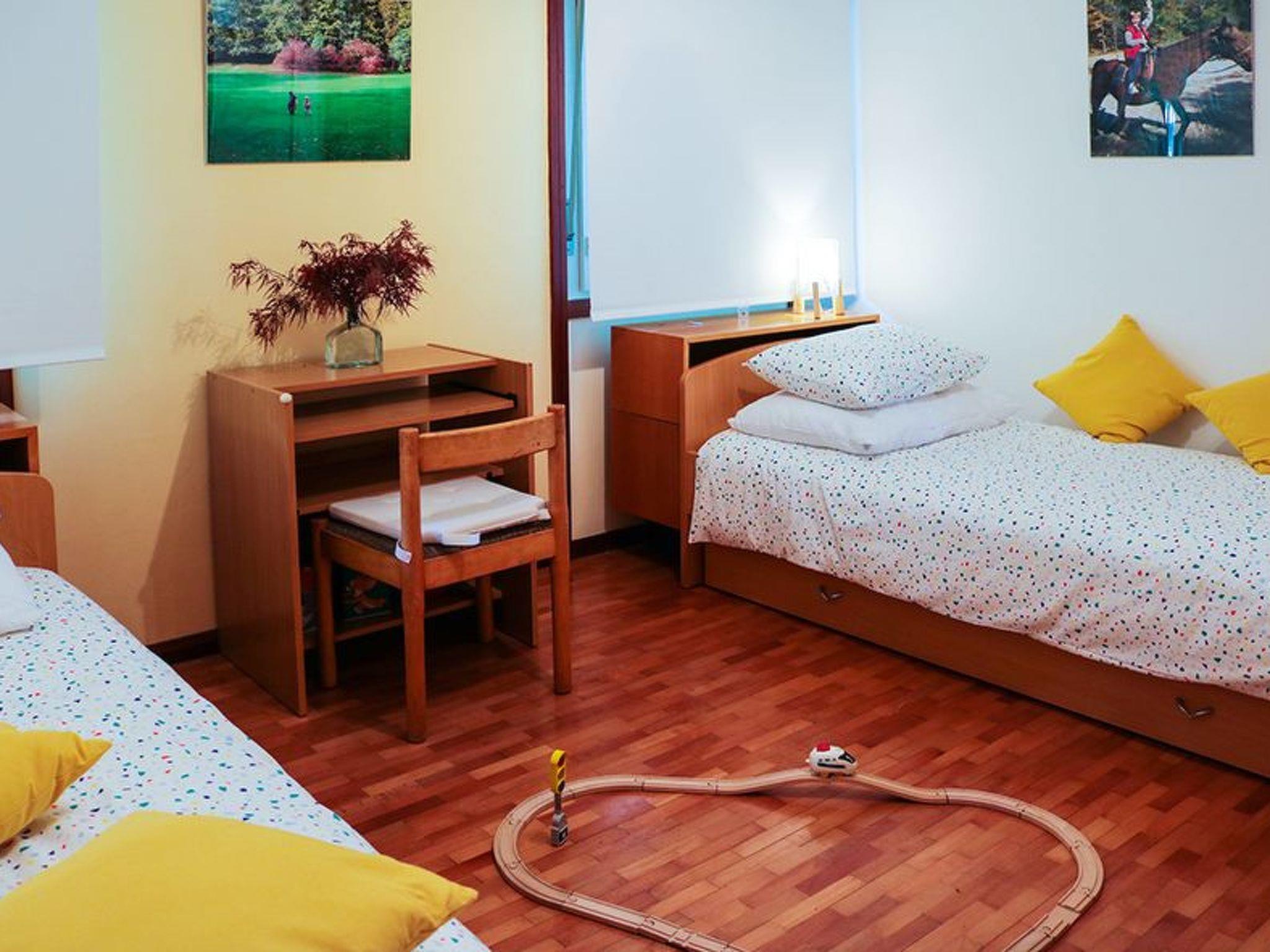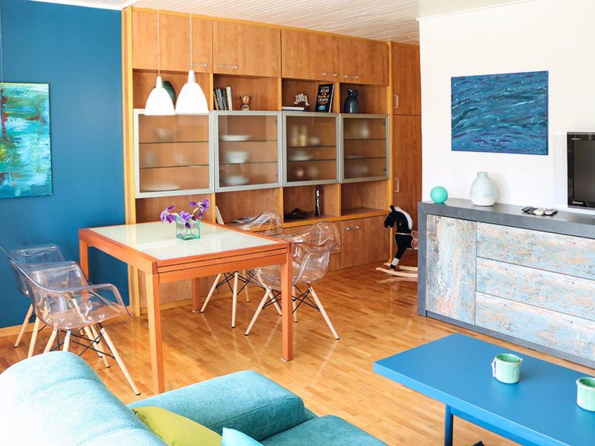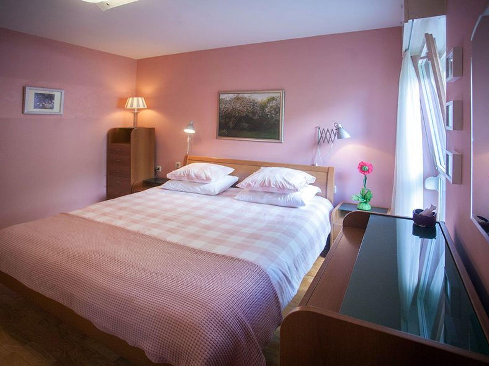 The apartment is on the first floor of the villa and can accommodate five people. It has a separate and fully-equipped kitchen with a gas and electric stove, oven, microwave, fridge with freezer compartment and dishwasher. The kitchen leads out onto the garden terrace. There are two bedrooms with a comfortable double bed, two single beds and a sofa bed. Both bedrooms also have a wardrobe and a dresser. The living and dining room has one big sofa and a big LCD TV with satellite channels in the living area and a big dining table with chairs in the dining area. There is also air conditioning and central heating for the winter. The bathroom provides a shower, bidet and toilet. There is a wardrobe in the corridor. The living room facing south looks out over the villa garden, the centuries-old park and the blue sea.