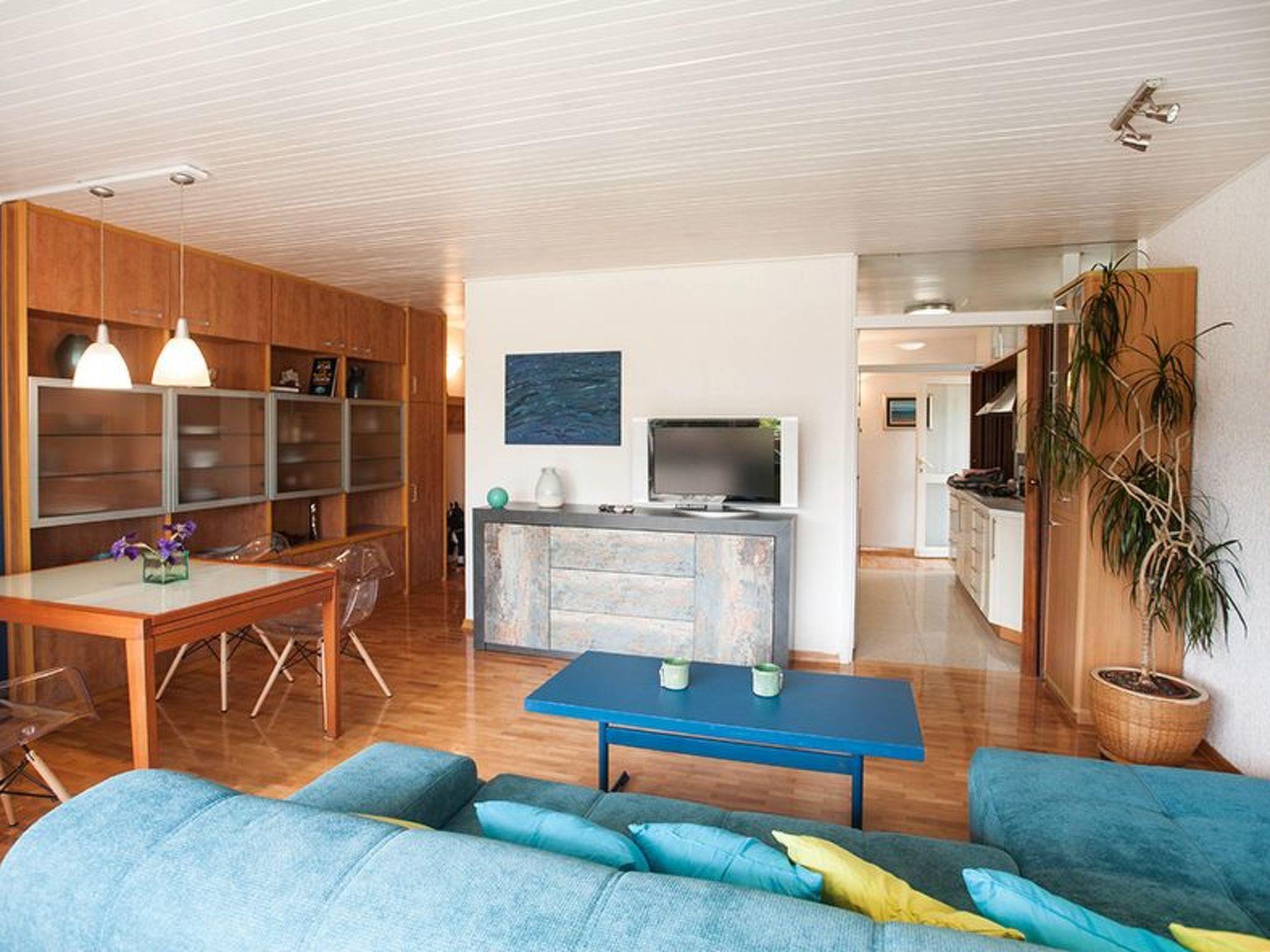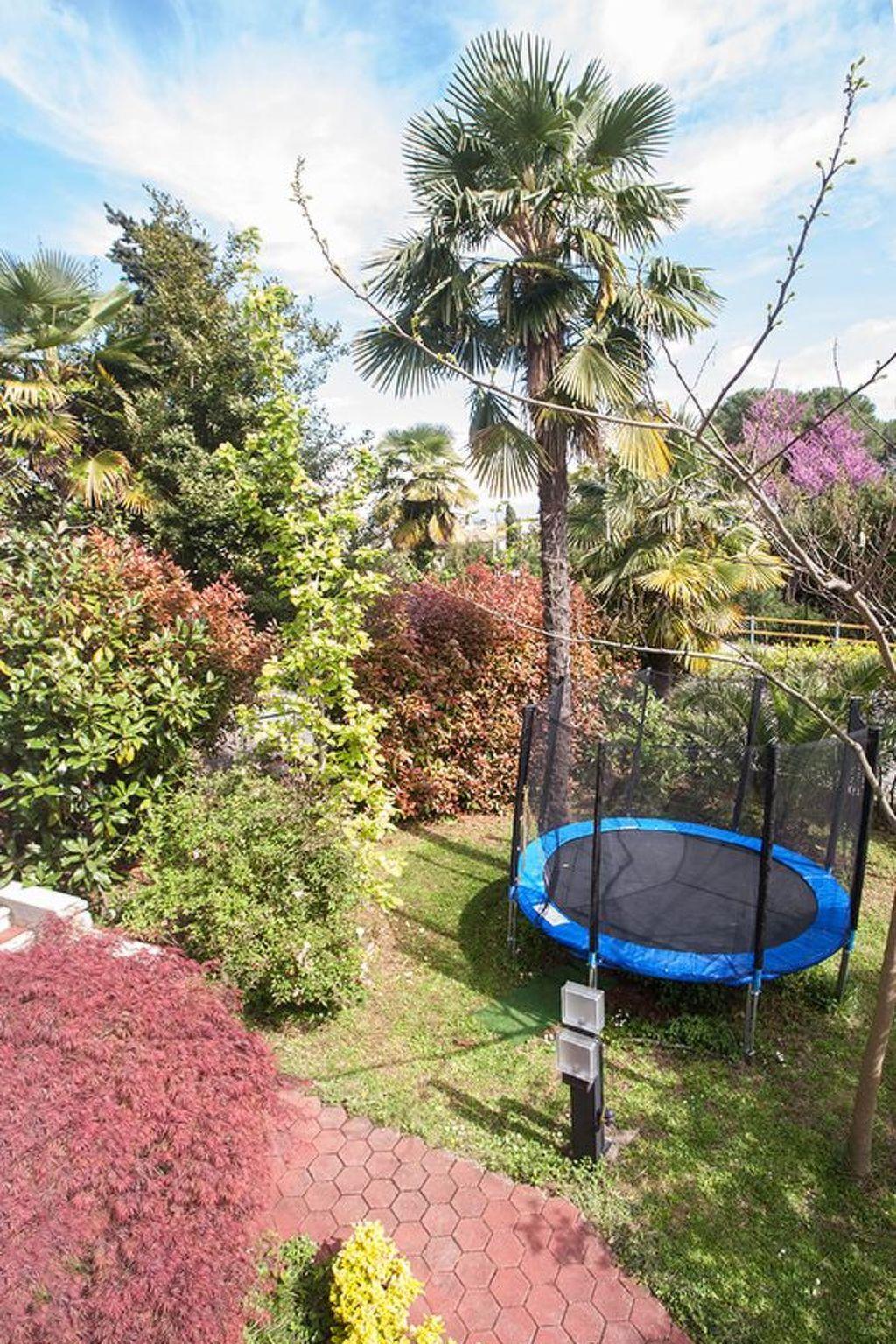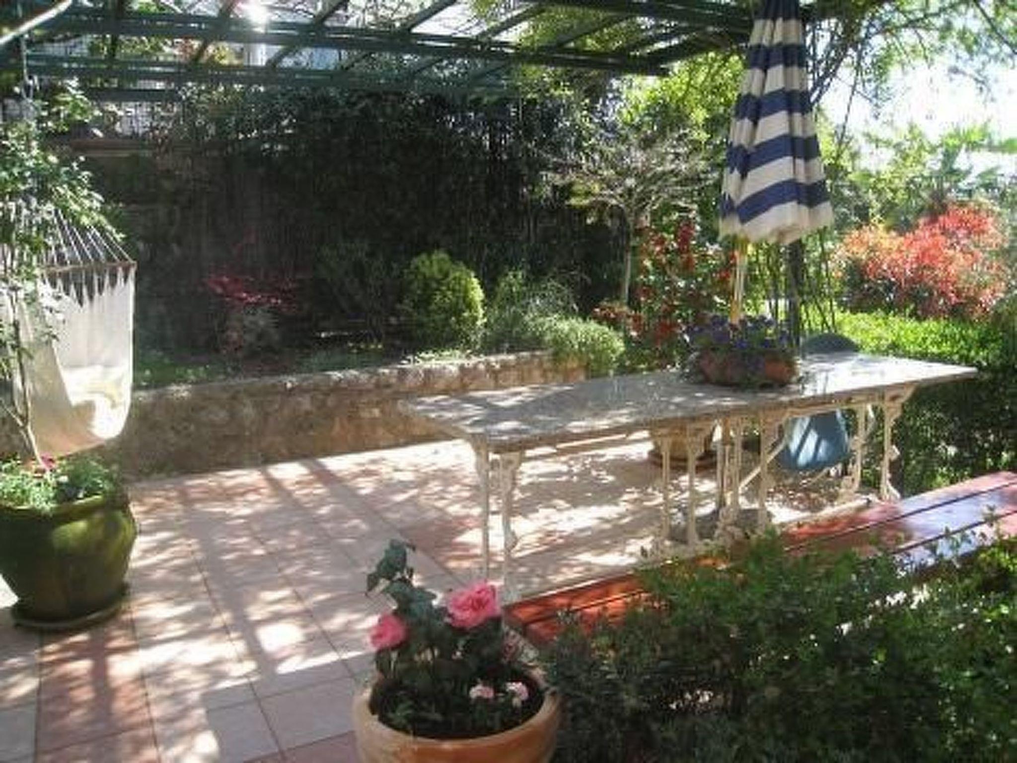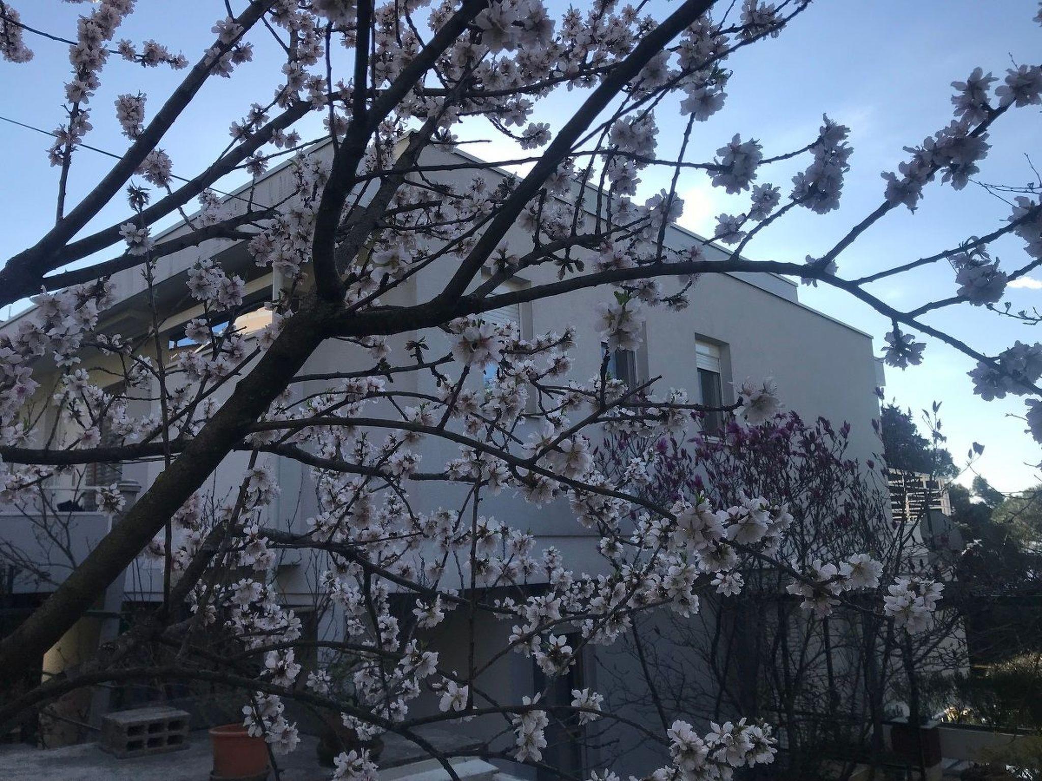 The living room opens onto the big balcony. There is also a lovely terrace with garden furniture and Mediterranean plants, with another garden terrace above it with a grill. The owners live on the second floor of the villa.