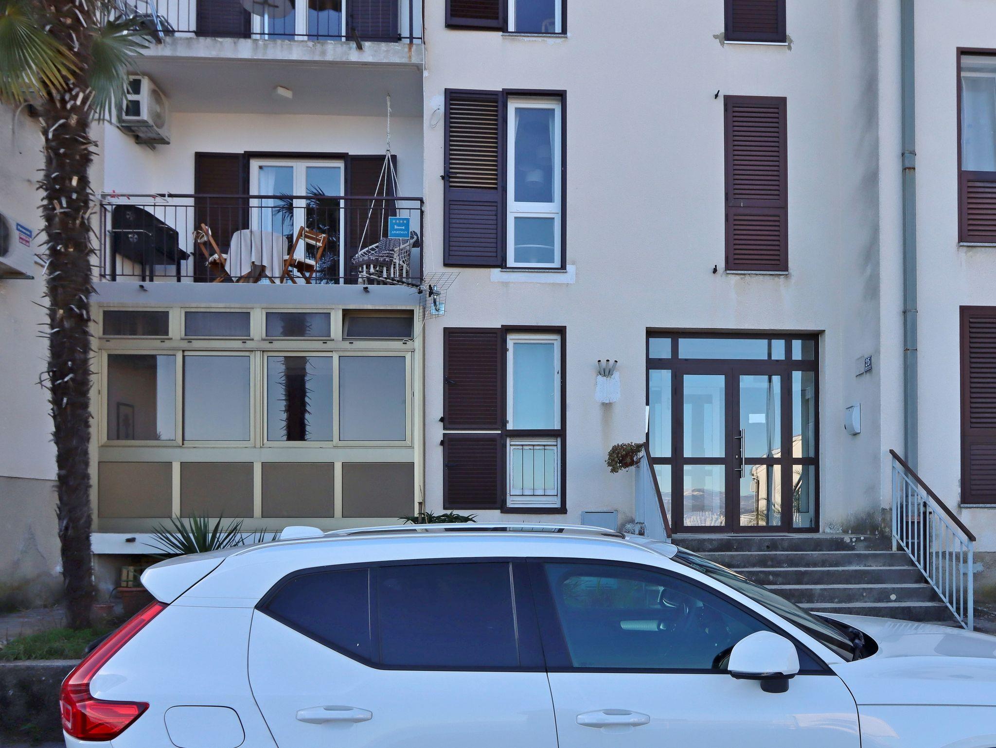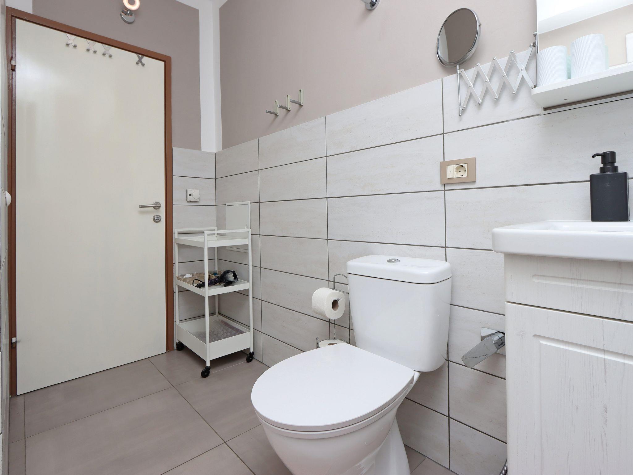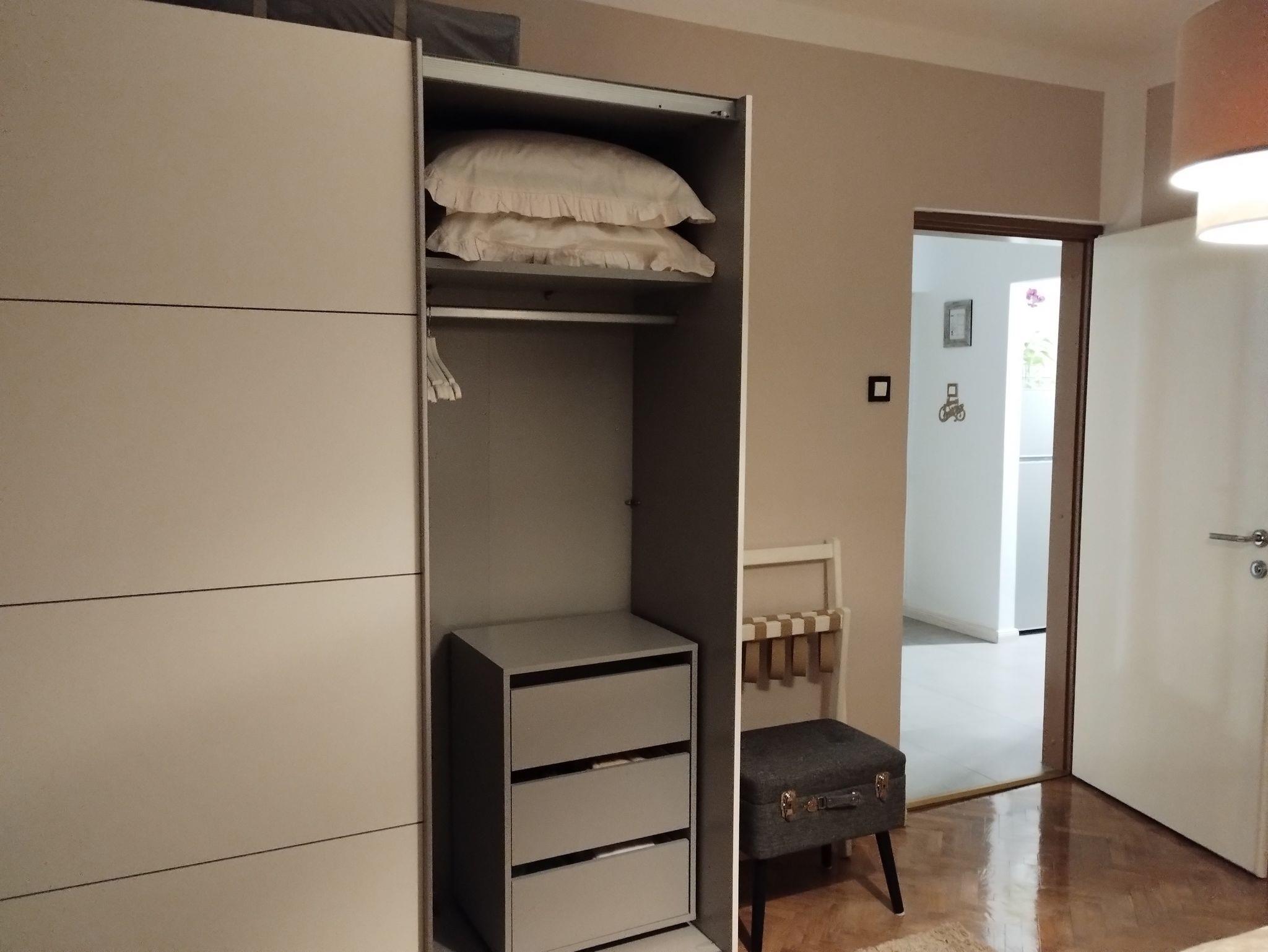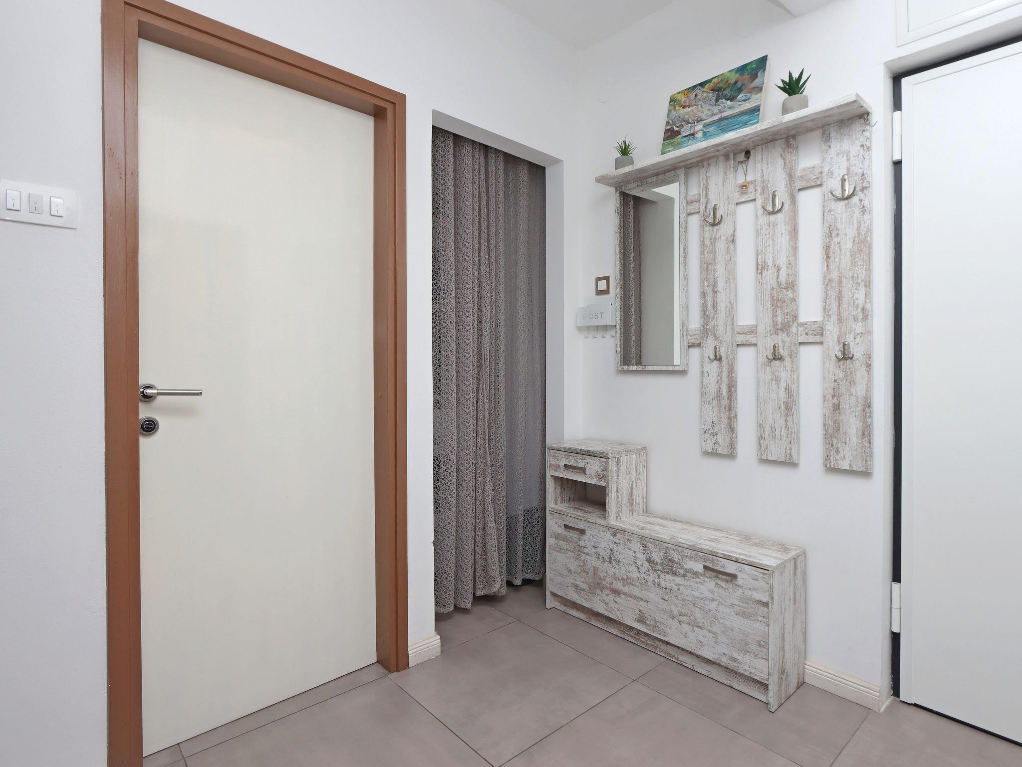 Ferienwohnung bietet Platz für 4 Gäste. Die Betten sind in Schlafzimmern, die es 1 gibt, und in Wohnzimmer, innerhalb einer Gesamtfläche von 49m2, angeordnet. Die Gäste haben einen eigenen Balkon zur Verfügung, auf der sie in warmen Sommernächten genießen können. Das Apartment bietet Meerblick. Es ist erlaubt, Speisen auf dem Gemeinschafts-Grill vorzubereiten. IM PREIS INBEGRIFFEN: Kurtaxe, Endreinigung, Klimatisierung, Internet, Kinderbett, Bügeleisen, Bügelbrett, Föhn, tragbarer Grill. VERBINDLICHE ZUSÄTZLICHE KOSTEN: Aufzahlung für Kurzaufenthalte (prozentualer Zuschlag pro Nächtigungsanzahl: 30% - 1, 20% - 2, 10% - 3). Die Verfügbarkeit zusätzlicher Dienstleistungen in Ihrem reservierten Termin und die Preise derselben (falls nicht aufgeführt) müssen im Voraus überprüft werden. Zusätzliche Dienstleistungen die in der Zahlungsaufforderung nicht aufgeführt sind werden direkt beim Vermieter bezahlt, angenommen der Gast nutzt auch diese. Ermäßigung auf den Grundpreis: Gratistag 28=25 (bei einem Aufenthalt von 28 oder mehr Tagen erhalten Sie 3 kostenlose Tage für den Aufenthalt bis 31.12.26).