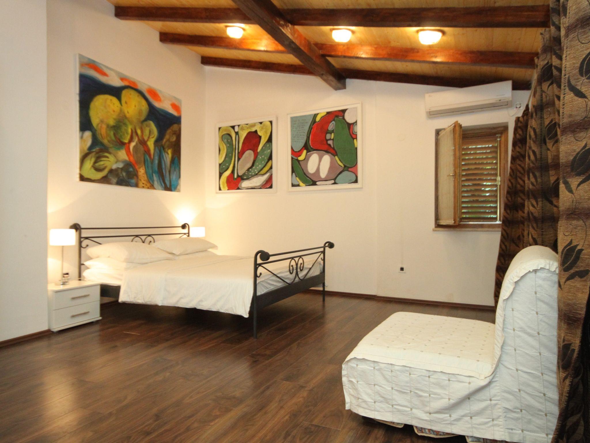 Haus bietet Platz für 4 Gäste. Die Betten sind in Schlafzimmern, die es 2 gibt, innerhalb einer Gesamtfläche von 75m2, angeordnet. Die Gäste haben eine eigene Terrasse zur Verfügung, auf der sie in warmen Sommernächten genießen können. Es ist erlaubt, Speisen auf dem Gemeinschafts-Grill vorzubereiten. In der Unterkunftseinheit besteht die Möglichkeit des Mitbringens von Haustieren gegen Aufpreis. IM PREIS INBEGRIFFEN: Kurtaxe, Endreinigung, Klimatisierung, Parkplatz, Internet, Föhn, tragbarer Grill, Sonnenschirm, Liegestühle. VERBINDLICHE ZUSÄTZLICHE KOSTEN: Aufzahlung für Kurzaufenthalte (prozentualer Zuschlag pro Nächtigungsanzahl: 30% - 1, 20% - 2, 10% - 3). UNVERBINDLICHE ZUSÄTZLICHE KOSTEN: Wäschewaschen (10,00 € Waschen), Haustiere (20,00 € pro Nacht). Die Verfügbarkeit zusätzlicher Dienstleistungen in Ihrem reservierten Termin und die Preise derselben (falls nicht aufgeführt) müssen im Voraus überprüft werden. Zusätzliche Dienstleistungen die in der Zahlungsaufforderung nicht aufgeführt sind werden direkt beim Vermieter bezahlt, angenommen der Gast nutzt auch diese.