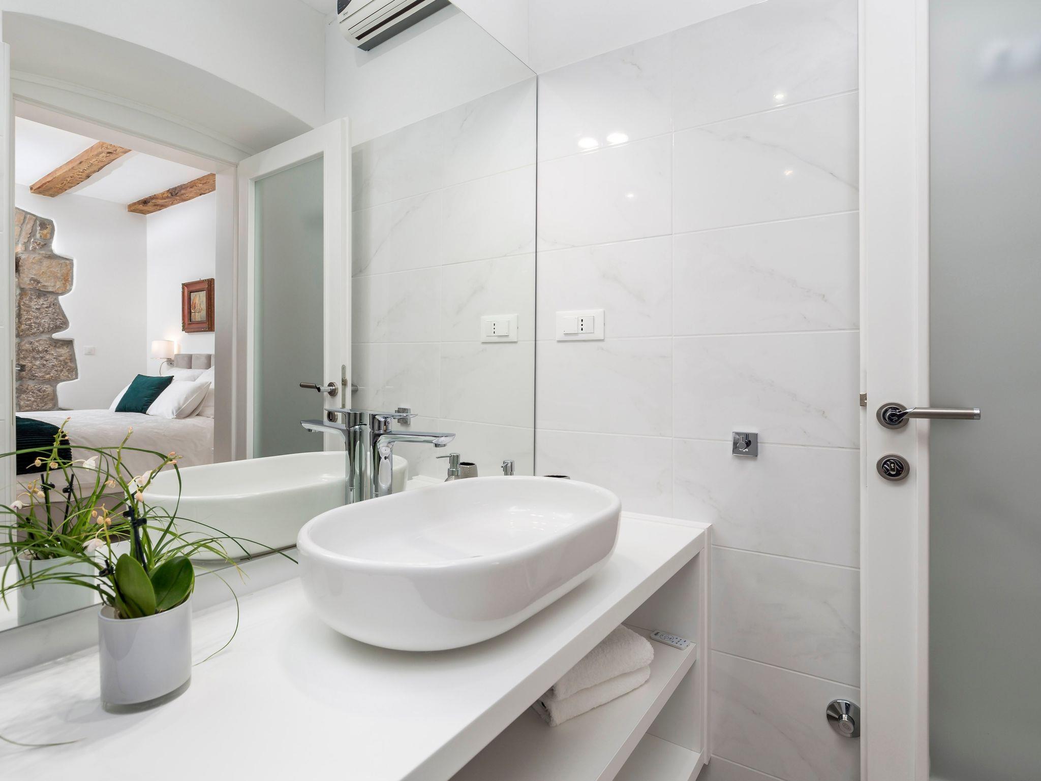 Ferienwohnung bietet Platz für 2 Gäste. Die Betten sind in Schlafzimmern, die es 1 gibt, innerhalb einer Gesamtfläche von 80m2, angeordnet. Die Gäste haben eine eigene Terrasse zur Verfügung, auf der sie in warmen Sommernächten genießen können. Das Apartment bietet Meerblick. Es ist erlaubt, Speisen auf dem Gemeinschafts-Grill vorzubereiten. IM PREIS INBEGRIFFEN: Kurtaxe, Endreinigung, Klimatisierung, Zentralheizung, Parkplatz, Internet, Kinderbett, Bügeleisen, Bügelbrett, Föhn, tragbarer Grill. Die Verfügbarkeit zusätzlicher Dienstleistungen in Ihrem reservierten Termin und die Preise derselben (falls nicht aufgeführt) müssen im Voraus überprüft werden. Zusätzliche Dienstleistungen die in der Zahlungsaufforderung nicht aufgeführt sind werden direkt beim Vermieter bezahlt, angenommen der Gast nutzt auch diese.