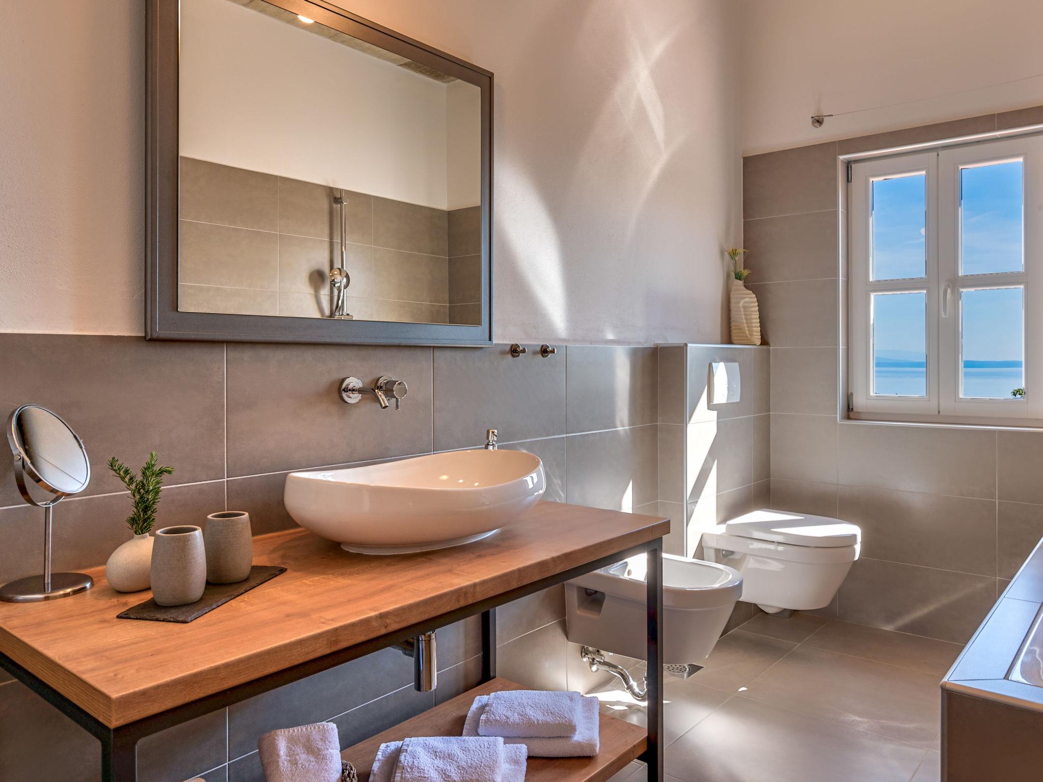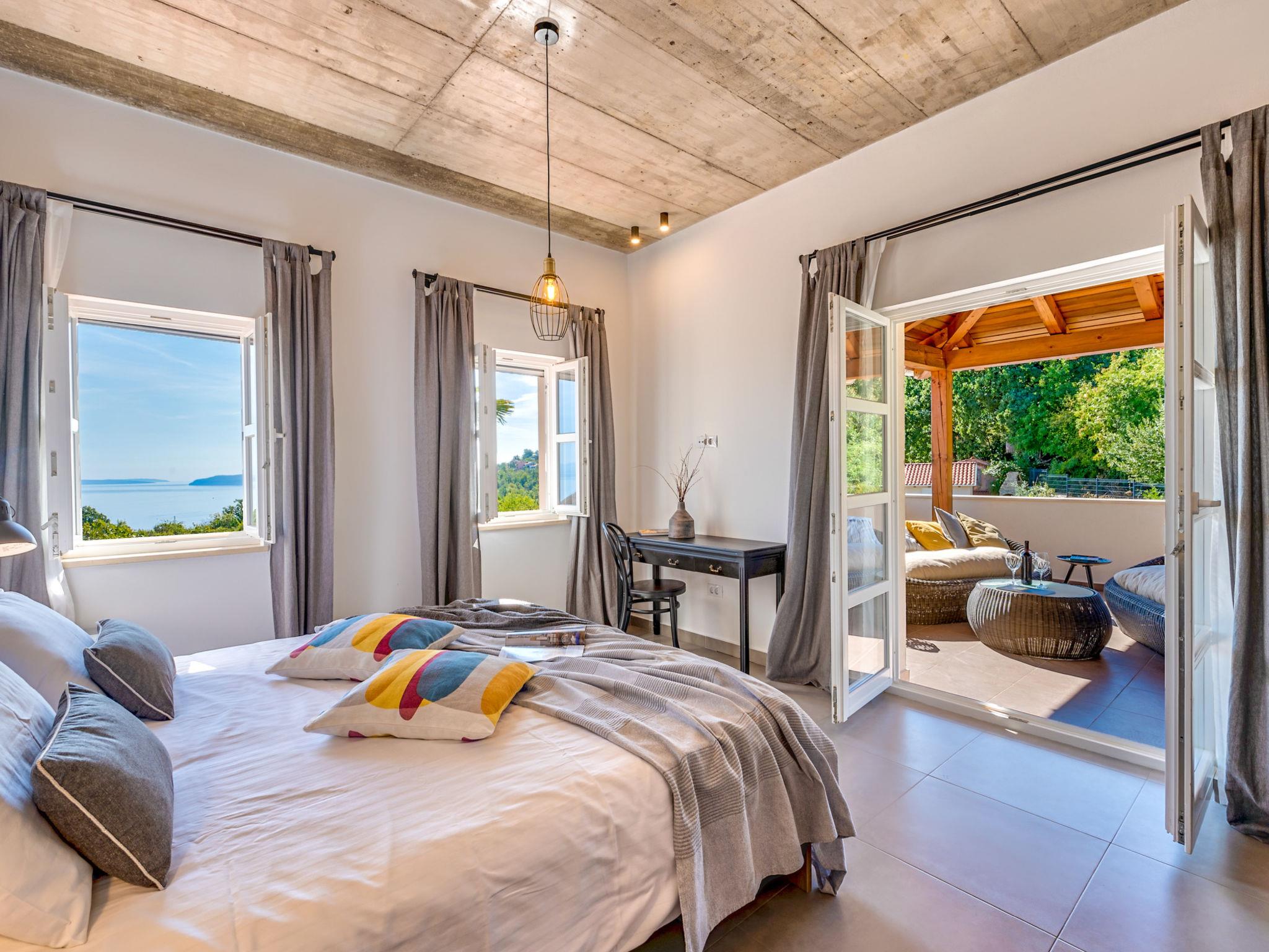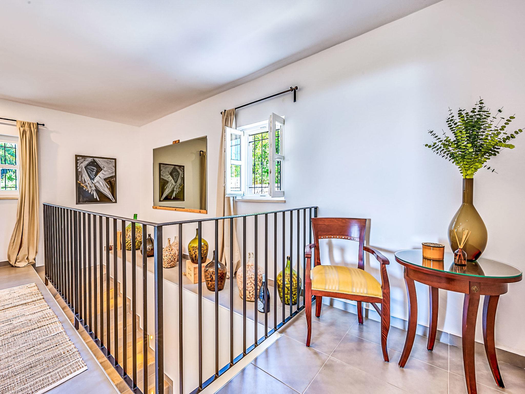 5-room villa 260 m2 on 2 levels. Living/dining room with open-hearth fireplace and cable TV (flat screen), air conditioning. Exit to the terrace, to the swimming pool. 1 room with 1 french bed (160 cm, length 200 cm), shower/WC. Exit to the terrace. Open kitchen (oven, dishwasher, 4 ceramic glass hob hotplates, toaster, kettle, freezer, electric coffee machine). Exit to the terrace. Upper floor: 2 rooms, each room with 1 french bed (160 cm, length 200 cm), shower/WC and air conditioning. 1 room with 1 french bed (180 cm, length 200 cm), bath/bidet/WC and air conditioning. Exit to the terrace. Floor heating, forced-air heating. Terrace 50 m2, roofed, 25 m2, roofed. Terrace furniture, balcony furniture, deck chairs (8). Beautiful view of the sea. Facilities: safe, iron, baby cot, hair dryer. Internet (WiFi, free). Parking (5 cars). Please note: non-smoking house. Maximum 1 small pet/ dog allowed.