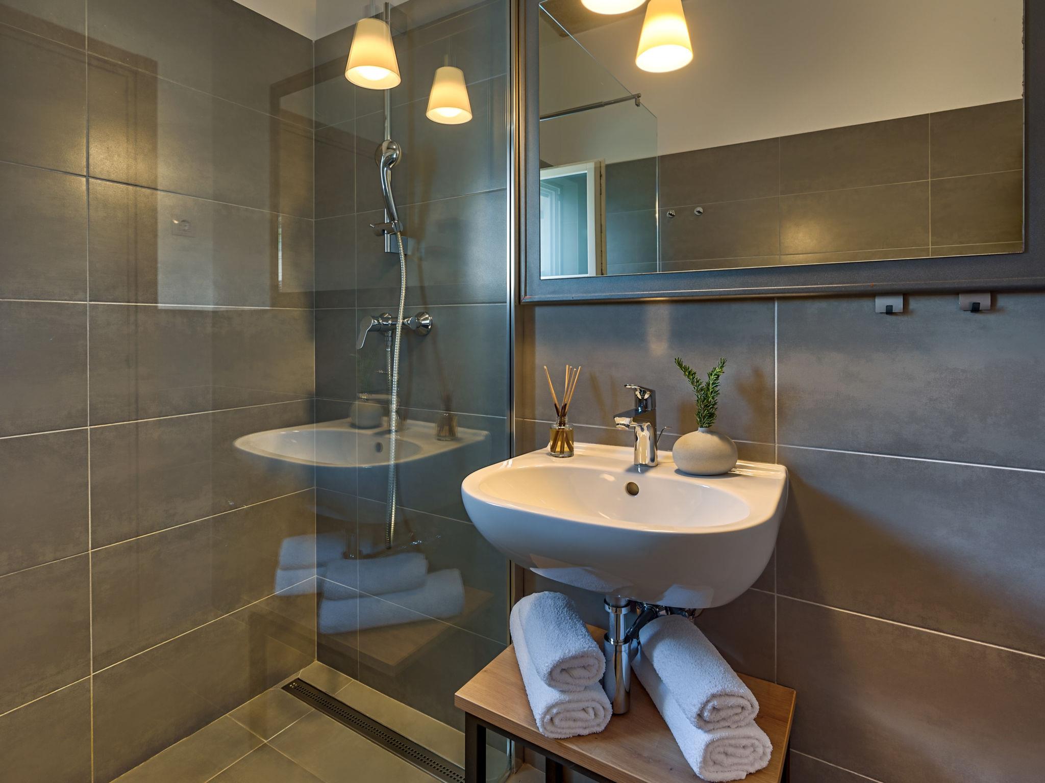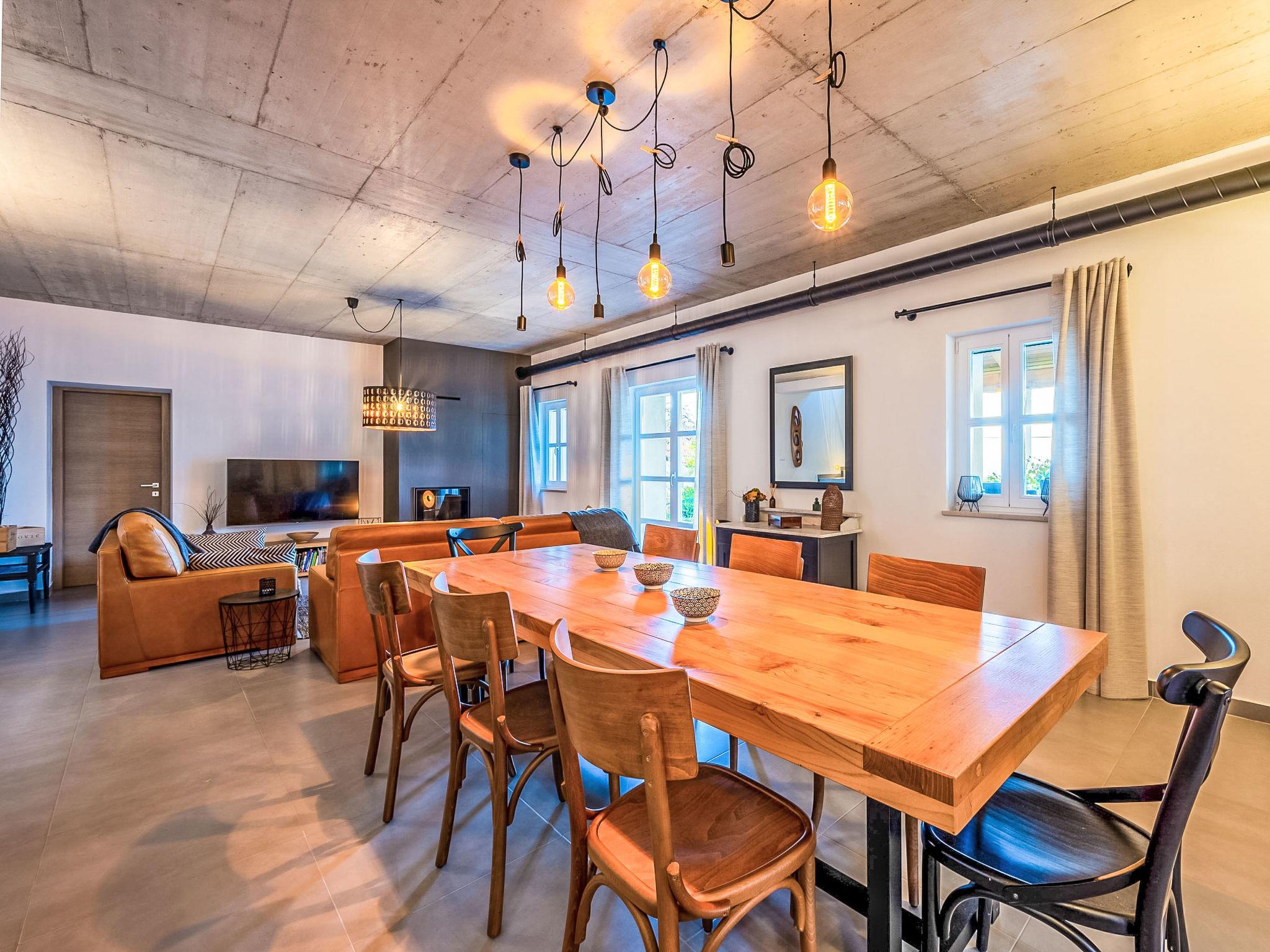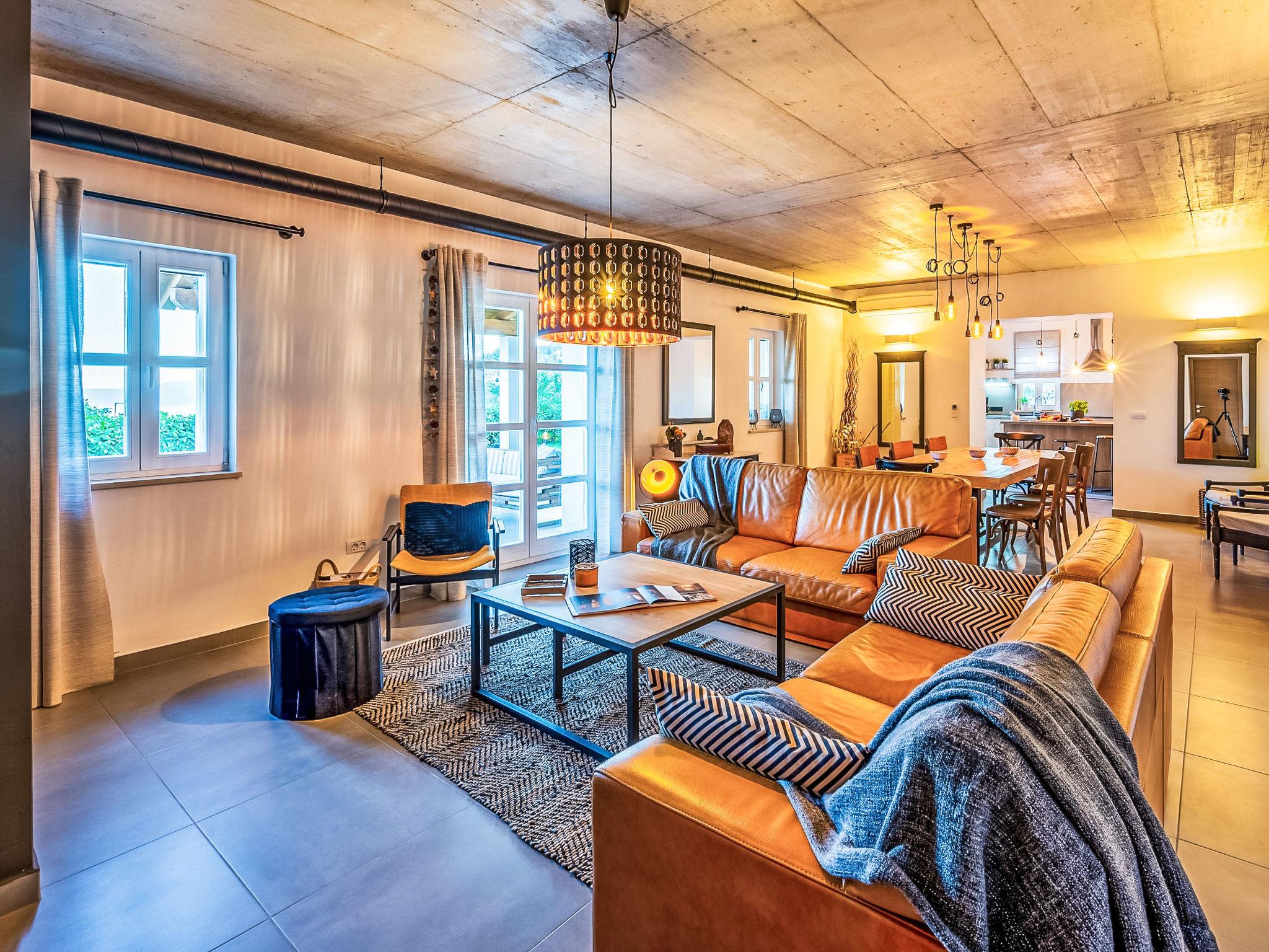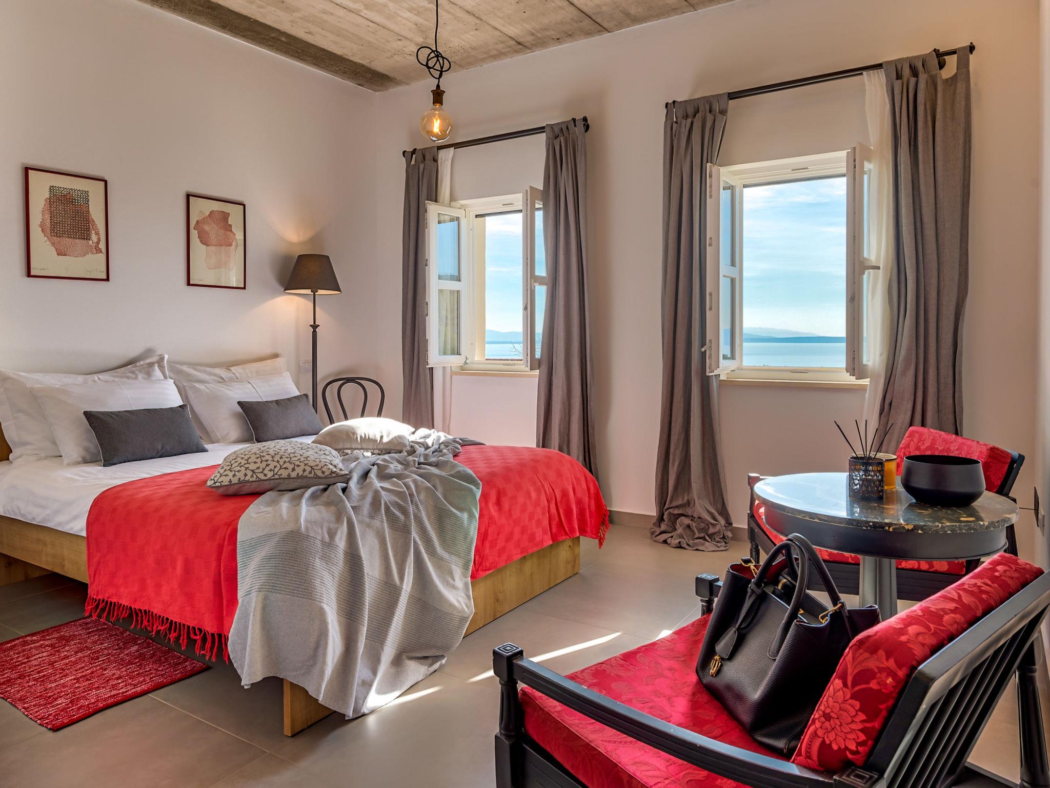 5-room villa 260 m2 on 2 levels. Living/dining room with open-hearth fireplace and cable TV (flat screen), air conditioning. Exit to the terrace, to the swimming pool. 1 room with 1 french bed (160 cm, length 200 cm), shower/WC. Exit to the terrace. Open kitchen (oven, dishwasher, 4 ceramic glass hob hotplates, toaster, kettle, freezer, electric coffee machine). Exit to the terrace. Upper floor: 2 rooms, each room with 1 french bed (160 cm, length 200 cm), shower/WC and air conditioning. 1 room with 1 french bed (180 cm, length 200 cm), bath/bidet/WC and air conditioning. Exit to the terrace. Floor heating, forced-air heating. Terrace 50 m2, roofed, 25 m2, roofed. Terrace furniture, balcony furniture, deck chairs (8). Beautiful view of the sea. Facilities: safe, iron, baby cot, hair dryer. Internet (WiFi, free). Parking (5 cars). Please note: non-smoking house. Maximum 1 small pet/ dog allowed.