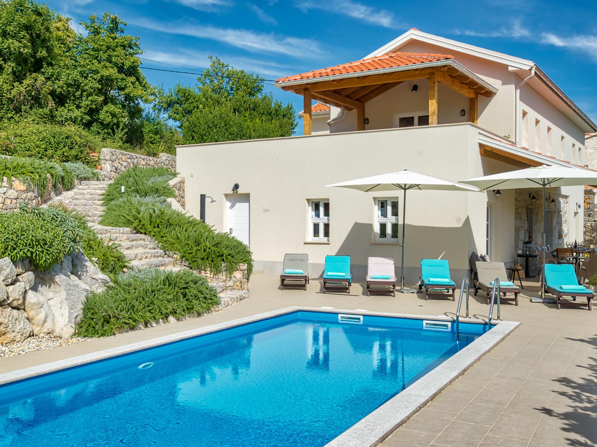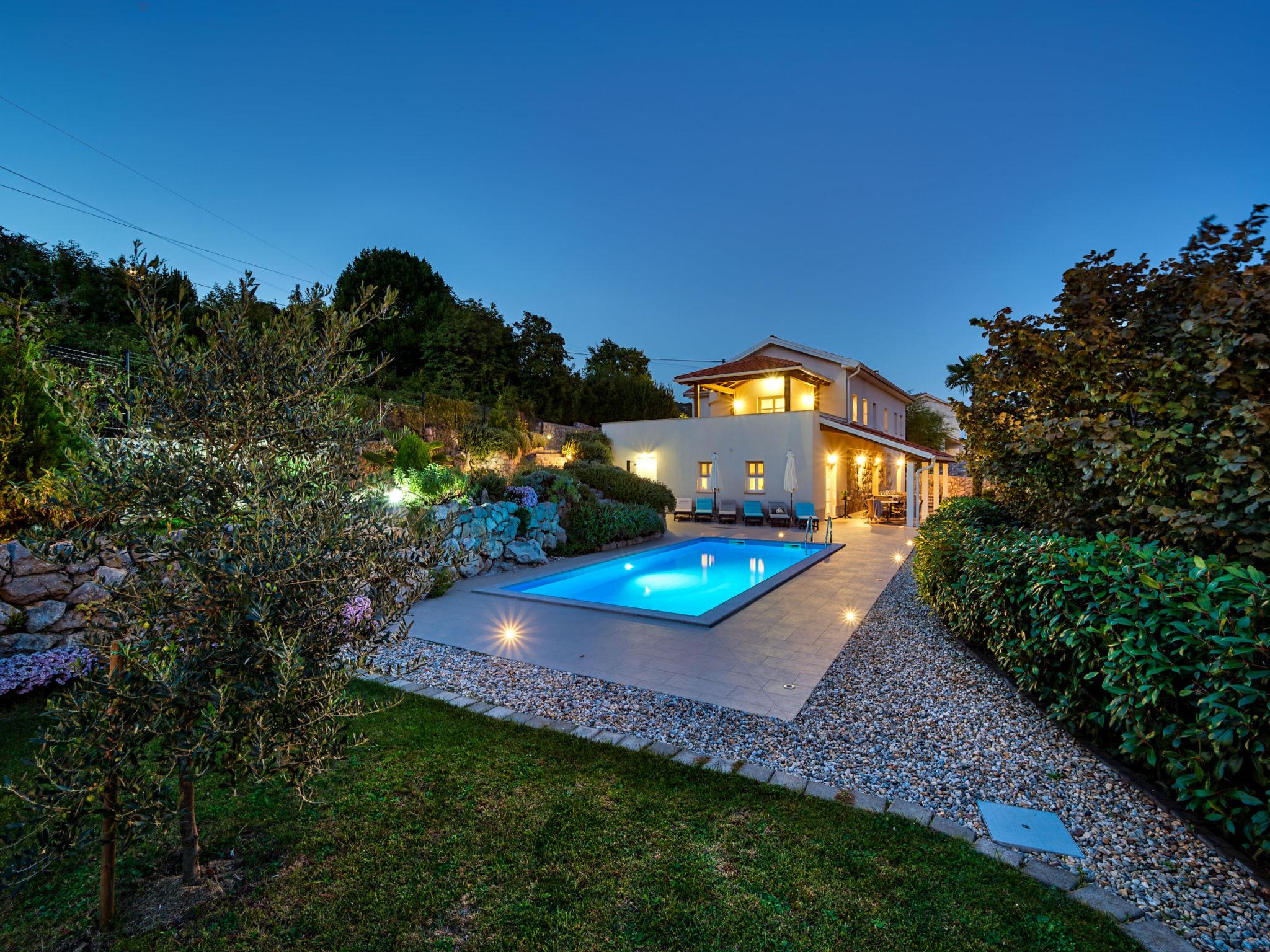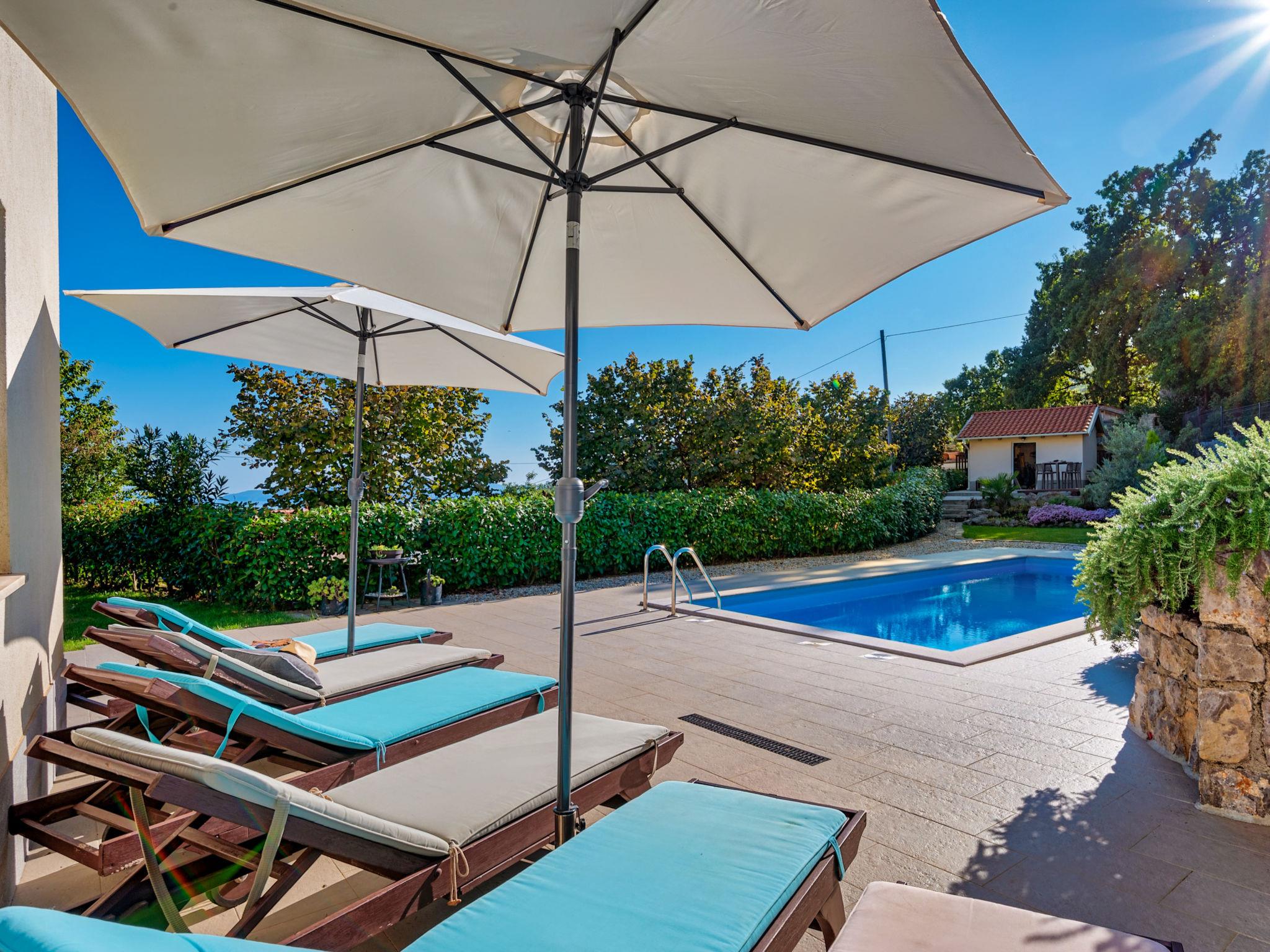 Poljane (Icici) 9 km from Opatija: Beautiful villa "Pia", 2 storeys. Above Icici, in the hamlet Jakusi 3.5 km from the centre of Icici, in a quiet, sunny, elevated position, 3.5 km from the sea, 3.5 km from the beach. Private: property 960 m2 (fenced) with lawn and wildlife garden, swimming pool angular (30 m2, depth 150 cm, seasonal availability: 01.May. - 15.Oct.) with internal staircase. Outdoor shower, terrace (50 m2), garden furniture, barbecue. In the house: internet access, table football, washing machine. Parking at the house on the premises. Shop 800 m, supermarket 5 km, restaurant 3 km, bus stop 300 m, shingle beach 3.5 km, public bathing area 3.5 km, concrete beach 3.5 km. The owner does not accept any youth groups. Organizing a party is not allowed.