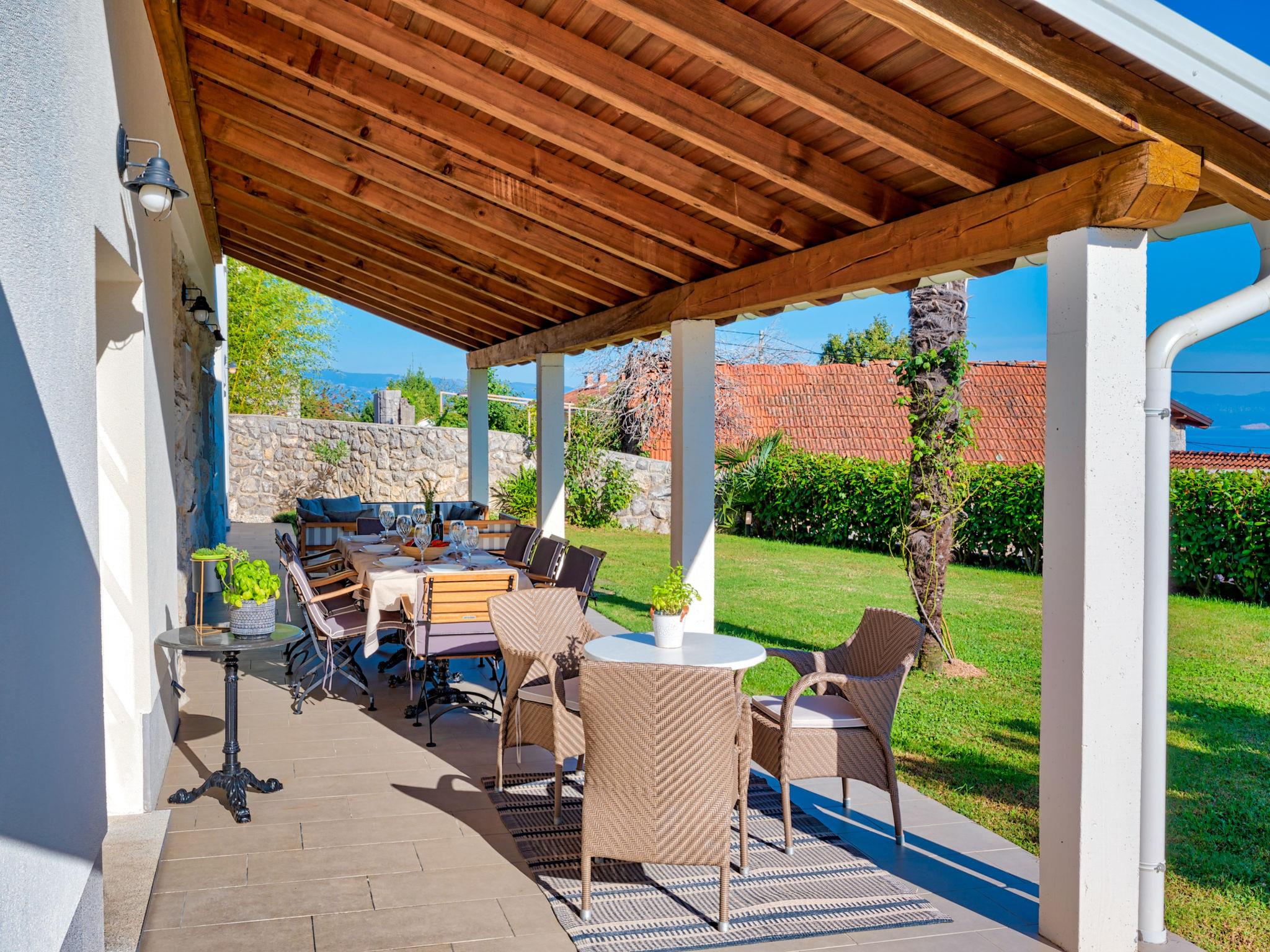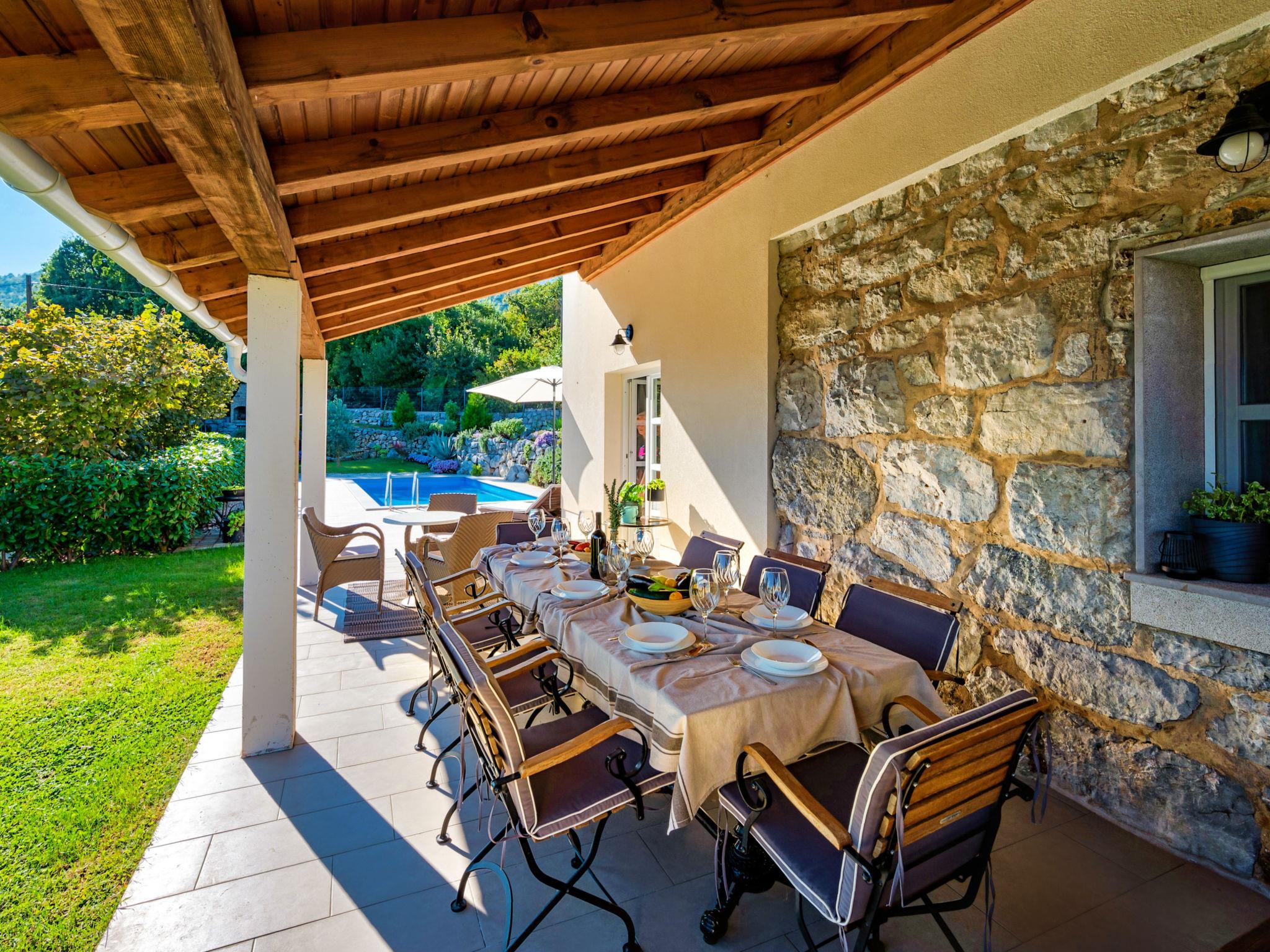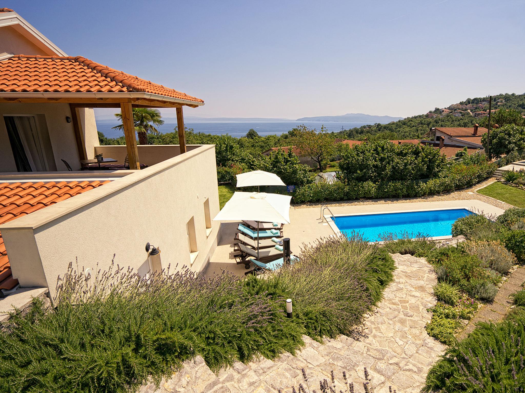 Poljane (Icici) 9 km from Opatija: Beautiful villa "Pia", 2 storeys. Above Icici, in the hamlet Jakusi 3.5 km from the centre of Icici, in a quiet, sunny, elevated position, 3.5 km from the sea, 3.5 km from the beach. Private: property 960 m2 (fenced) with lawn and wildlife garden, swimming pool angular (30 m2, depth 150 cm, seasonal availability: 01.May. - 15.Oct.) with internal staircase. Outdoor shower, terrace (50 m2), garden furniture, barbecue. In the house: internet access, table football, washing machine. Parking at the house on the premises. Shop 800 m, supermarket 5 km, restaurant 3 km, bus stop 300 m, shingle beach 3.5 km, public bathing area 3.5 km, concrete beach 3.5 km. The owner does not accept any youth groups. Organizing a party is not allowed.