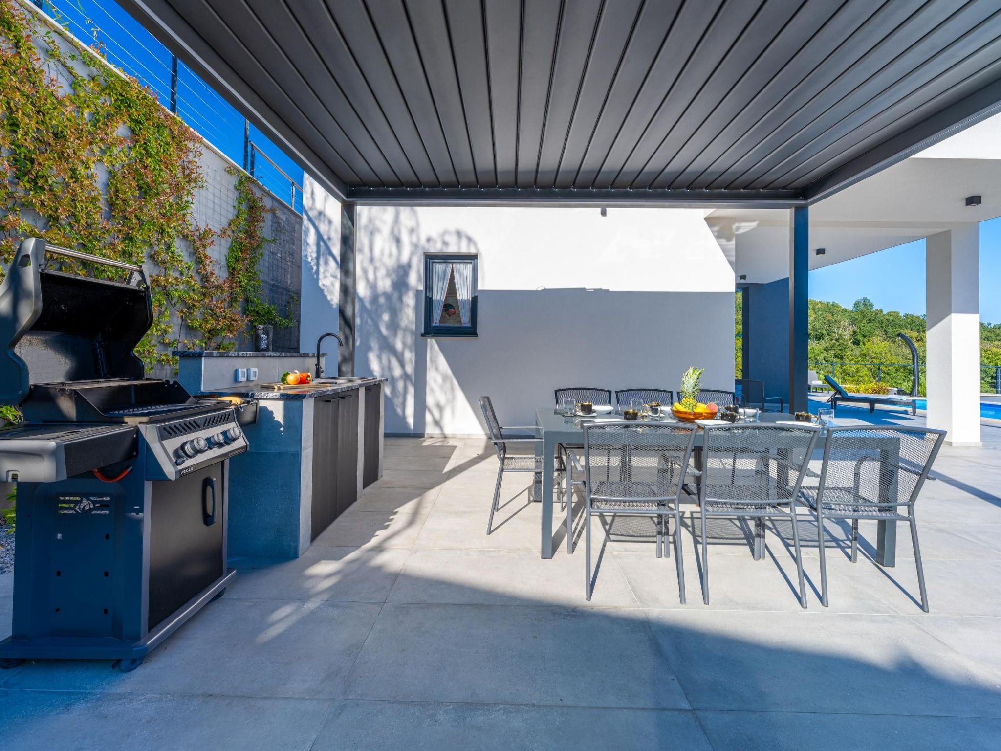 Villa Žiganto offers a range of exceptional facilities for a comfortable stay. The outdoor patio with a sink and gas grill allows for delightful al fresco dining. Inside, there's a fully equipped kitchen and a bright living room. The villa has four elegant bedrooms, each with an ensuite bathroom. An indoor jacuzzi adds to the indulgence.