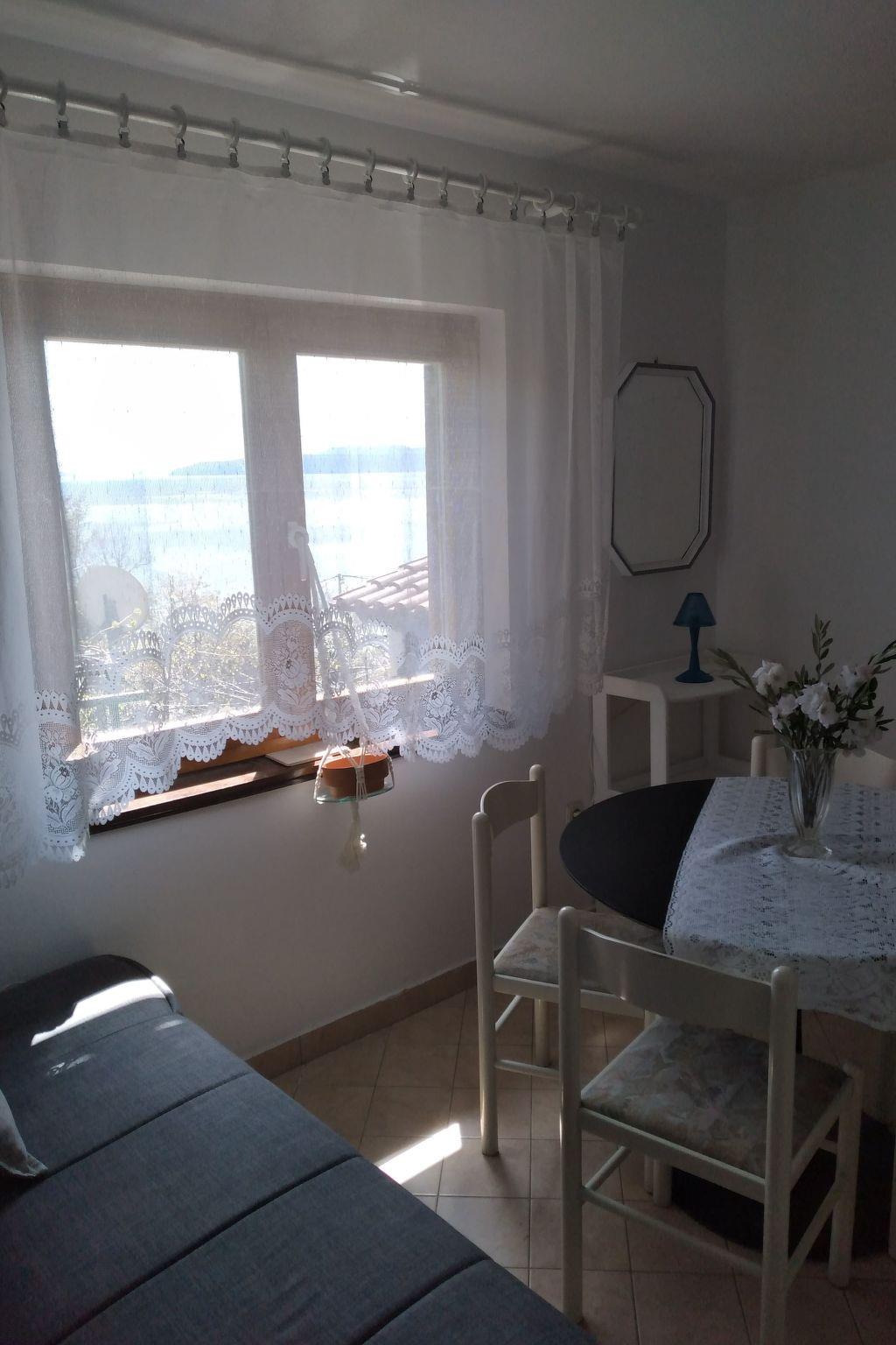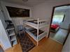 Maximum 1 pet/ dog allowed. This holiday apartment can accommodate up to five people and has two bedrooms with a double bed and a bunk bed. There is also a sofa bed for one person in the living room, along with satellite TV and a dining table with chairs. The open kitchen is well-equipped with a gas stove, fridge and washing machine. The bathroom provides a shower.