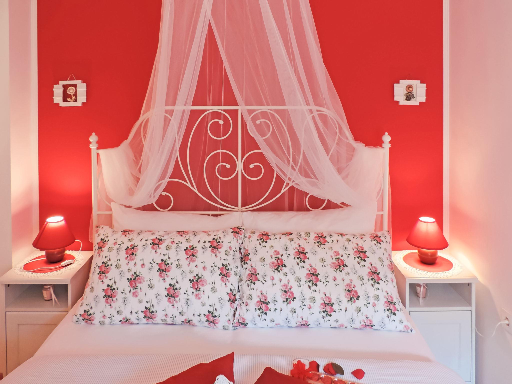 3-room house 65 m2 on 2 levels. Beautiful and tasteful furnishings: living/dining room 25 m2 with 1 double sofabed (185 cm, length 185 cm), open-hearth fireplace (only for decoration), satellite TV (flat screen), DVD and air conditioning. Exit to the terrace. Open kitchen (4 hot plates, oven, dishwasher, microwave, freezer, electric coffee machine). Bath/WC, sep. WC. Upper floor: 1 room with 1 double bed (2 x 80 cm, length 200 cm). 1 room with 2 beds (90 cm, length 200 cm). Electric heating. Terrace 20 m2. Terrace furniture, deck chairs. View of the swimming pool. Facilities: baby cot, hair dryer. Internet (WiFi, free). Maximum 1 pet/ dog allowed. Low height of the entrance door into the house 182 cm. Ceiling height above interior staircase 175 cm - 220 cm.