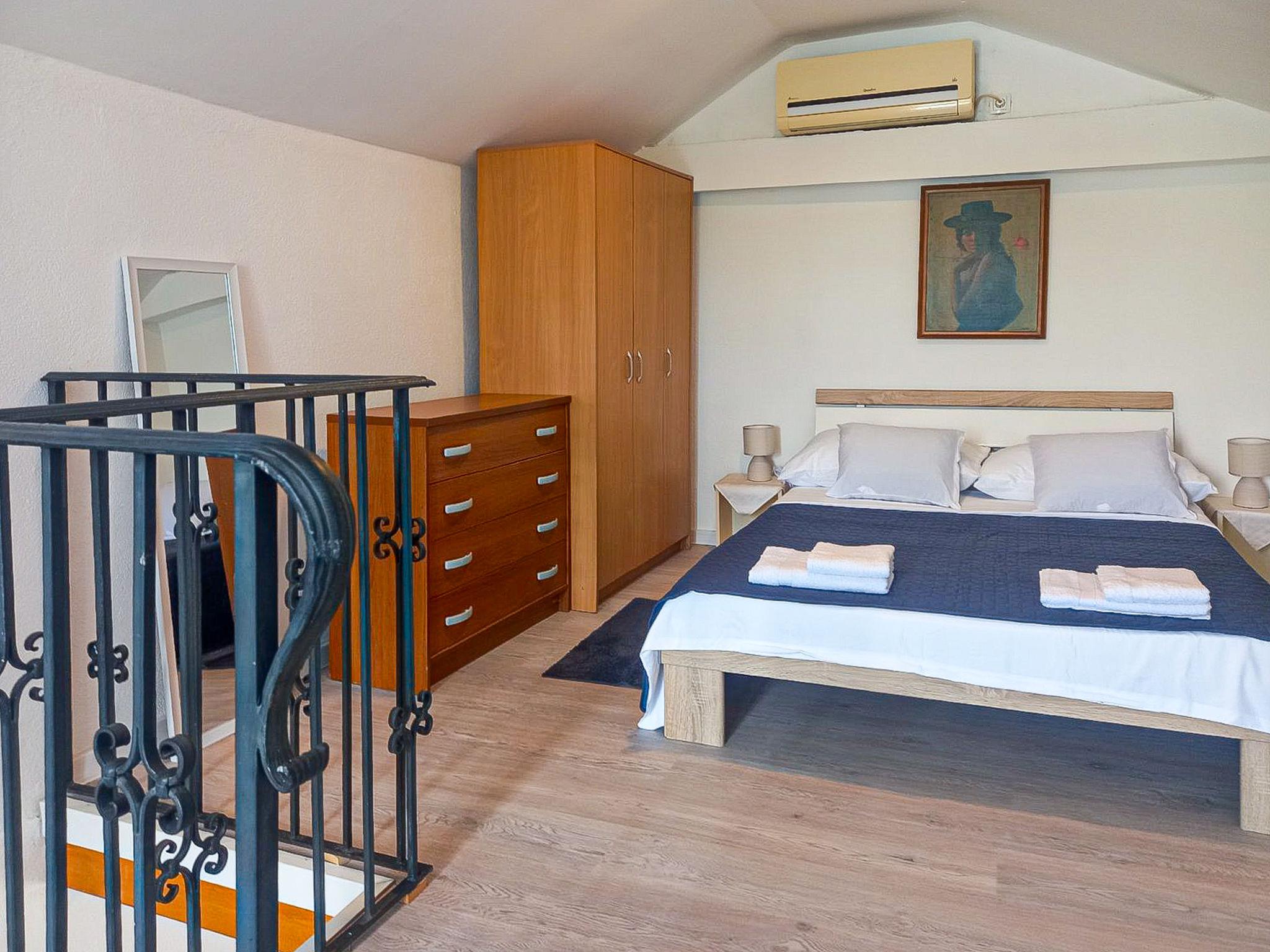 2-room house 60 m2 on 2 levels. Living room with 1 sofabed (100 cm, length 200 cm), cable TV. Exit to the balcony. 1 room with sliding door with 1 french bed (140 cm, length 200 cm), air conditioning. On the lower ground floor: open kitchen (4 hot plates, oven, dishwasher, freezer, electric coffee machine). Shower/WC. No heating option. Balcony furniture. View of the countryside. Facilities: washing machine. Internet (WiFi, free). Parking (1 car). Please note: non-smoking house. 1 small pet/ dog allowed.