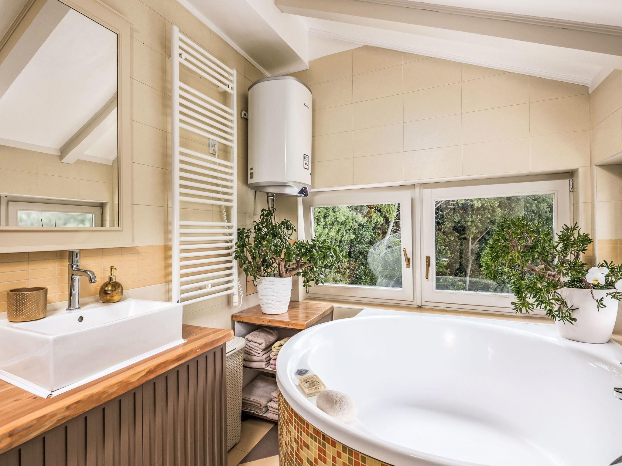 Semi-detached house "Nika", 2 storeys. 5 km from the centre of Opatija, 2 km from the centre of Kastav, 1 km from the centre of Matulji, in a quiet, sunny position, 4 km from the sea, 4 km from the beach, in the countryside. Private: property 950 m2 (fenced) with beautiful garden to relax, swimming pool (7 x 4 m, depth 150 cm, seasonal availability: 01.May. - 01.Oct.) with internal staircase and salt-electrolysis pool-cleaning system. Unconventional pool shape. Outdoor shower, terrace (50 m2), garden furniture, barbecue. In the house: internet access, washing machine, tumble dryer. Parking (for 2 cars) at the house on the premises. Supermarket 600 m, restaurant 500 m, bus stop 650 m, pebble beach 4 km, public bathing area 4 km, concrete beach 4 km. Part of the house is closed and unoccupied.