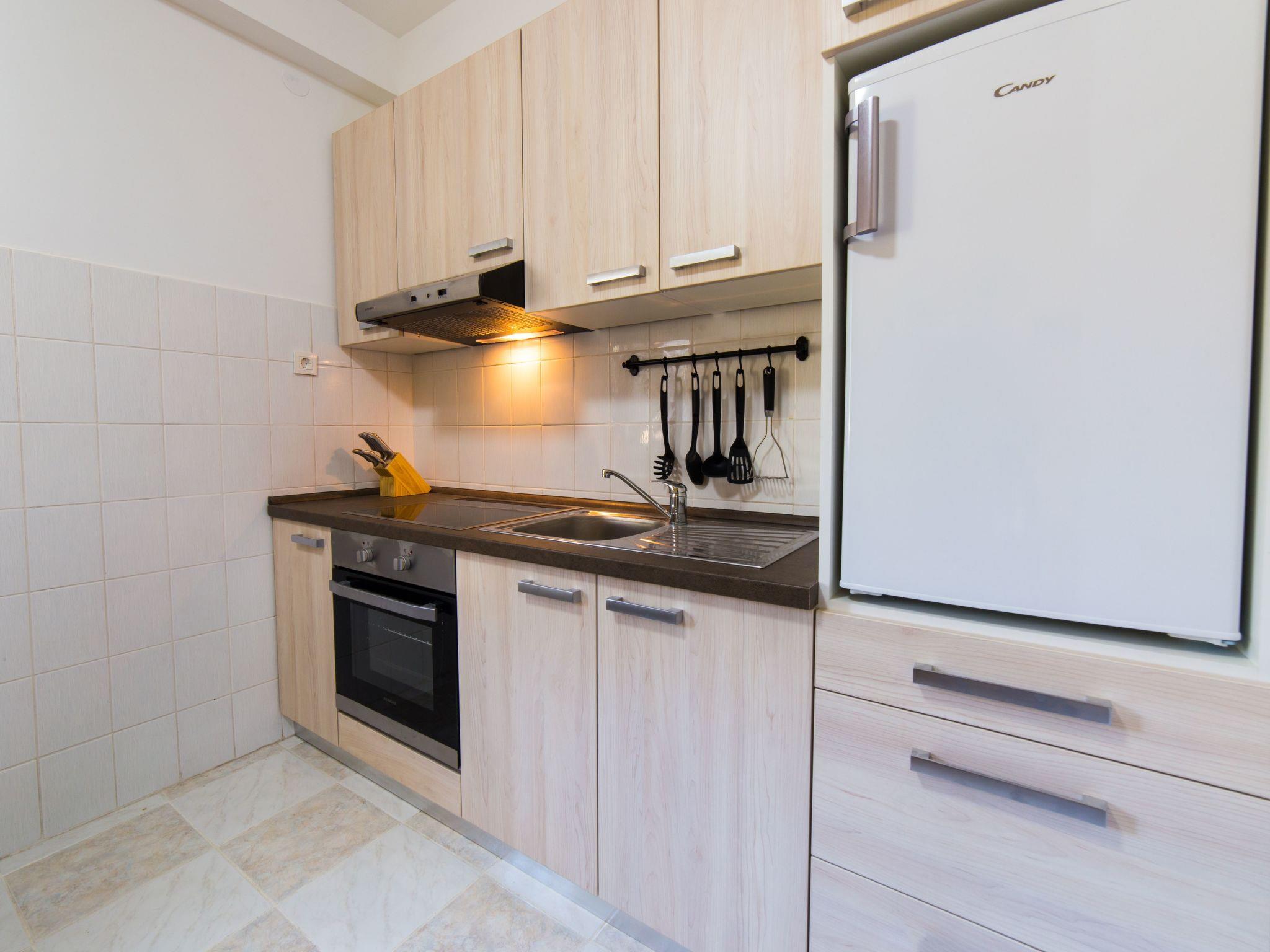 There are a total of seven holiday apartments in the three-storey building. This stuio apartment is on the ground floor. It consists of a living area with two extending armchairs, a fully equipped kitchen, satellite TV, free WiFi, a bathroom with shower and air conditioning.