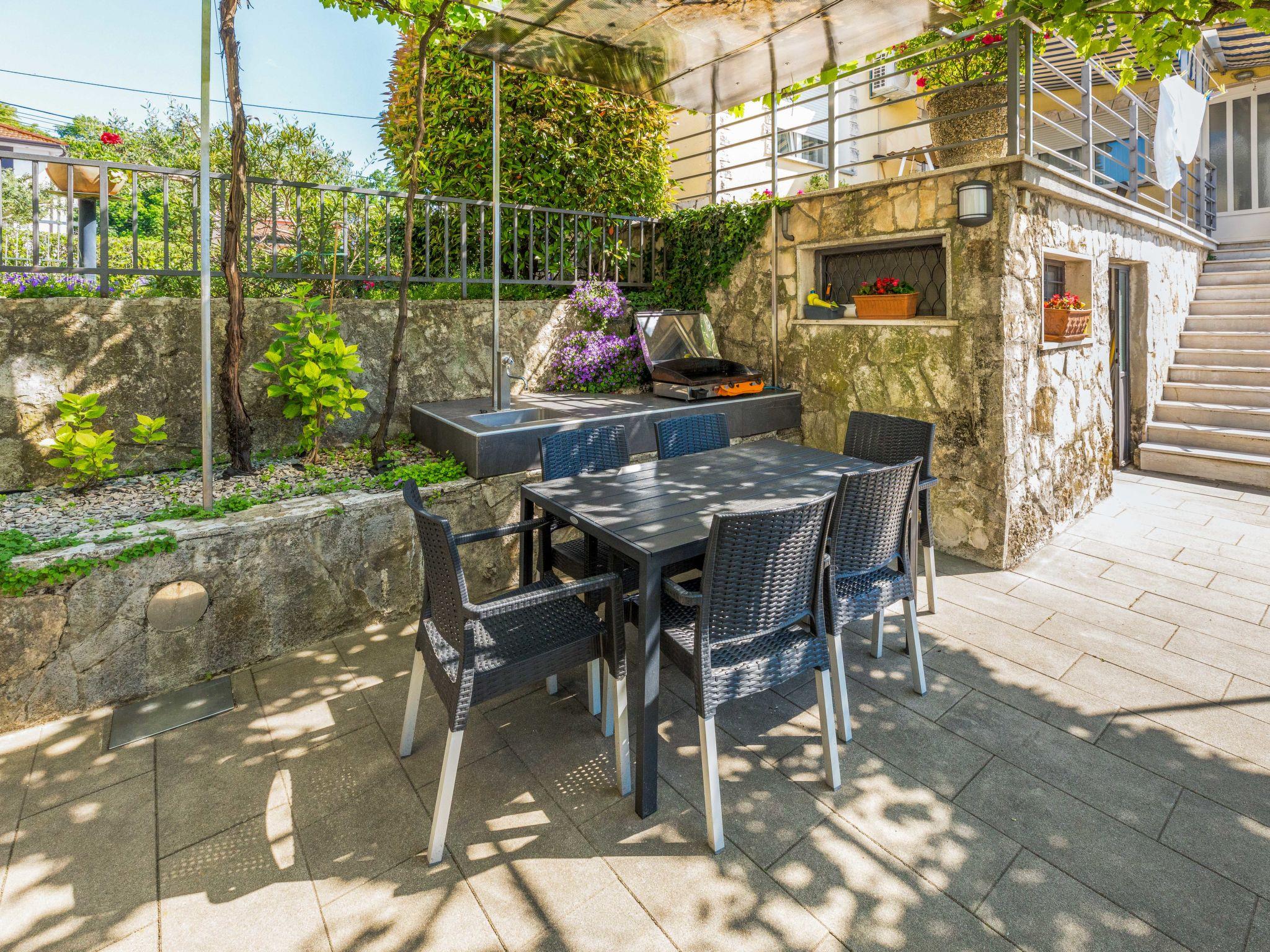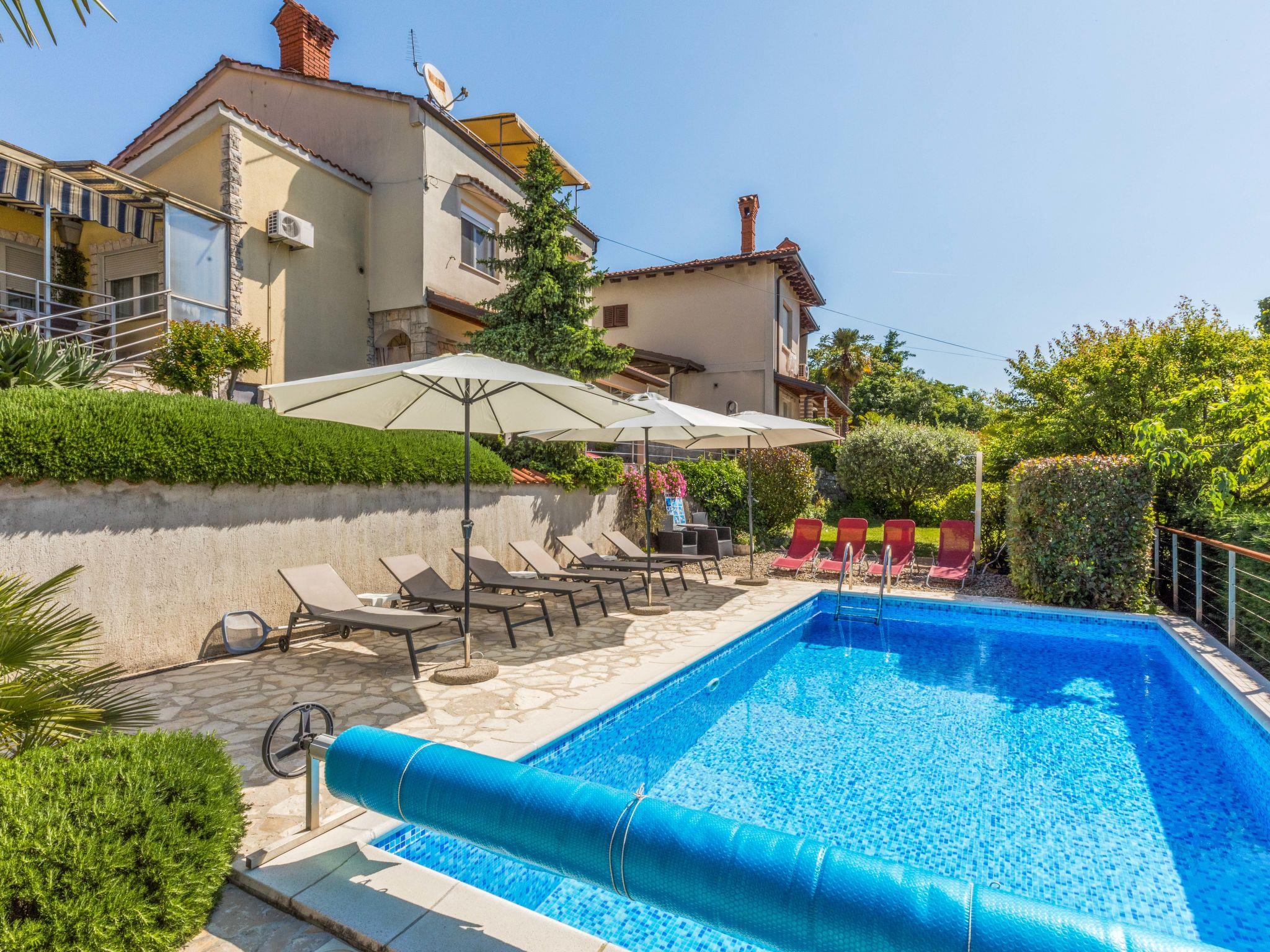 Matulji 5 km from Opatija: 3-family house "Lucija". 300 m from the centre of Matulji, 3 km from the sea. For shared use: property 2'000 m2 (fenced), swimming pool angular (7 x 3 m, 24 m2, depth 140 cm, seasonal availability: 07.May. - 01.Oct.). Outdoor shower, table tennis, barbecue. In the house: internet access. Parking at the house on the premises. Shop 270 m, supermarket, restaurant 300 m, bus stop 270 m, pebble beach 3 km, concrete beach 3 km. Please note: Property ref. HR3110.101.1 is situated on the same property.