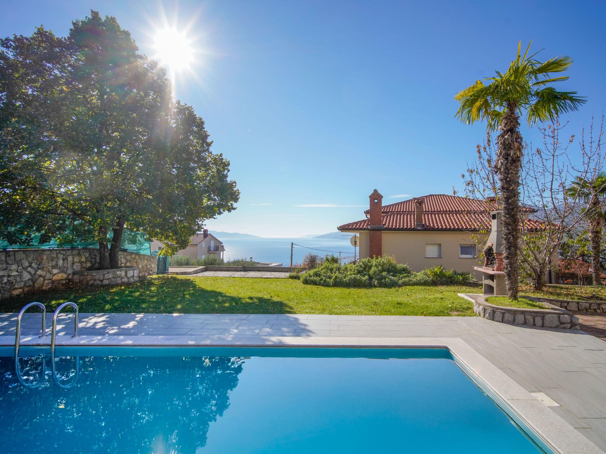 Apartment house "Sea View", 3 storeys, detached. 1.7 km from the centre of Matulji, 3.5 km from the centre of Opatija, in a sunny position, 1.5 km from the sea, 2.5 km from the beach. For shared use: property 1'000 m2 (fenced), natural garden, swimming pool angular (36 m2, depth 150 cm, seasonal availability: 01.May. - 01.Oct.) with internal staircase. Outdoor shower, garden furniture, barbecue. In the house: WiFi. Parking at the house on the premises. Shop 400 m, supermarket 700 m, shopping centre 2 km, bus stop 400 m, pebble beach "Preluk" 2.5 km. The owner does not accept any youth groups.