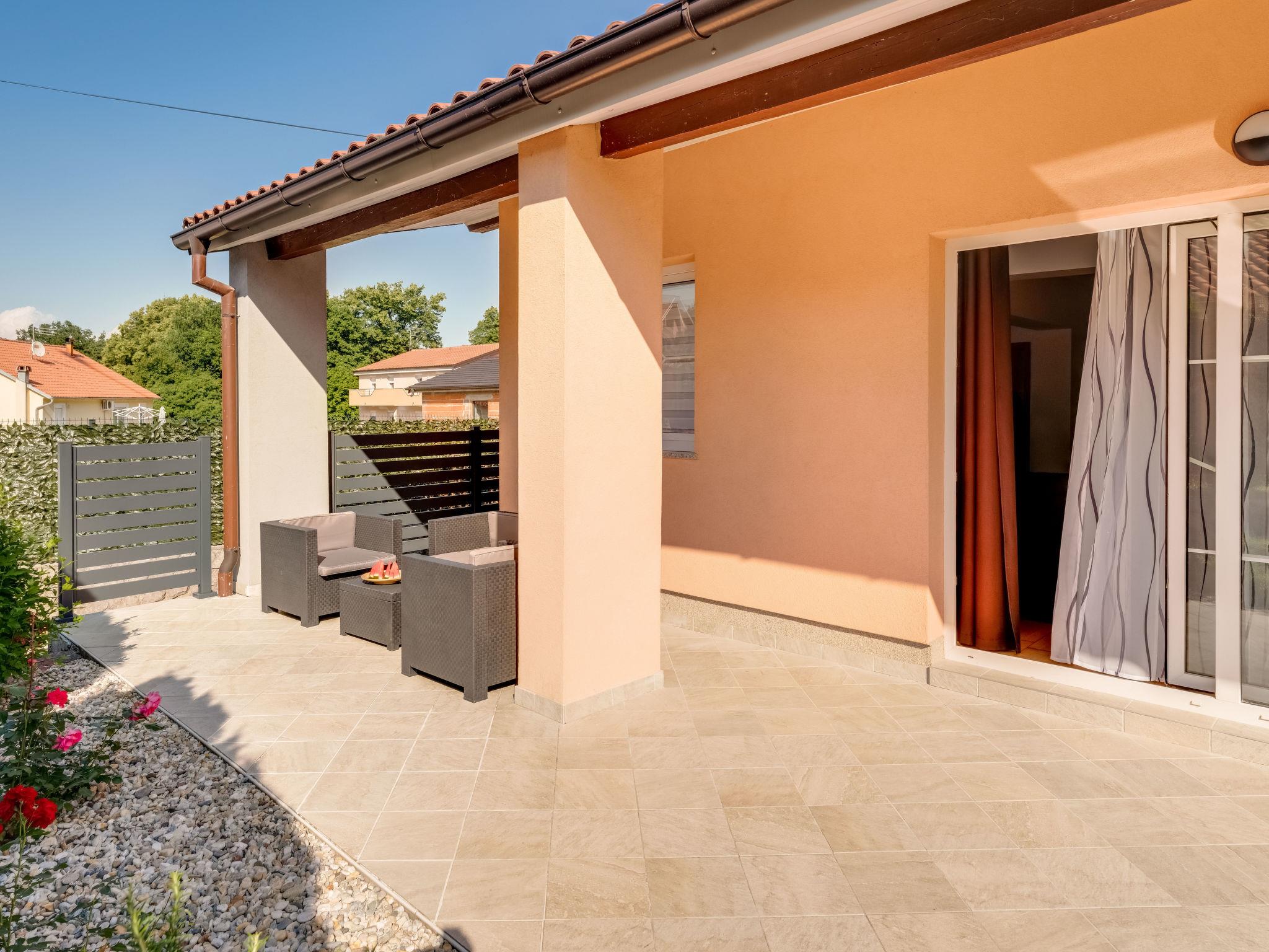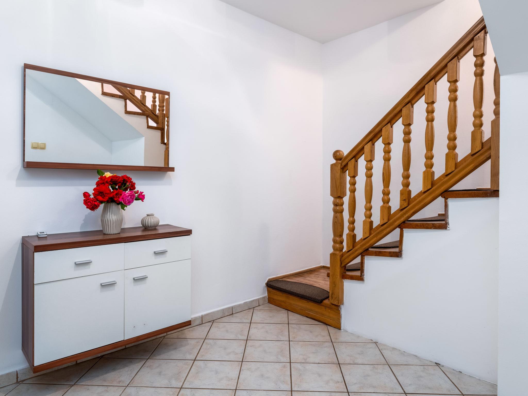 Mihelici 6 km from Opatija: 2-family house "Matej", 2 storeys. In the hamlet Mihelici 3.5 km from the centre of Matulji, 5.5 km from the centre of Opatija, in a quiet, sunny, elevated position residential area (villas), 5.5 km from the sea. Private: property 700 m2 (fenced) with lawn and flowers, swimming pool angular, heated (7 x 4 m, depth 150 cm, seasonal availability: 15.May. - 15.Oct.) with internal staircase. Outdoor shower, pool house, terrace, garden furniture, barbecue, fireplace. In the house: internet access, hot tub (all included), table football, central heating system, air conditioning. Parking (for 3 cars) at the house on the premises. Shop 800 m, supermarket 3 km, restaurant 800 m, bar 750 m, bus stop 700 m, pebble beach 5.5 km, concrete beach 5.5 km. Groups of teenagers on request only.