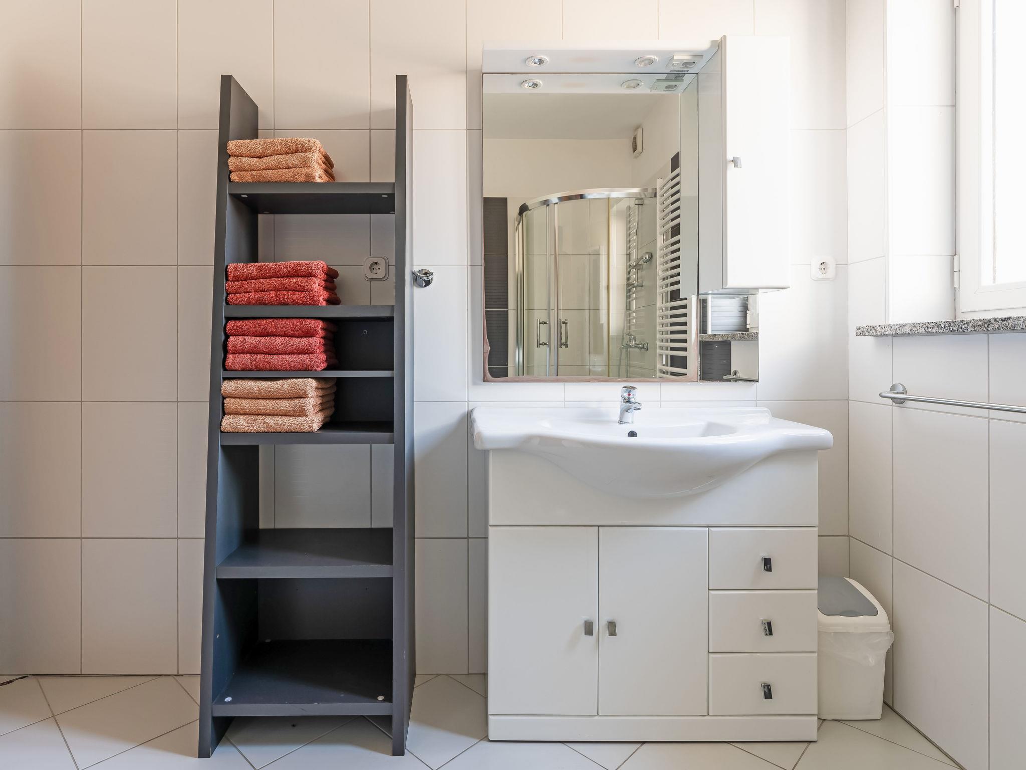 4-room apartment 122 m2 on 1st floor, south facing position. Comfortable and cosy furnishings: living/dining room 45 m2 with satellite TV, DVD and air conditioning. Exit to the terrace. 1 room with 1 bed (90 cm, length 200 cm), 1 french bed (160 cm, length 200 cm). Exit to the terrace. 1 room with 1 french bed (160 cm, length 200 cm). Exit to the terrace. 1 room with 2 beds (90 cm, length 200 cm). Exit to the terrace. Open kitchen (4 hot plates, oven, dishwasher, freezer). Shower/WC, shower/bidet/WC. Heating (extra). Terrace 20 m2, roofed, south facing position, 2 terraces 5 m2, roofed. Terrace furniture, box-room. View of the swimming pool and the countryside. Facilities: washing machine. Internet (WiFi, free). Parking (fenced 3 cars). The apartment has an independent entrance direct from the parking place. Partial distant view of the sea. 2170-12-02/3-13-3