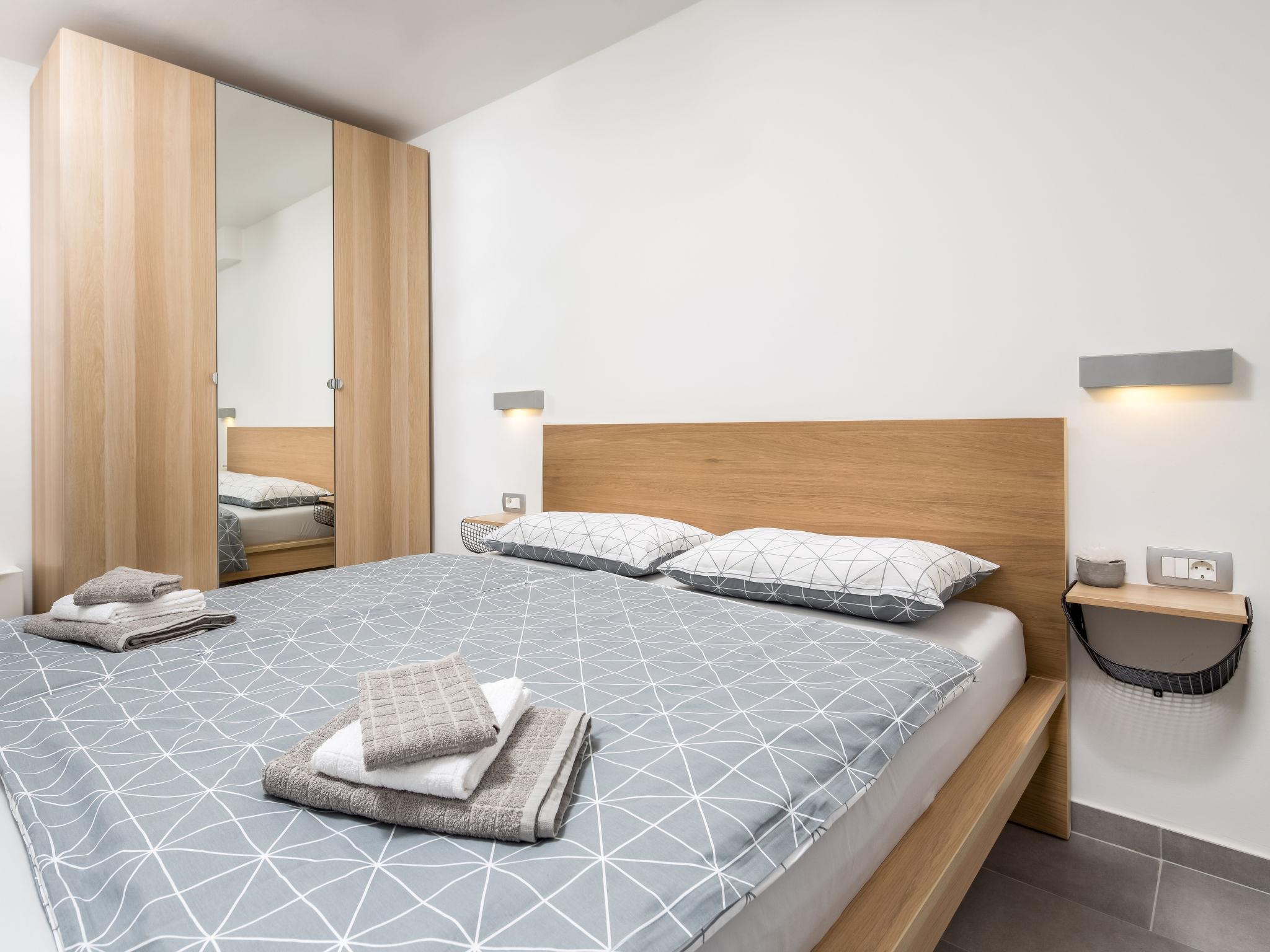 2-room apartment 22 m2, on the ground floor, south-east facing position. Living/dining room with satellite TV (flat screen). Exit to the terrace. 1 room with 1 french bed (160 cm, length 200 cm). Open kitchen (oven, 2 ceramic glass hob hotplates, electric coffee machine). Shower/WC. Oil heating (extra). Terrace 26 m2, roofed. Terrace furniture. Facilities: Internet (WiFi, free). Please note: private entrance. Traditional Istrian tavern for shared use.