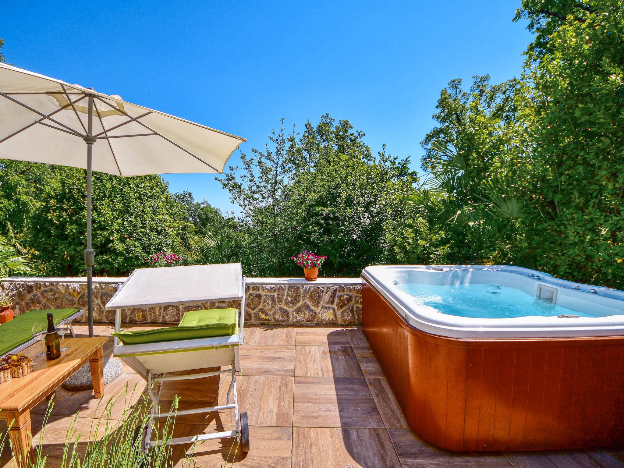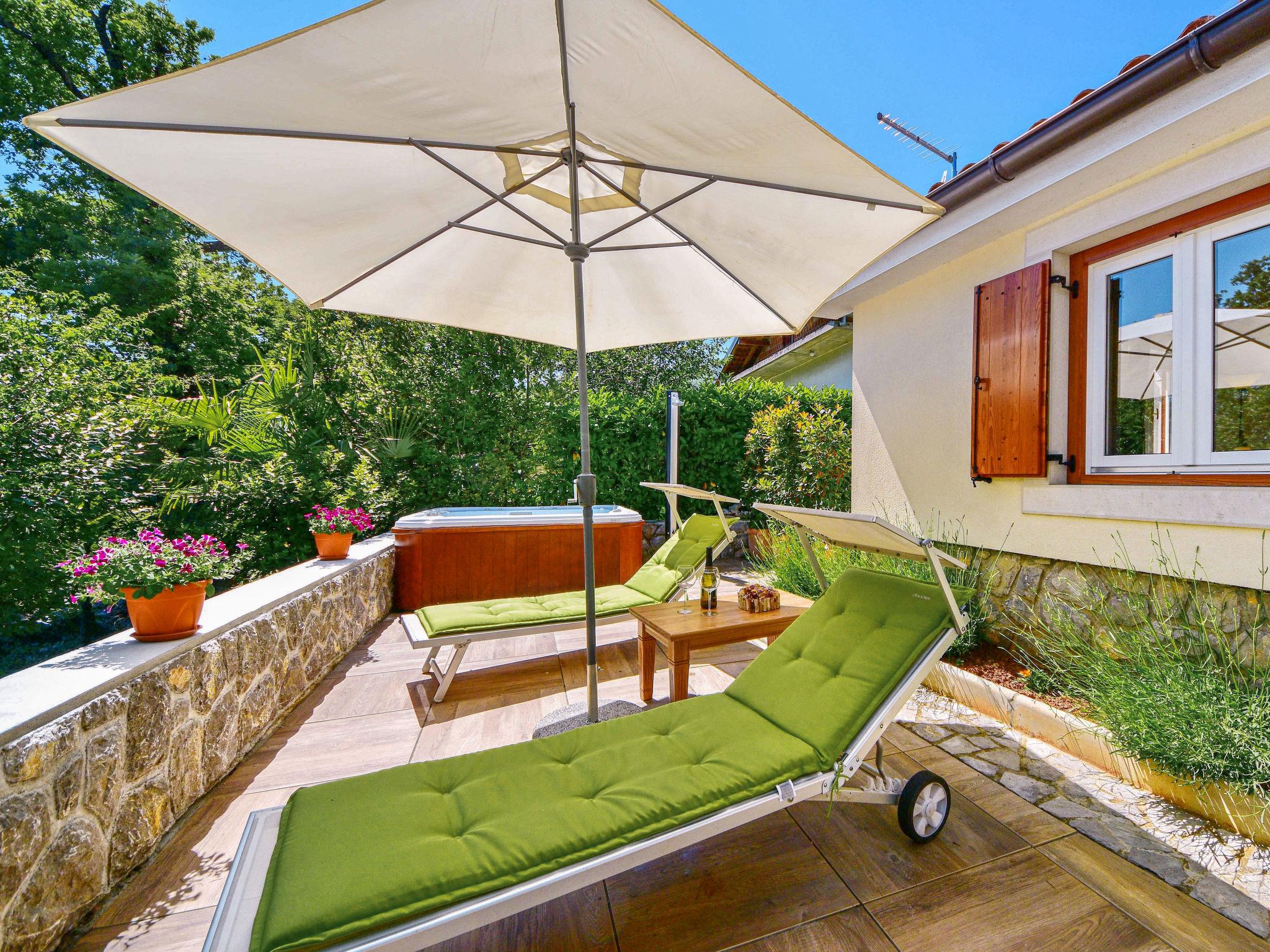 Pobri: Single-family house "Beni", built in 2013. 2.5 km from the centre of Opatija, 2.5 km from the sea, 2.5 km from the beach, in the countryside. For shared use: property 850 m2. Garden furniture, barbecue. Private: hot tub. In the house: internet access. Parking at the house on the premises. Shop 350 m, supermarket 1.8 km, restaurant 500 m, bus stop 16 m, pebble beach 2.5 km, concrete beach 2.5 km.