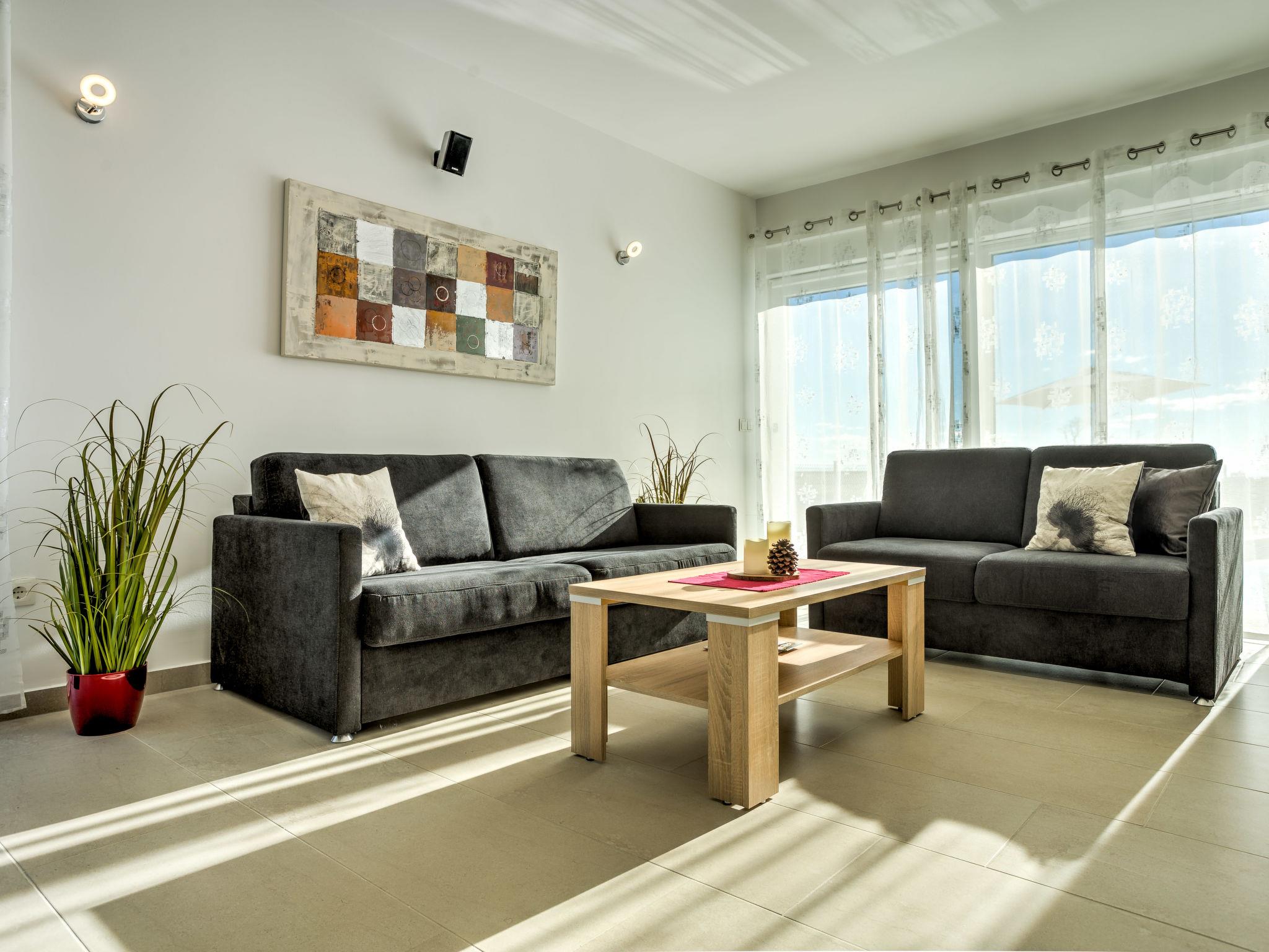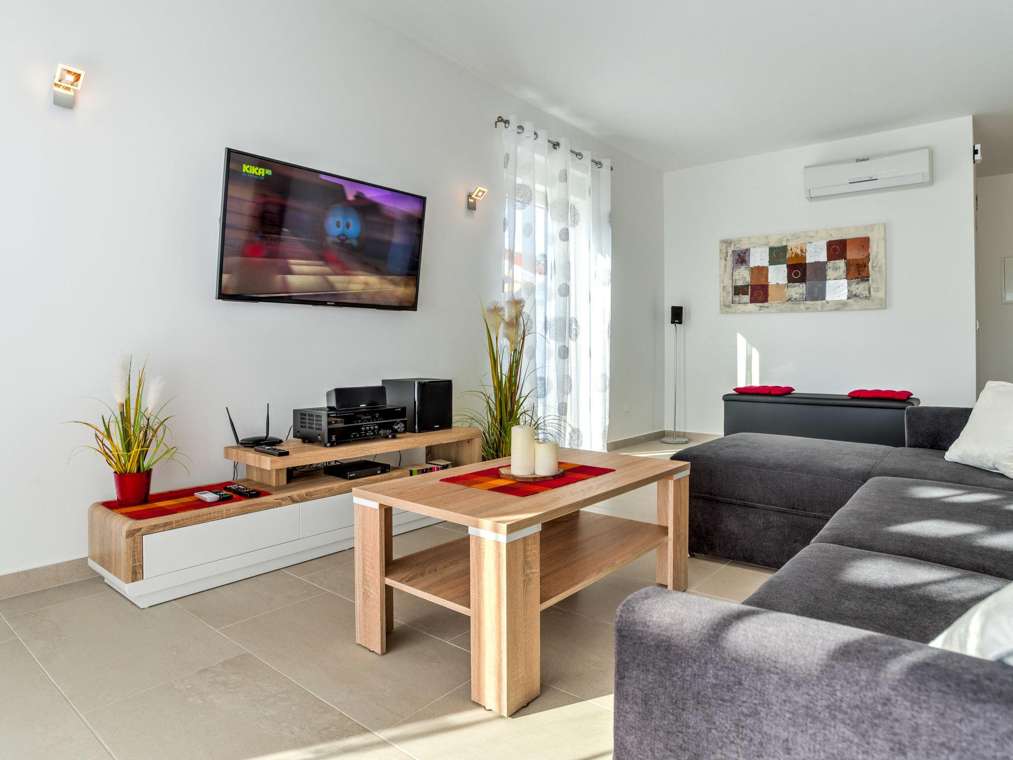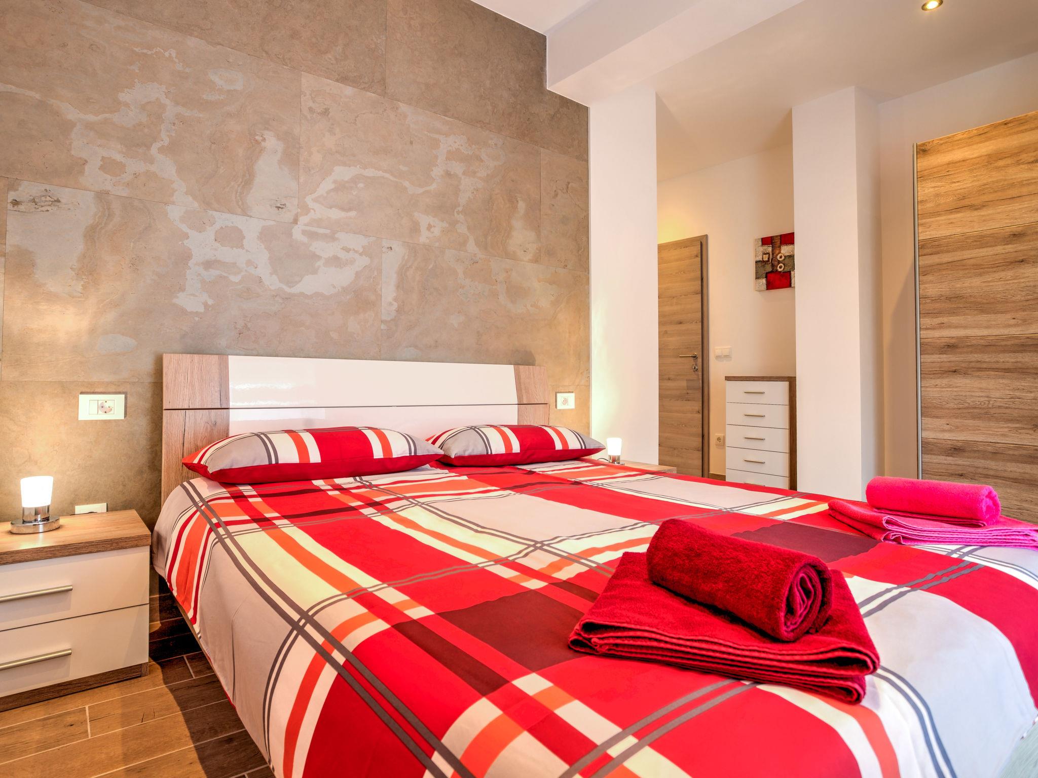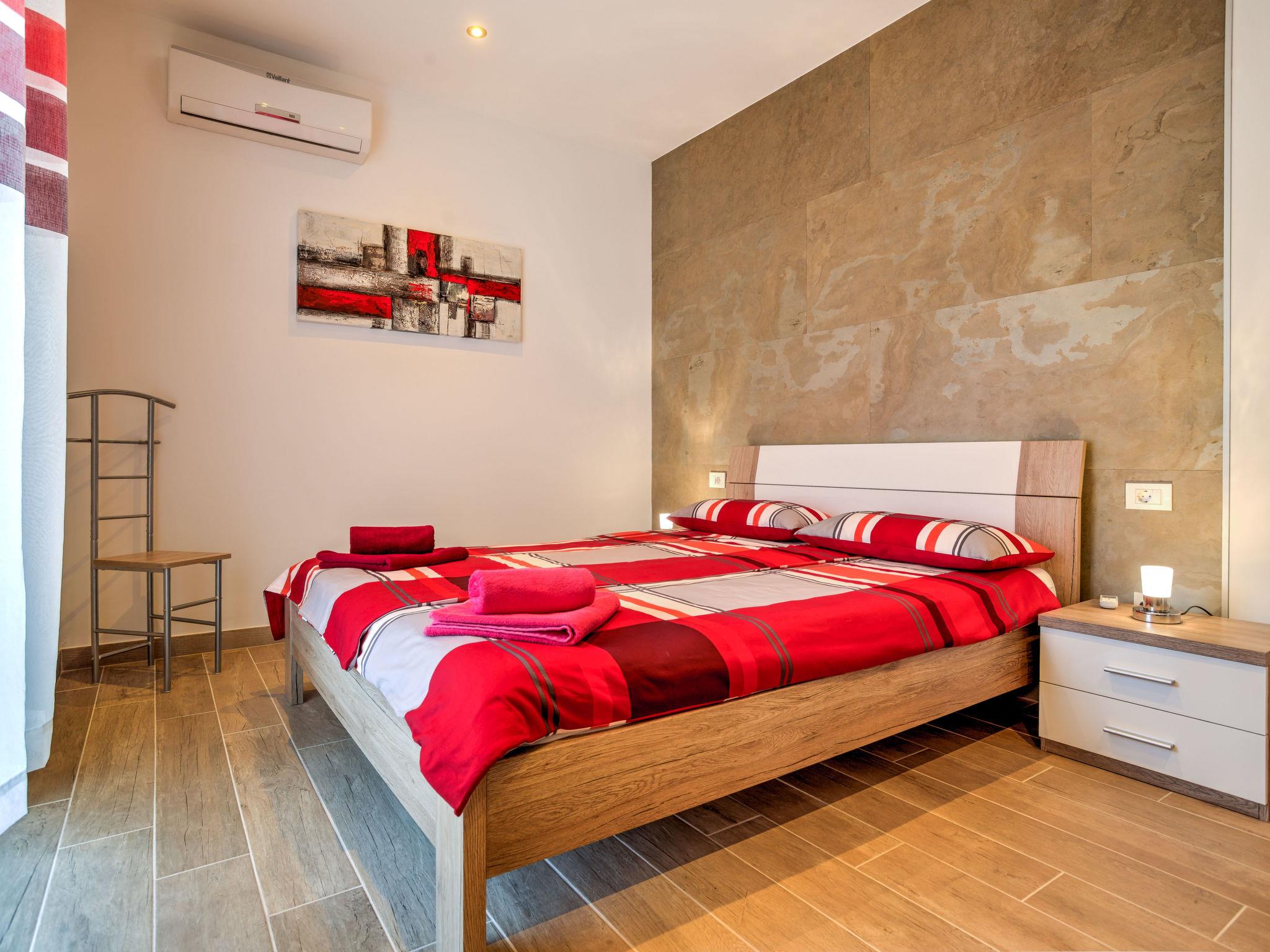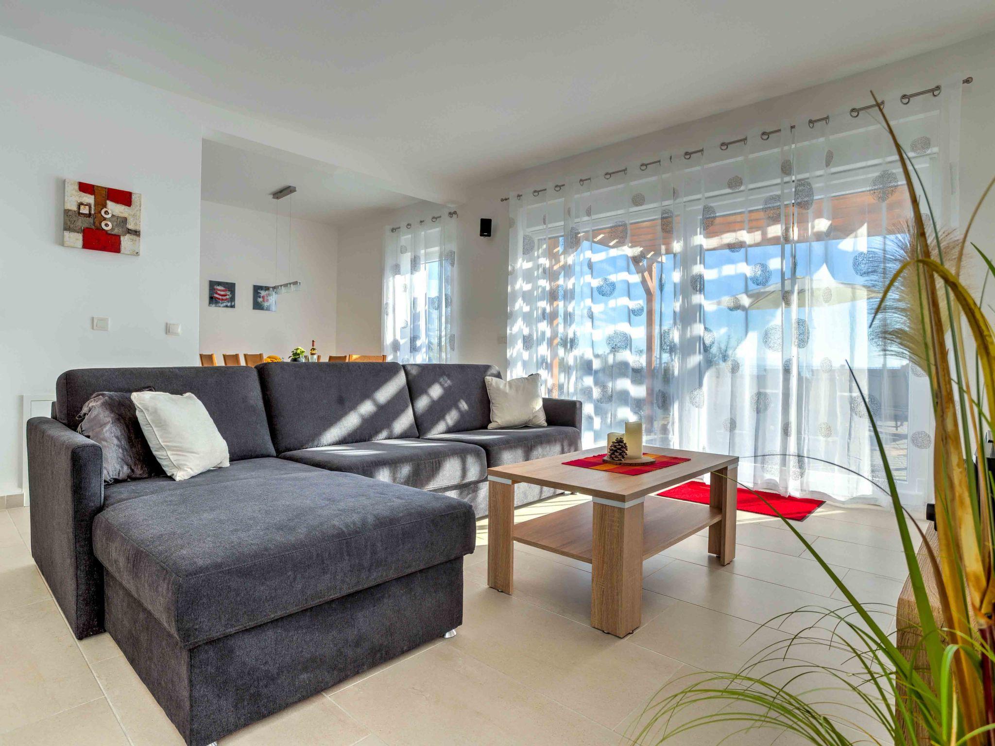 Pobri: Single-family house "Races", 3 storeys, built in 2017. Above Opatija 2.5 km from the centre of Opatija, in a quiet, sunny position, 2.5 km from the sea, 2.5 km from the beach, in a cul-de-sac. Private: property 1'000 m2 (fenced), lawn 200 m2, swimming pool angular (7 x 4 m, 30 m2, depth 140 cm, seasonal availability: 01.May. - 15.Oct.). Outdoor shower, hot tub, terrace (12 m2), garden furniture, barbecue. In the house: internet access, billiard table, table football, washing machine. Parking (for 5 cars) at the house on the premises. Shop 150 m, restaurant 2.5 km, bus stop 63 m, pebble beach 2.5 km, public bathing area 2.5 km, concrete beach 2.5 km. The owner does not accept any youth groups. Organizing a party is not allowed. Hot tub heating extra in the period 15.10.-01.05., in other periods included in the price. The unit consists of 2 houses rented as one unit. Private: terrace 12 m2, outdoor kitchen (4 hot plates, fridge), swimming pool (35 m2, depth 140 cm, 01.05.-15.10.). Unconventional pool shape.