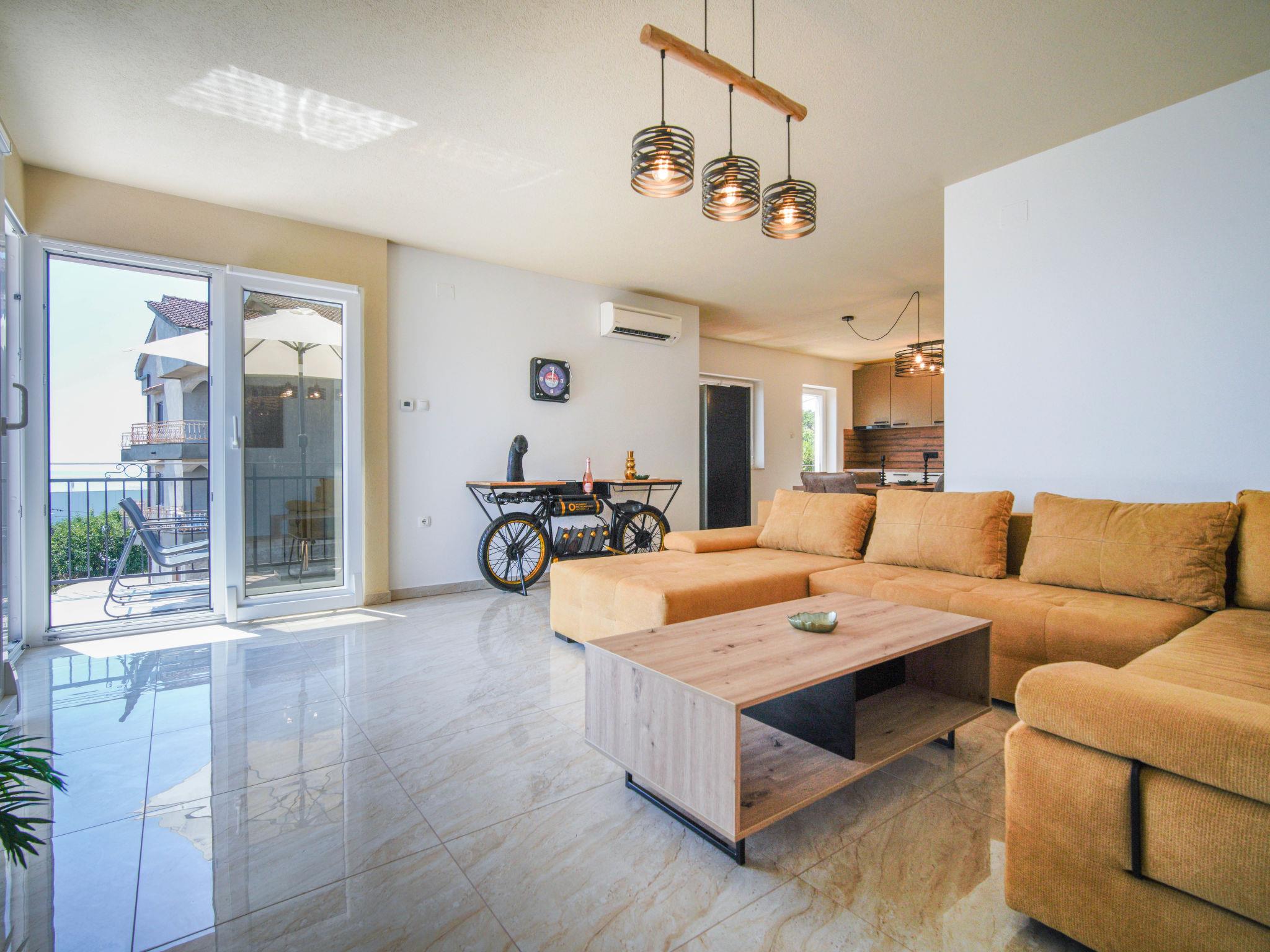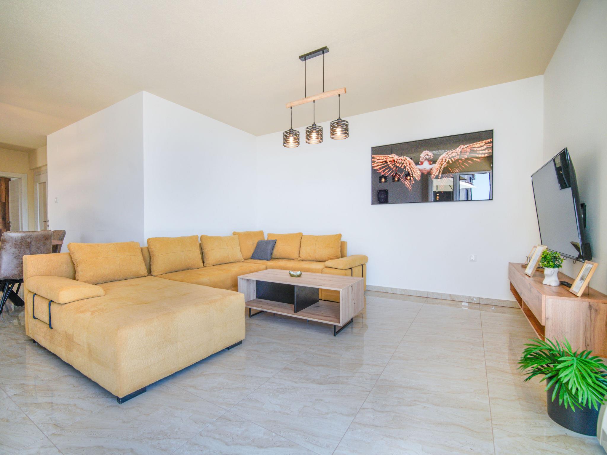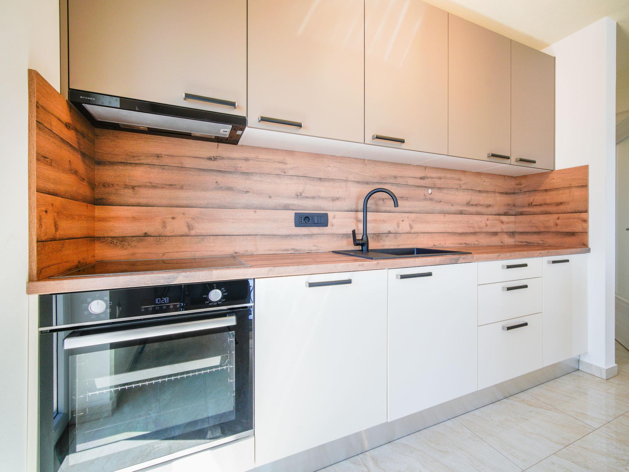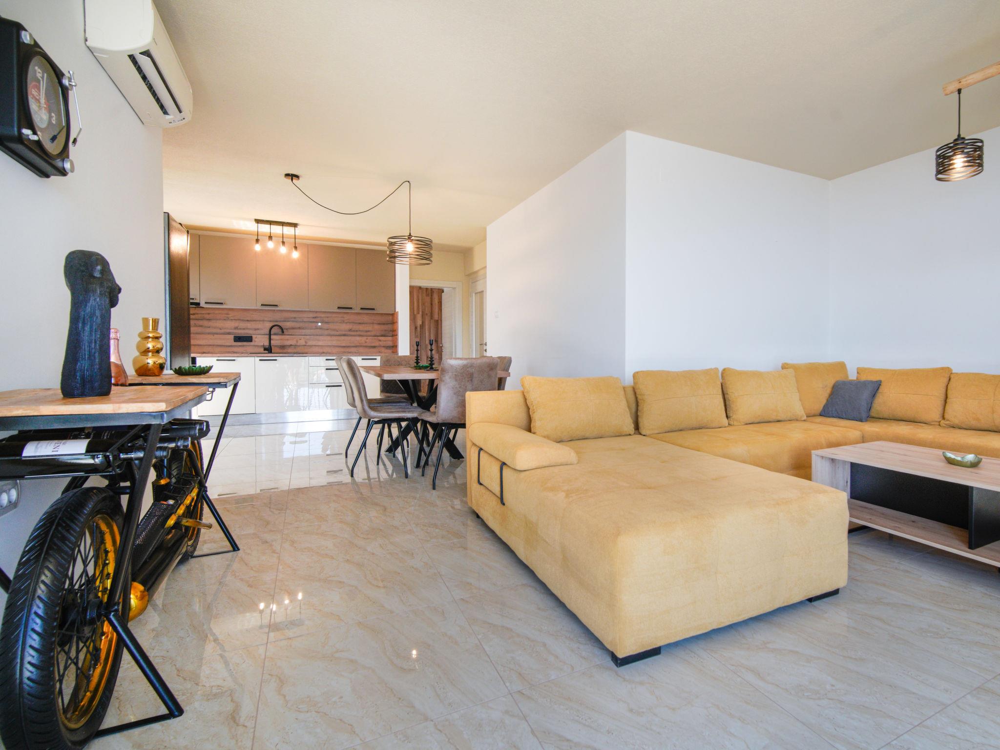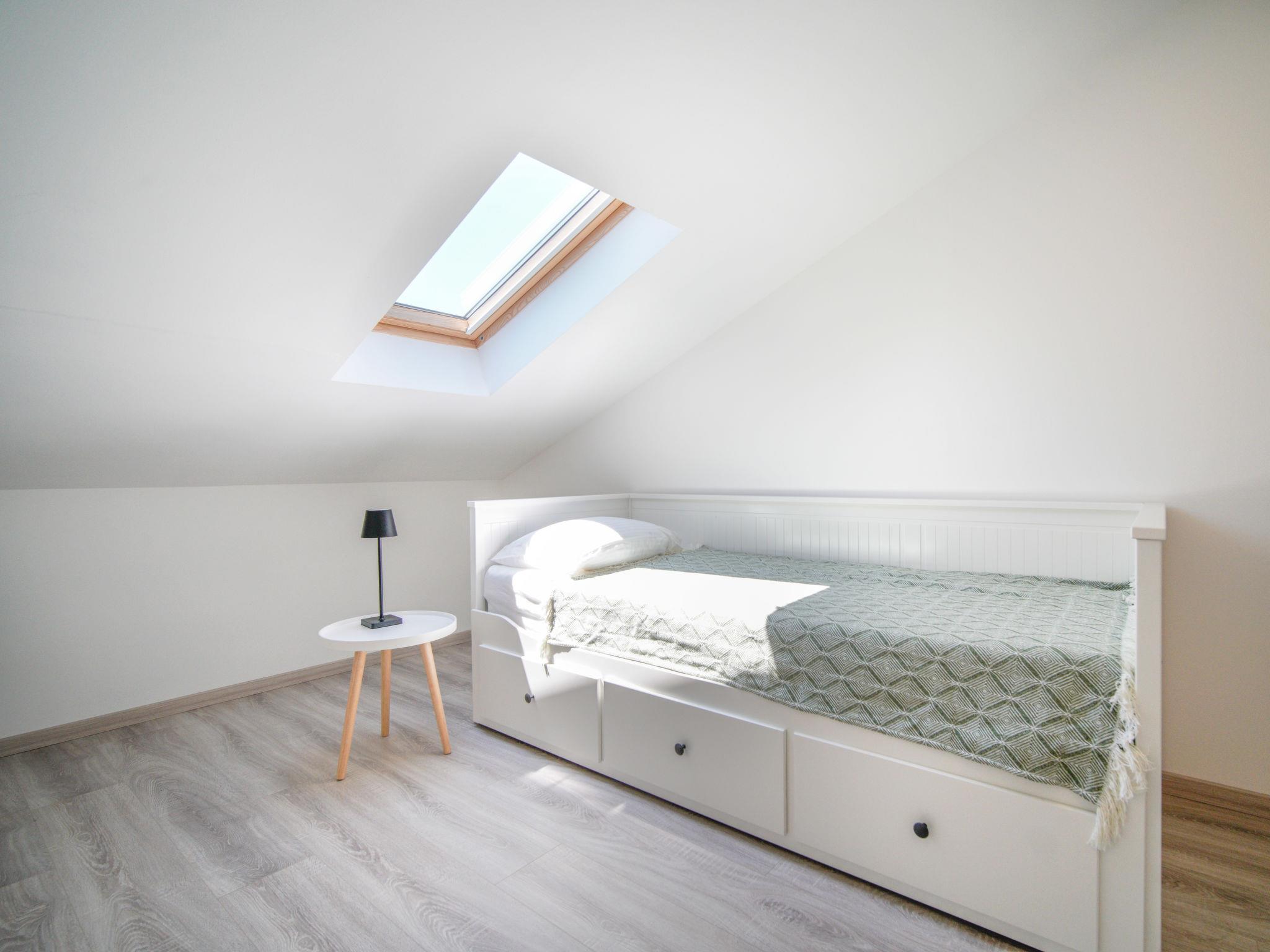 4-room apartment 130 m2 on 2 levels on 3rd floor. Spacious: living/dining room with satellite TV and air conditioning. Exit to the terrace. 1 room with 1 french bed (160 cm, length 200 cm), satellite TV. Exit to the balcony. Open kitchen (oven, dishwasher, 4 induction hot plates, kettle, freezer). Exit to the balcony. Shower/WC. Upper floor: open gallery with satellite TV and air conditioning. 1 room with sloping ceilings, ceiling height 80 - 240 cm with rooflight with 1 bed (80 cm, length 200 cm). 1 room with sloping ceilings, ceiling height 80 - 240 cm with rooflight with 2 beds (90 cm, length 200 cm). Shower/bidet/WC. No heating option. Balcony 10 m2, terrace 18 m2. Terrace furniture. Beautiful view of the sea and the countryside. Facilities: washing machine, dryer, safe, children's high chair, baby cot, hair dryer. Internet (WiFi, free).