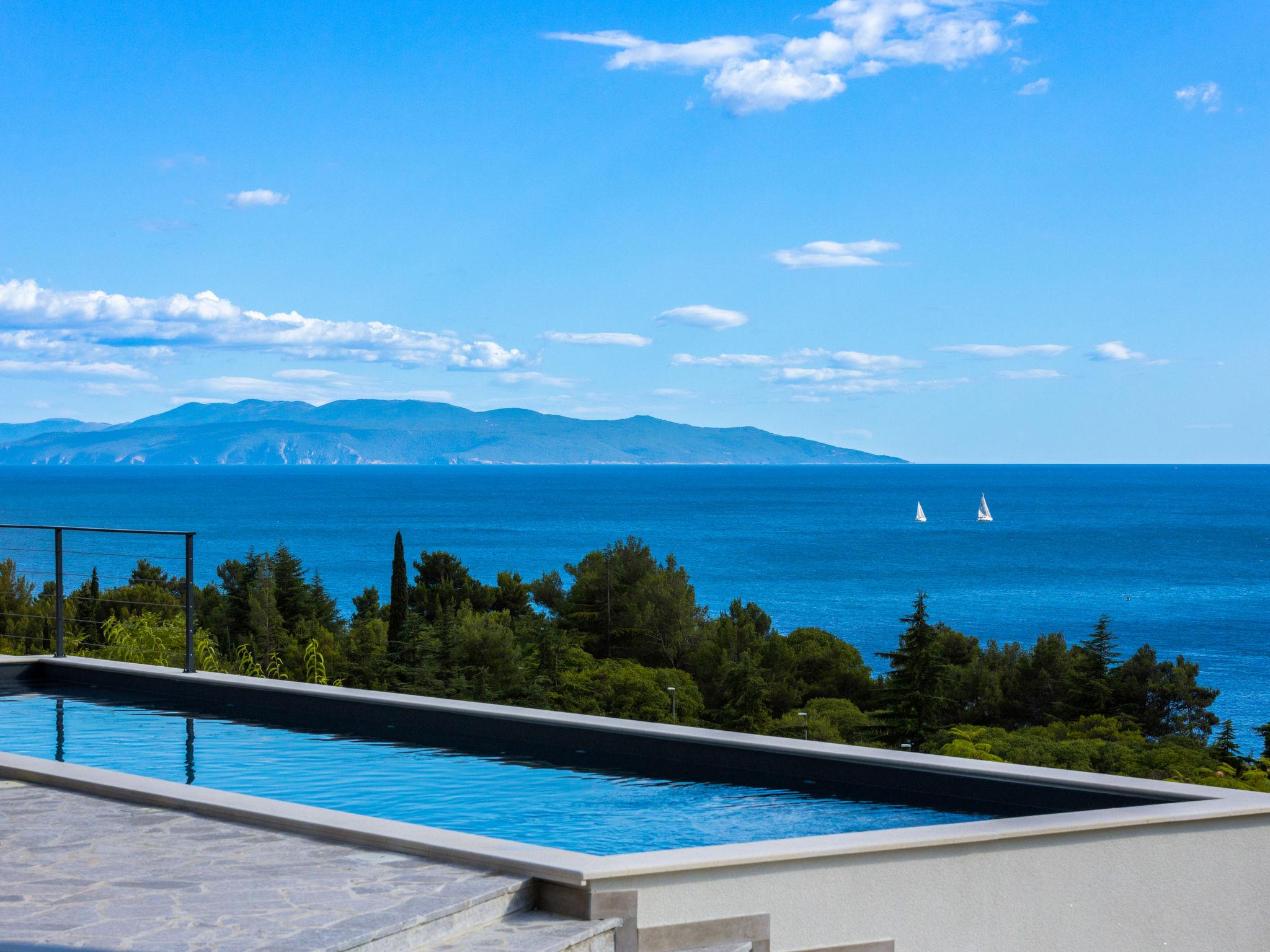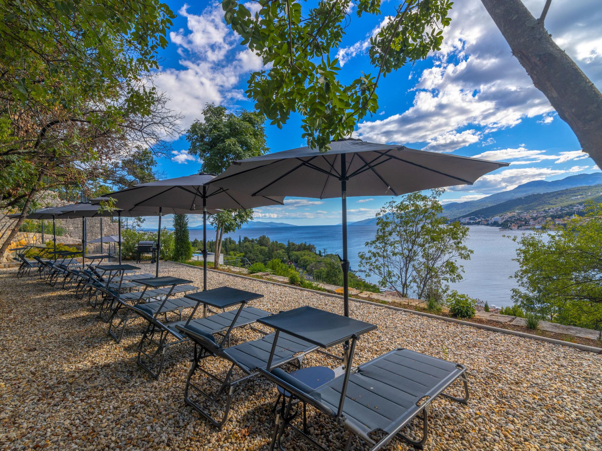 Preluk 4 km from Opatija: Cosy, luxurious apartment house "Mare Sano Resort", 4 storeys, renovated in 2022. 1.7 km from the centre of Volosko, 10 km from the centre of Rijeka, 50 m from the sea, 50 m from the beach, road to cross, located by a road. For shared use: property 1'398 m2 with flowers, swimming pool angular (11 x 4 m, depth 145 cm, seasonal availability: 01.May. - 01.Oct.) with internal staircase and shutter cover. Outdoor shower, terrace (40 m2), garden furniture, barbecue. Private: terrace (20 m2), garden furniture. In the house: internet access, storage room for bicycles, burglar alarm system, washing machine (extra). Parking at the house on the premises. Shop 1.5 km, supermarket 1.5 km, restaurant 1.7 km, café 30 m, bus stop, pebble beach 50 m, rocky beach 100 m. Walking paths from the house 100 m. Groups of teenagers on request only.