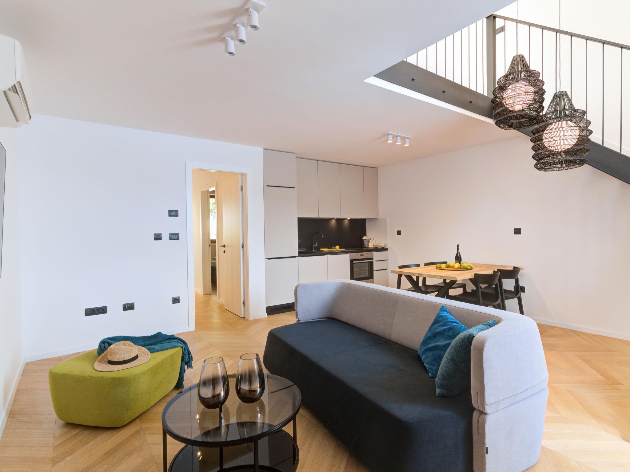 Preluk 4 km from Opatija: Cosy, luxurious apartment house "Mare Sano Resort", 4 storeys, renovated in 2022. 1.7 km from the centre of Volosko, 10 km from the centre of Rijeka, 50 m from the sea, 50 m from the beach, road to cross, located by a road. For shared use: property 1'398 m2 with flowers, swimming pool angular (11 x 4 m, depth 145 cm, seasonal availability: 01.May. - 01.Oct.) with internal staircase and shutter cover. Outdoor shower, terrace (40 m2), garden furniture, barbecue. Private: terrace (20 m2), garden furniture. In the house: internet access, storage room for bicycles, burglar alarm system, washing machine (extra). Parking at the house on the premises. Shop 1.5 km, supermarket 1.5 km, restaurant 1.7 km, café 30 m, bus stop, pebble beach 50 m, rocky beach 100 m. Walking paths from the house 100 m. Groups of teenagers on request only.