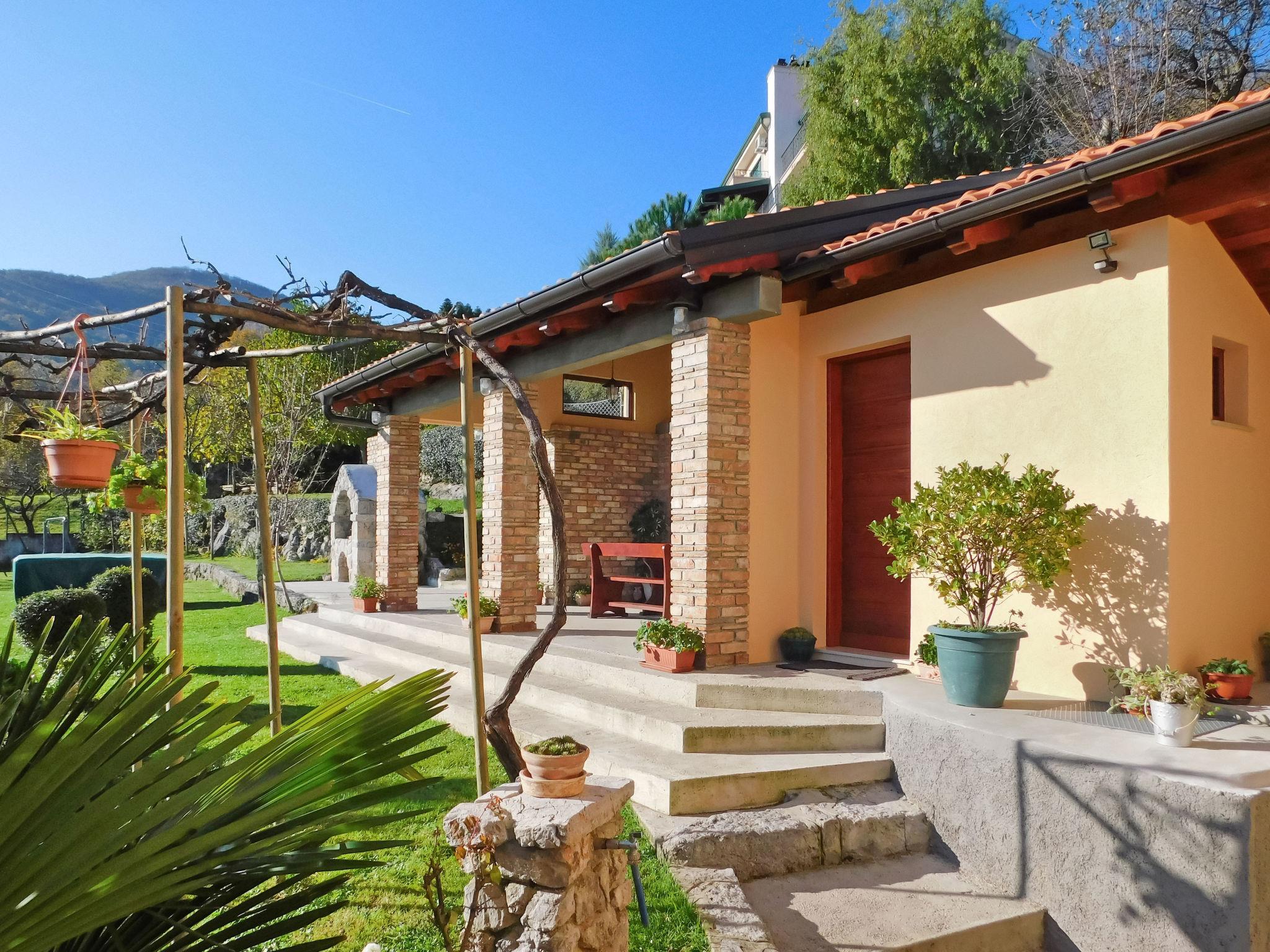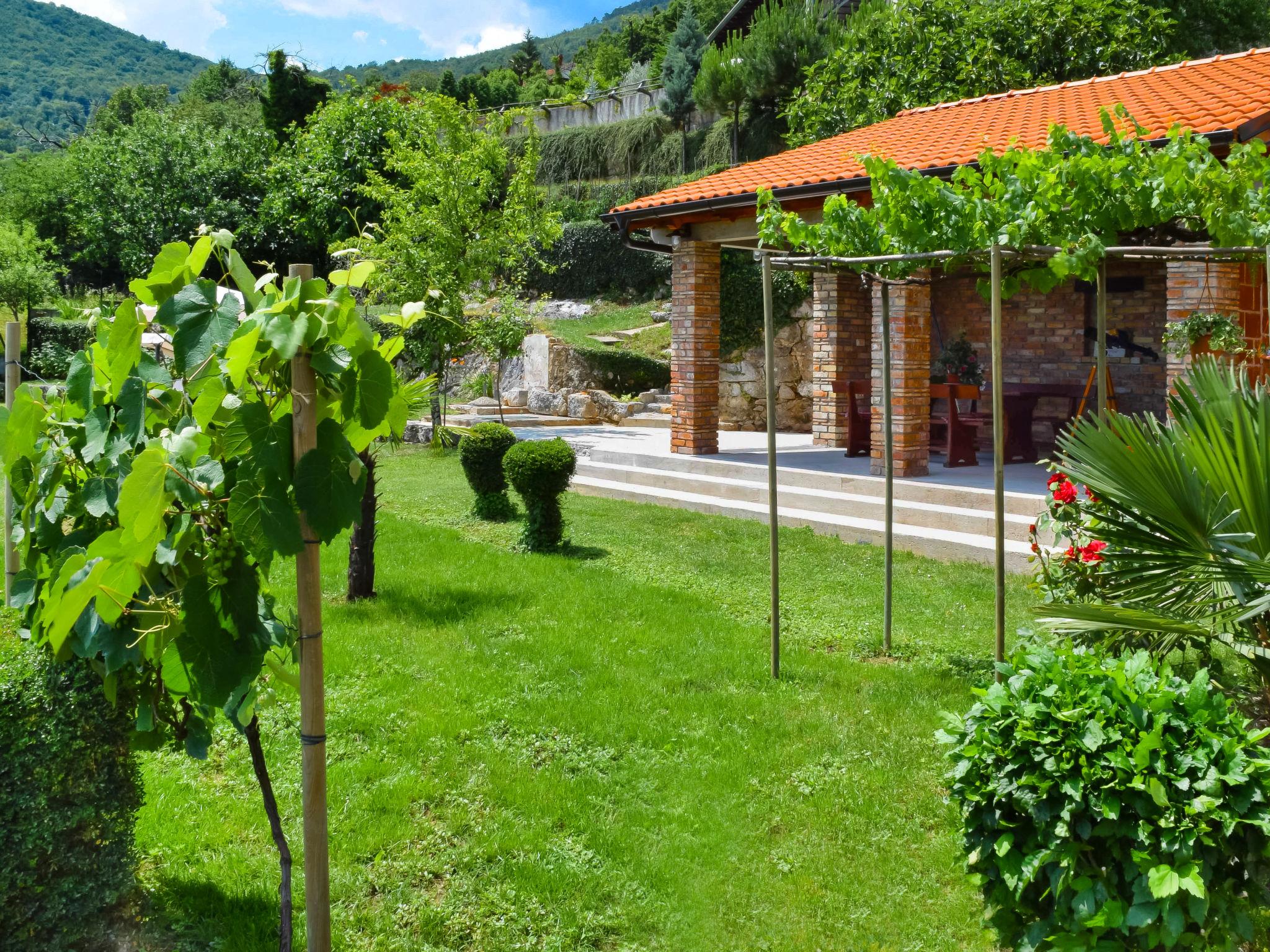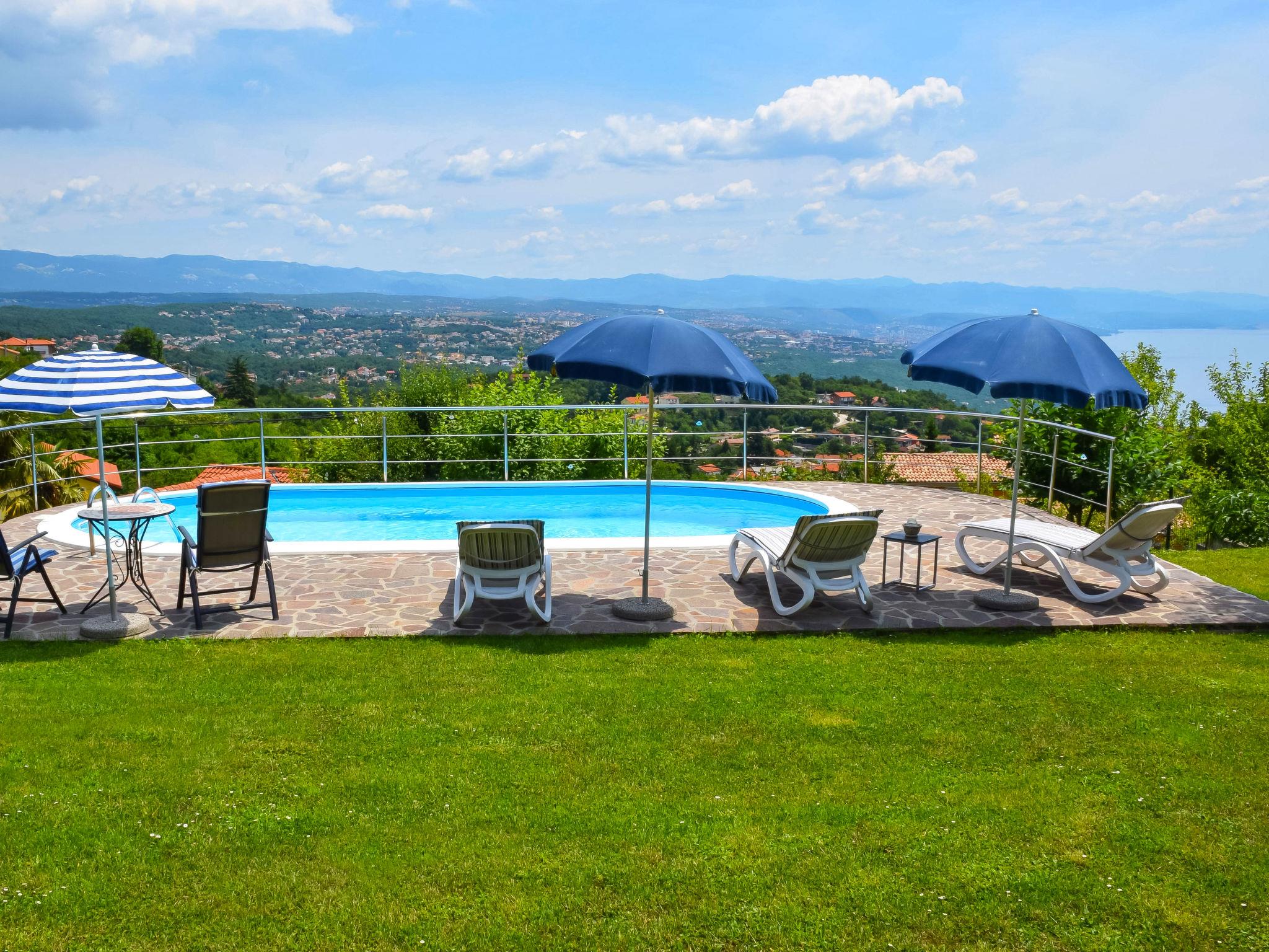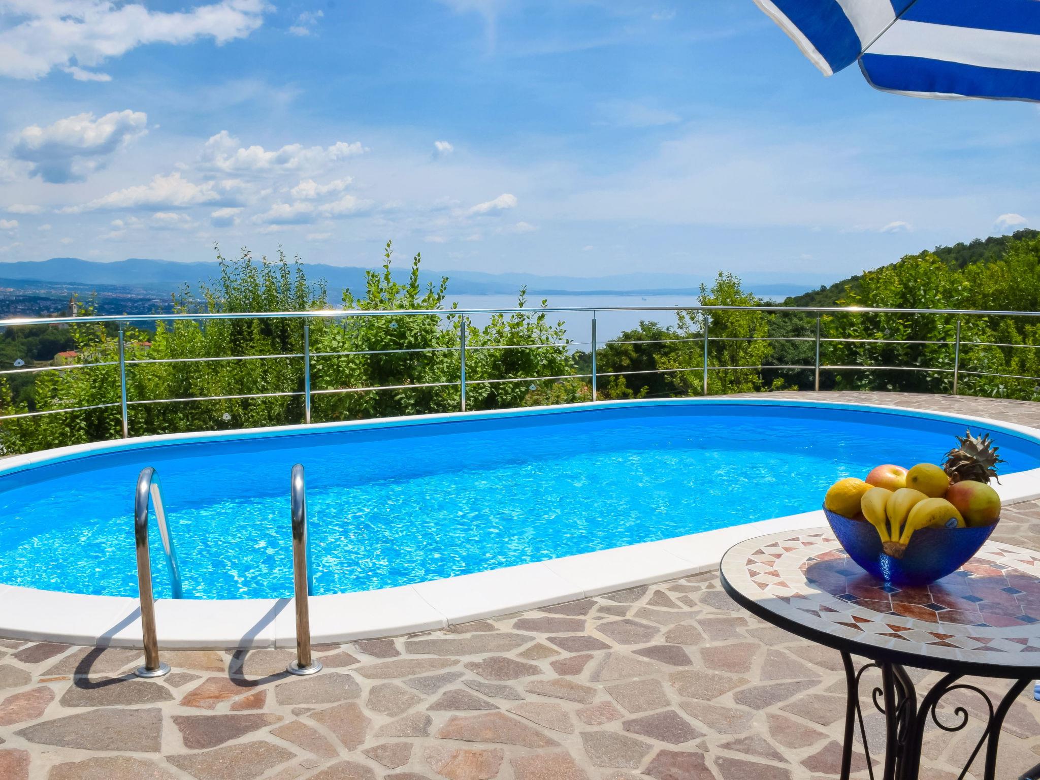 Rukavac 5 km from Opatija: Single-family house "Lea", 2 storeys. 3.5 km from the centre of Matulji, in a quiet, sunny position on a slope, 5 km from the sea, in the countryside. Private: property 1'400 m2 (fenced), lawn 500 m2, swimming pool (32 m2, depth 150 cm, seasonal availability: 01.May. - 15.Oct.). Shower/WC in the pool area, table tennis, badminton, arbour (30 m2), pergola (45 m2), garden furniture, barbecue, children's playground (swing). In the house: internet access, washing machine. Parking (for 2 cars) at the house on the premises. Shop 650 m, supermarket 4.5 km, restaurant 900 m, bus stop 600 m, rocky beach 5 km, public bathing area 5 km, concrete beach 5 km. Walking paths from the house 5 km. The owner does not accept any youth groups.