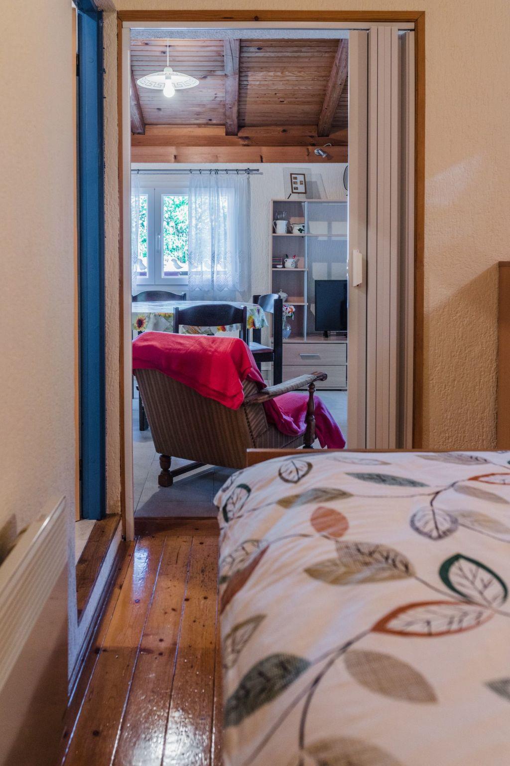 Holiday House For Two with tavern and fireplace, pets friendly, and 7000 m2 of surroundings. An original old Mediterian style cottage, a peaceful nature oasis, is situated in a natural oasis that spreads on 7,000 m2. The living space, 50 m2, is located on the second floor of the self-standing house and consist of one bedroom with king size bed, a kitchen, and a dining area among a living room and sitting area. A large terrace with dining furniture overlooking the quiet street and a beautiful environment. These cosy and modern fully equipped apartments are featuring a WIFI, LED TV, air conditioning, bathroom with shower, free parking, bike and motorbike secure storage.