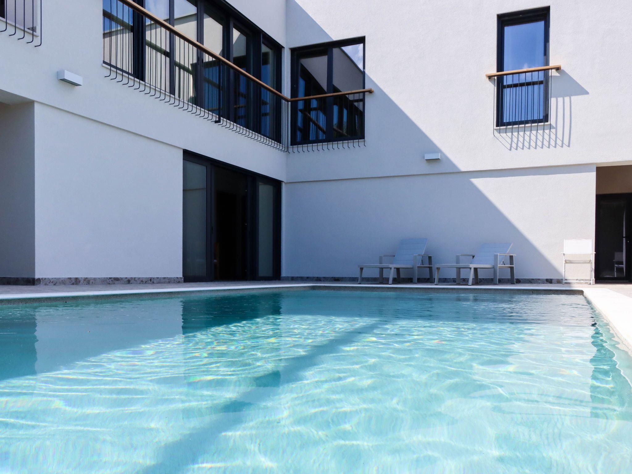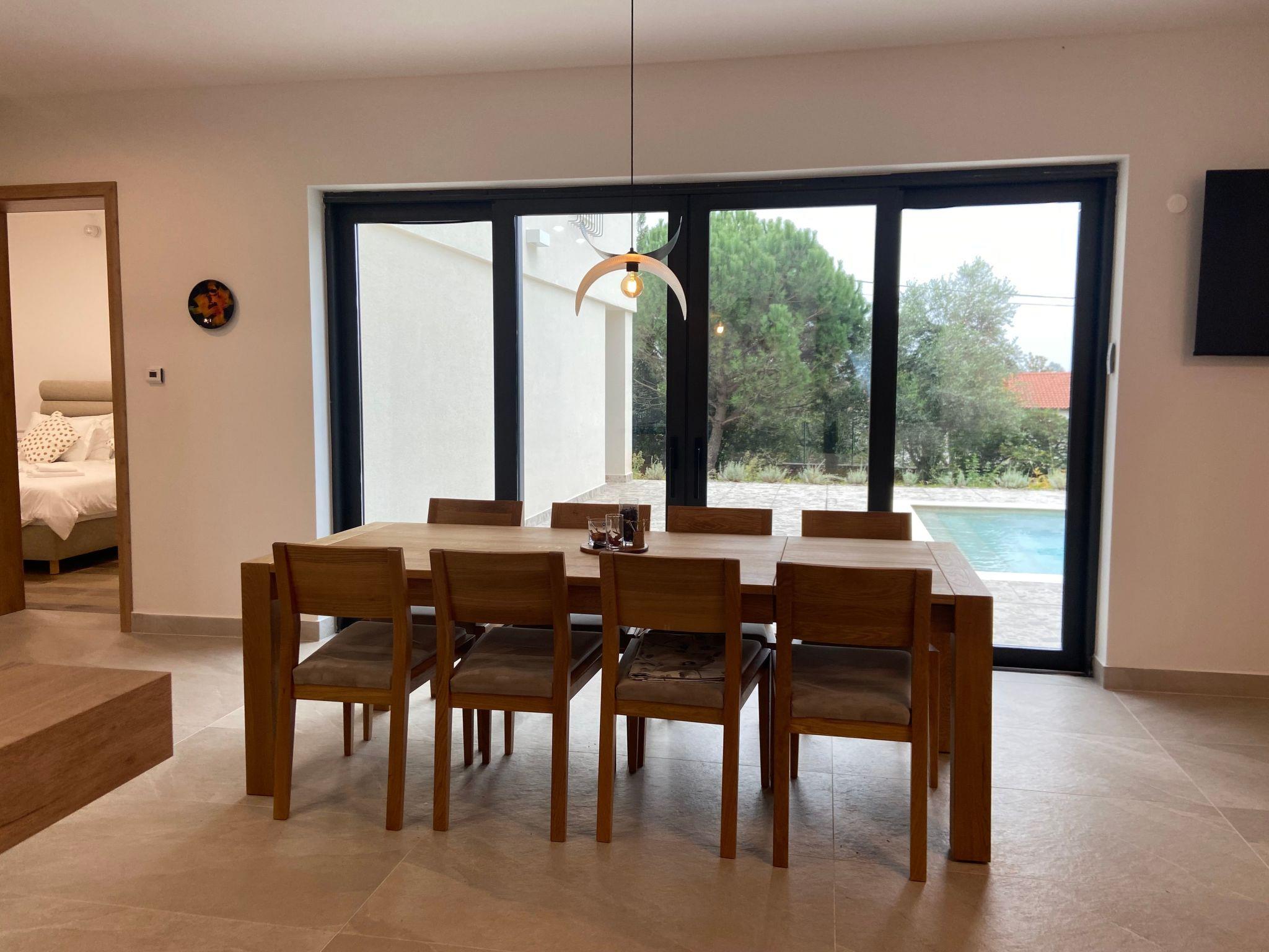 Villa Mi is sourounded by Mediteranean garden and swimming pool. The outdoor facilities next to the swimming pool includes a barbecue with a large dining table, deckchairs, a sauna with a bathroom and some outdoor games.