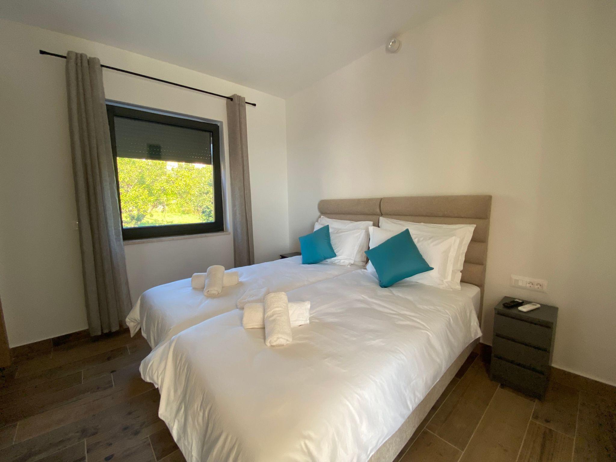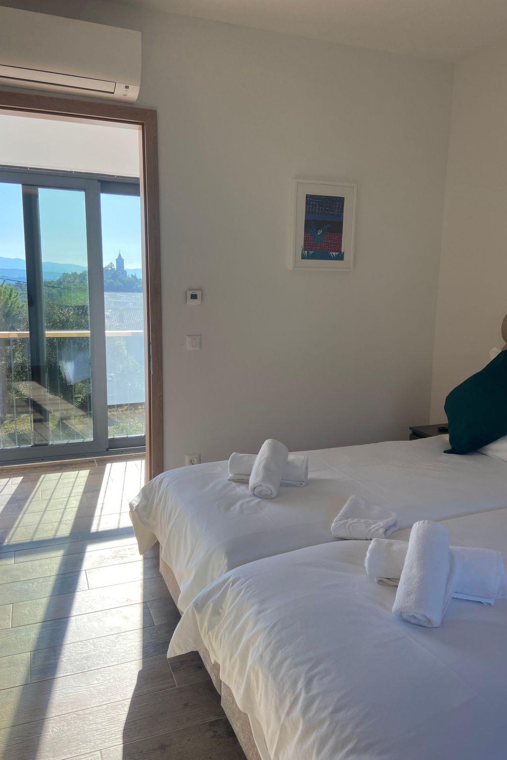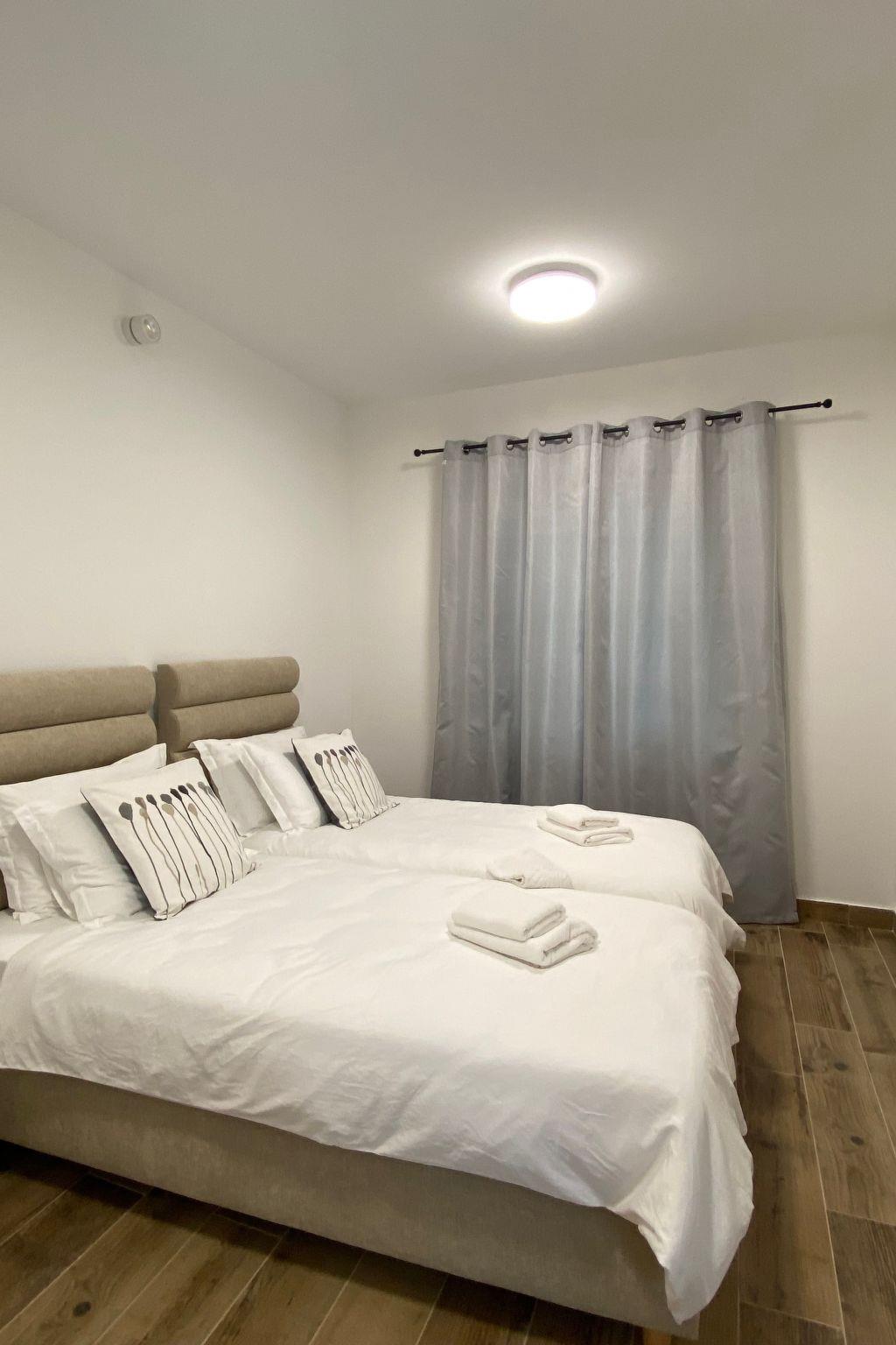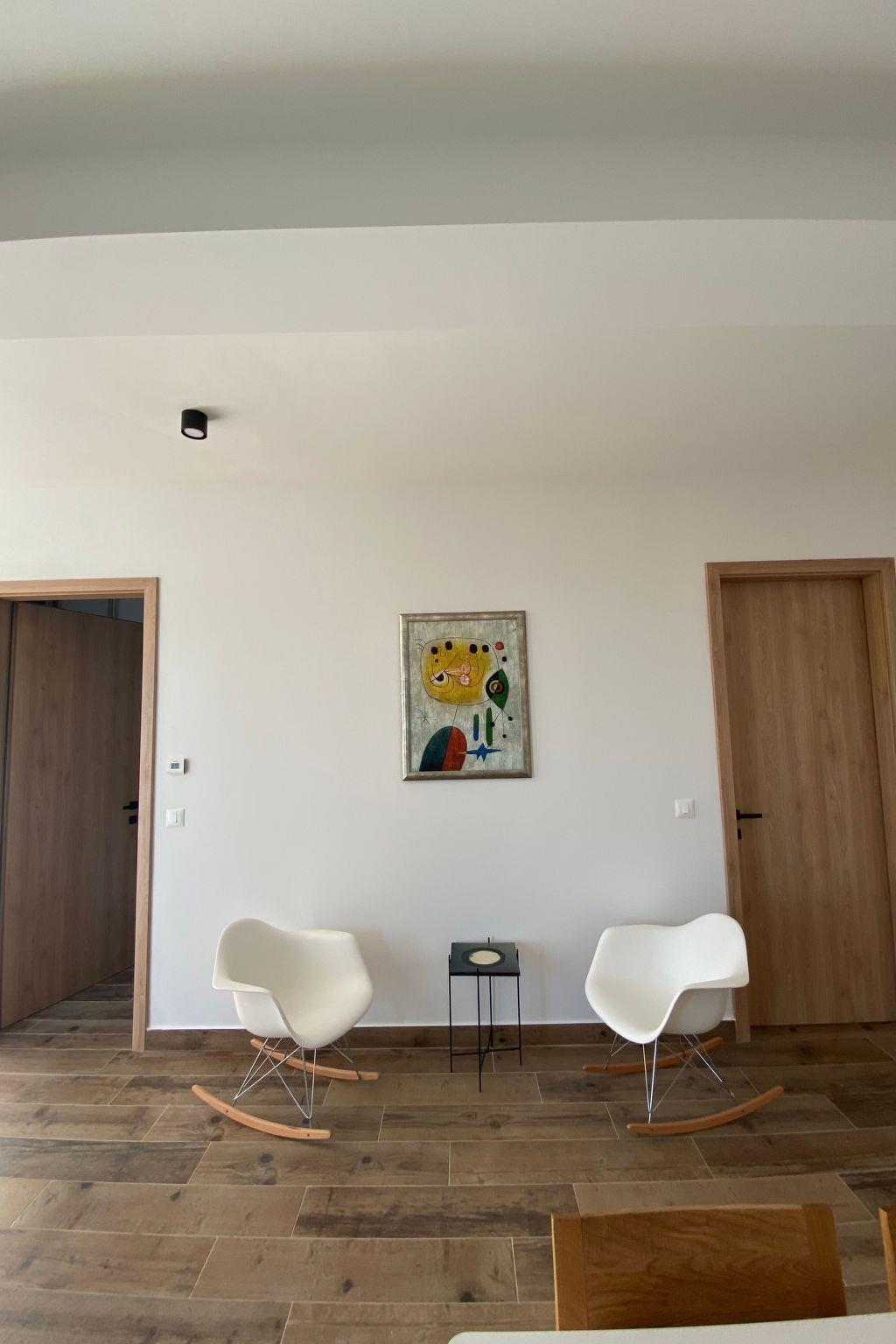 The villa consists two floors with two individual apartments connected by common terraces, a summer kitchen with a barbecue and a swimming pool with a sunbathing area. Each floor is equipped with a kitchen with all the kitchen accessories, bedrooms with separate beds that can be combined into double beds, and attached bathrooms. Each room and the living room are equipped with a TV.