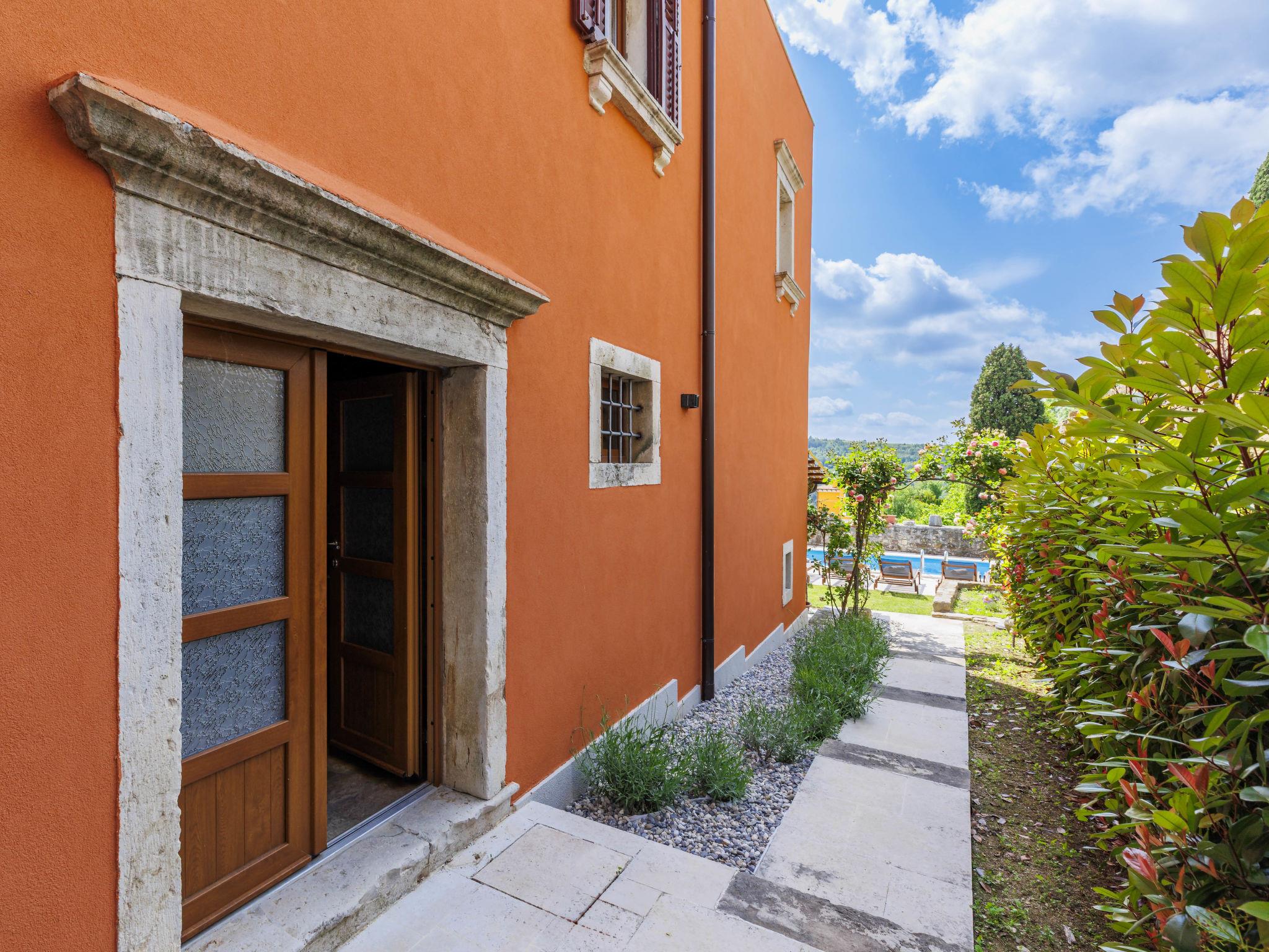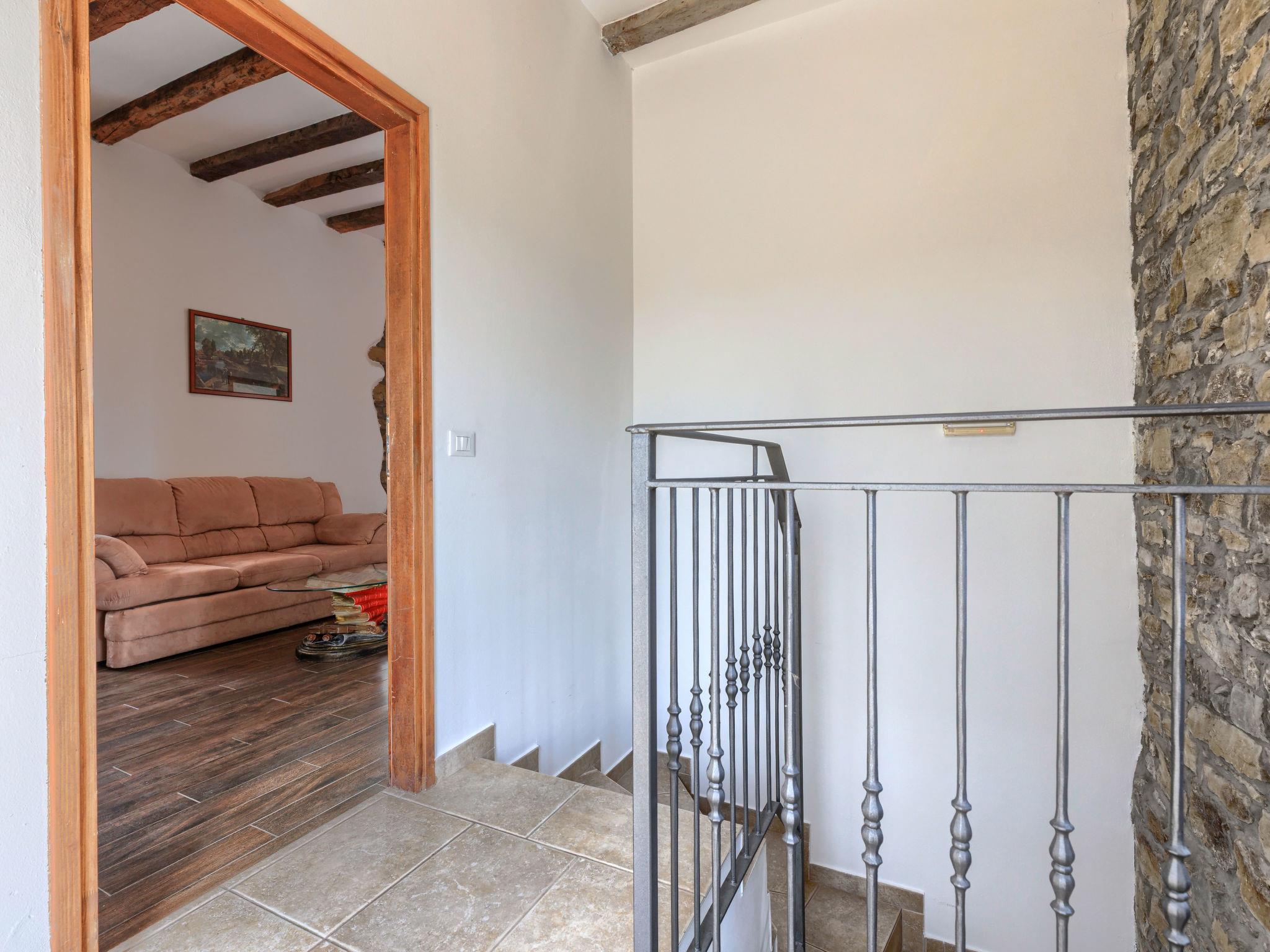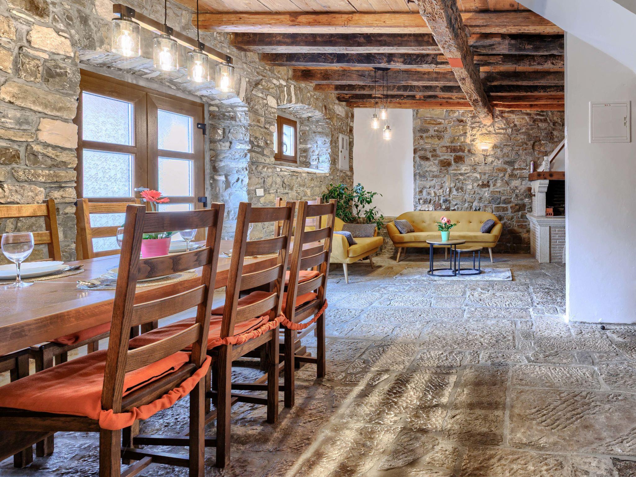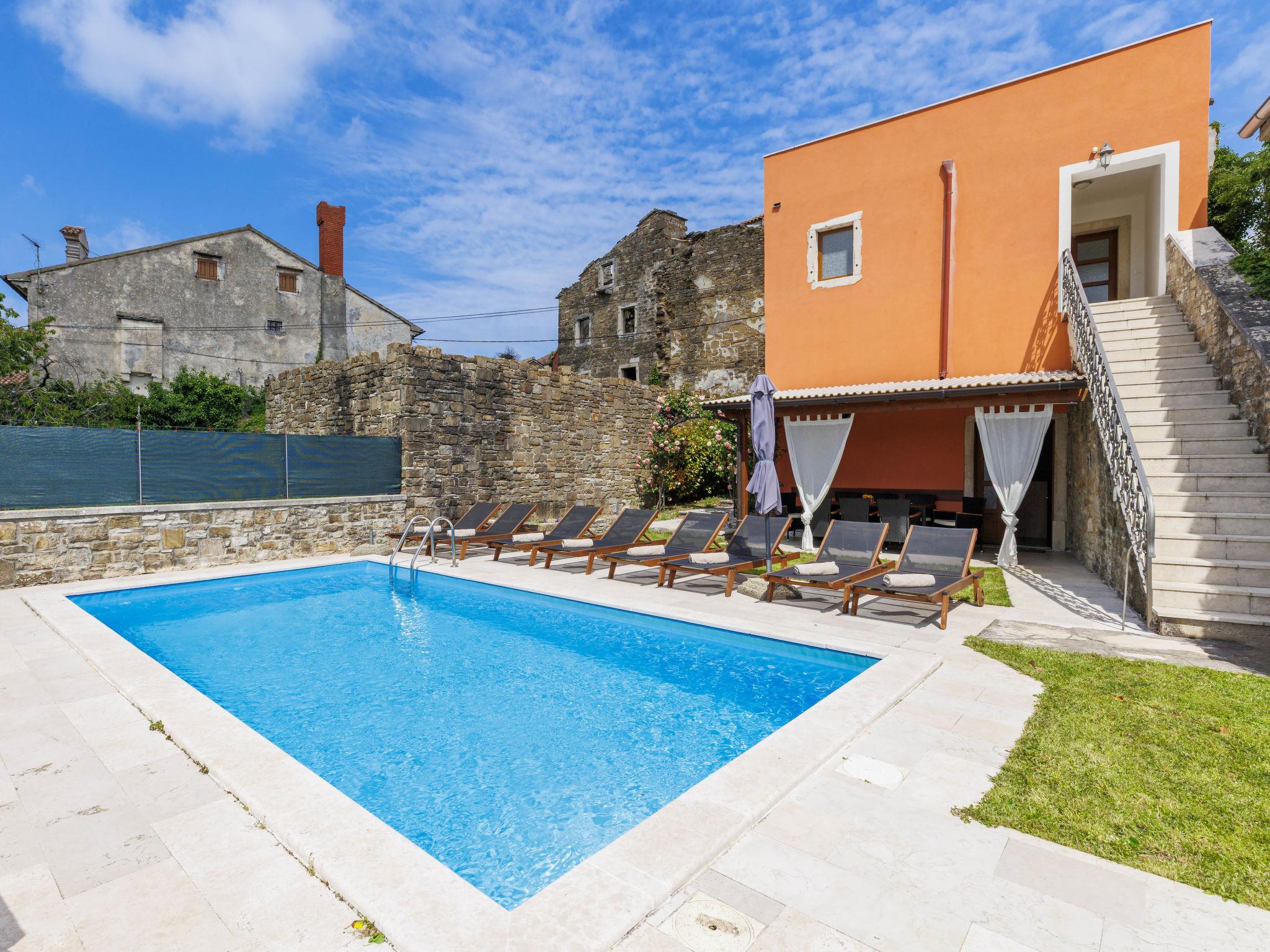 Rustic semi-detached house "Villa Letizia", 3 storeys. 200 m from the centre of Oprtalj, 10 km from the centre of Motovun, in a sunny, elevated position on a slope, 25 km from the sea, in a cul-de-sac. Private: property 350 m2 (fenced), swimming pool angular (24 m2, depth 150 cm, seasonal availability: 01.May. - 01.Oct.) with internal staircase. Garden furniture, barbecue (slide), pool maintenance by the owner/gardener. In the house: internet access, table football, trampoline. Public car park. Grocery 150 m, supermarket 12 km, restaurant 150 m, bus stop 12 km, railway station 37 km, pebble beach 25 km, rocky beach 25 km. Walking paths from the house, cycle lane 50 m. Object suitable for 6 adults + 2 children.