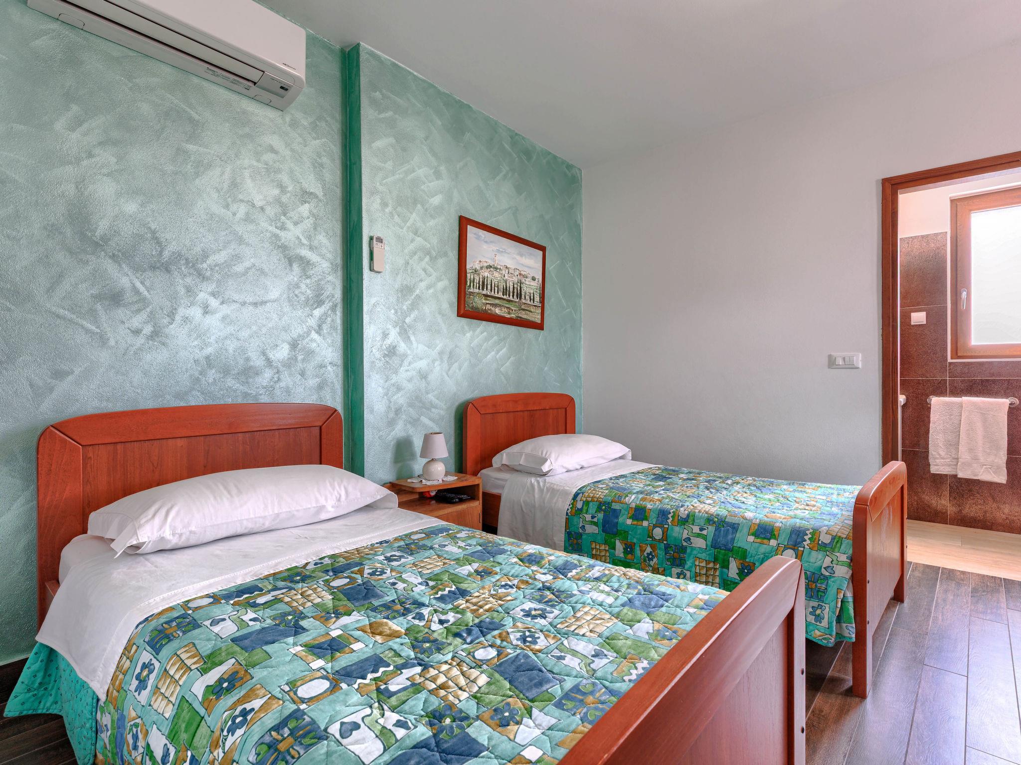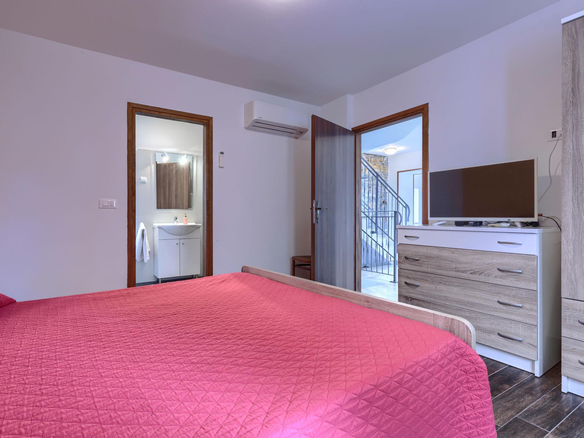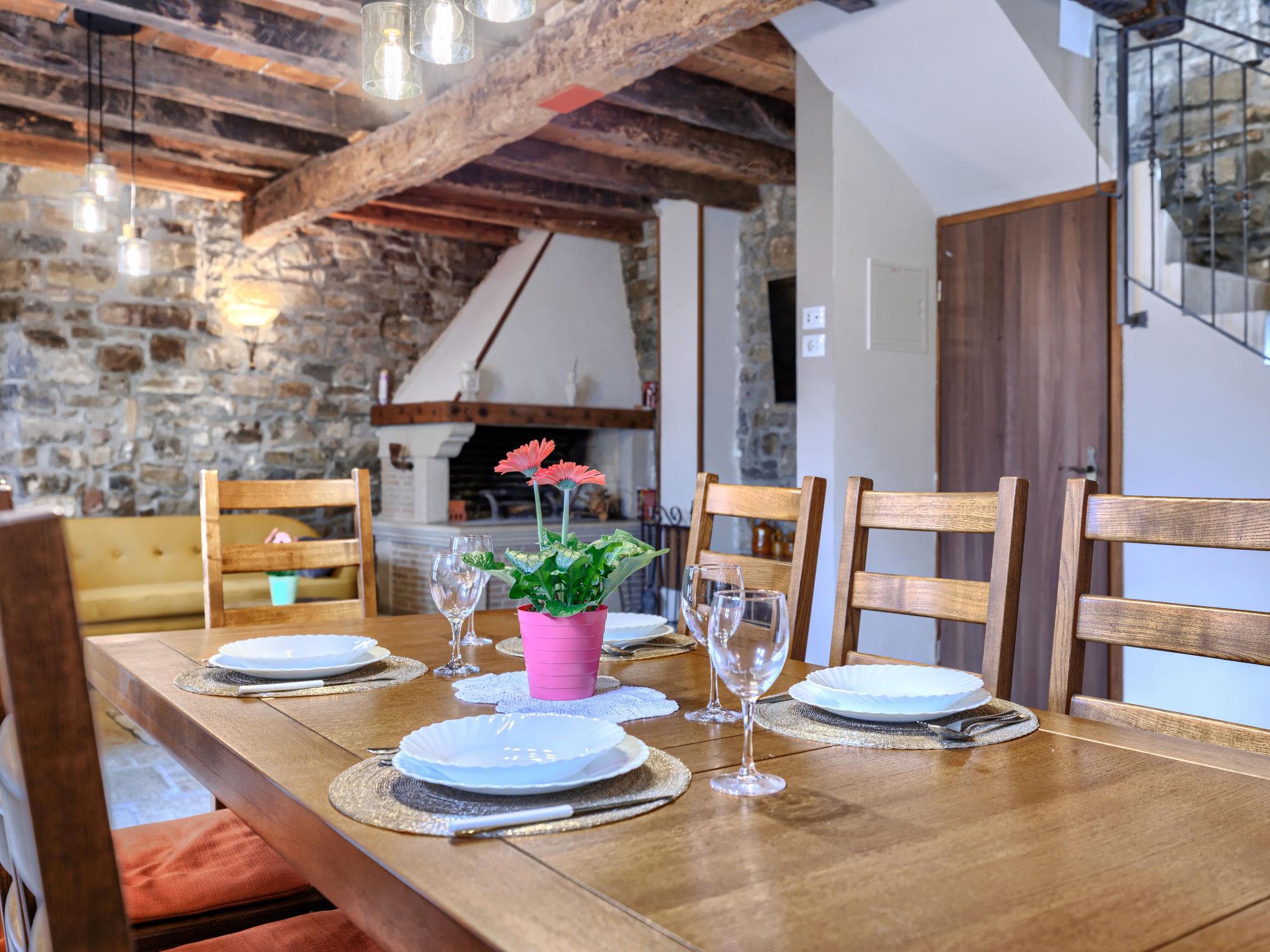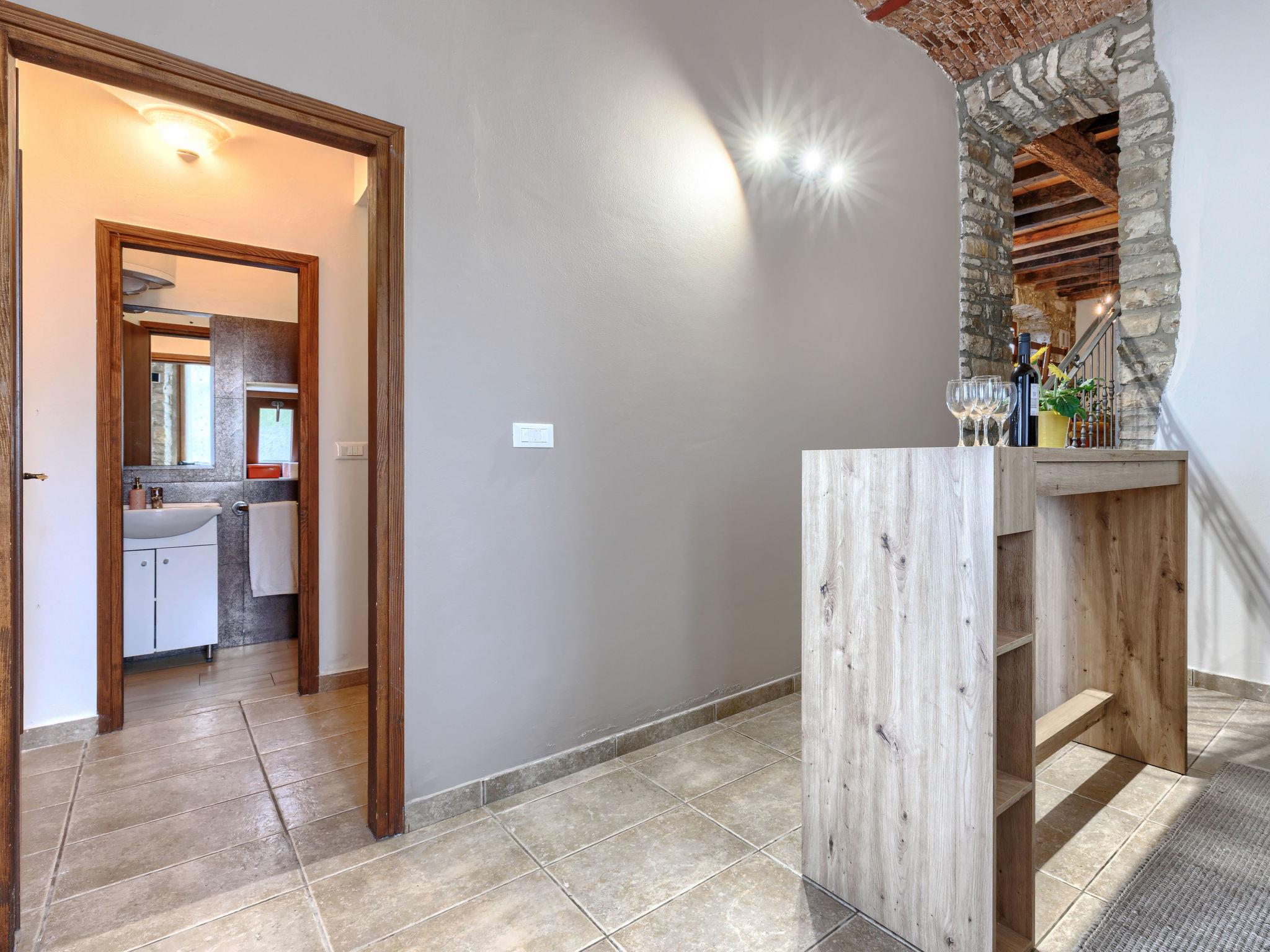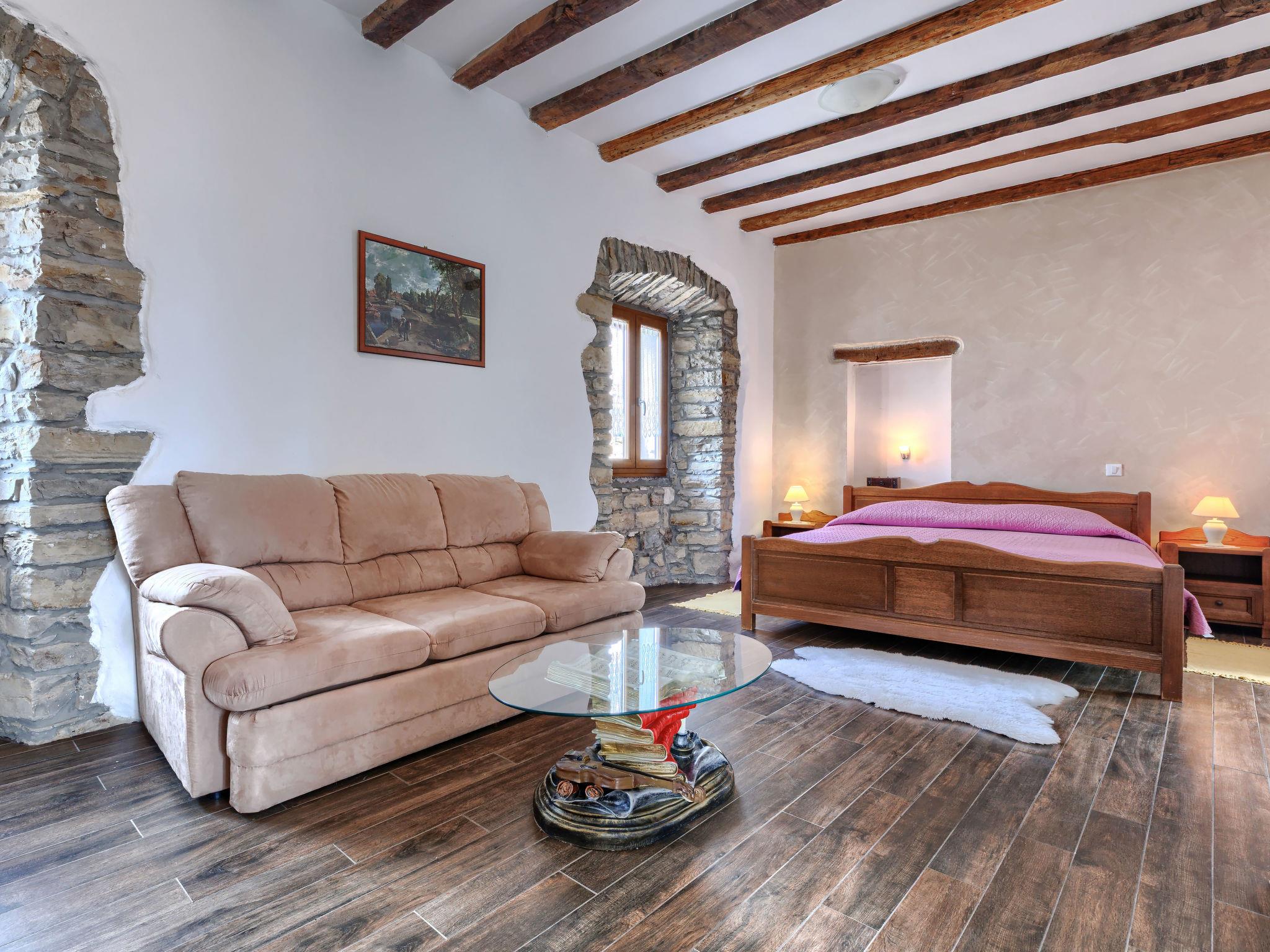 Rustic semi-detached house "Villa Letizia", 3 storeys. 200 m from the centre of Oprtalj, 10 km from the centre of Motovun, in a sunny, elevated position on a slope, 25 km from the sea, in a cul-de-sac. Private: property 350 m2 (fenced), swimming pool angular (24 m2, depth 150 cm, seasonal availability: 01.May. - 01.Oct.) with internal staircase. Garden furniture, barbecue (slide), pool maintenance by the owner/gardener. In the house: internet access, table football, trampoline. Public car park. Grocery 150 m, supermarket 12 km, restaurant 150 m, bus stop 12 km, railway station 37 km, pebble beach 25 km, rocky beach 25 km. Walking paths from the house, cycle lane 50 m. Object suitable for 6 adults + 2 children.