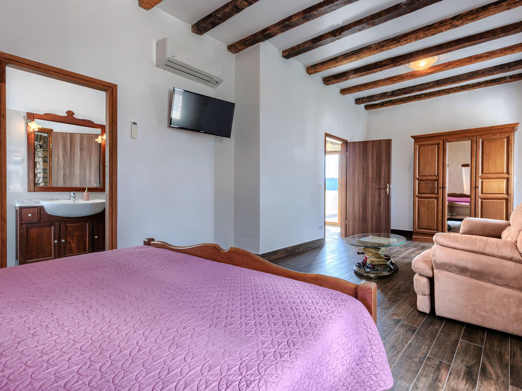 4-room villa 140 m2 on 3 levels. Tasteful furnishings: living/dining room with open-hearth fireplace (only for decoration), satellite TV. Kitchen (oven, dishwasher, 4 ceramic glass hob hotplates, toaster, kettle, microwave, freezer, electric coffee machine). Exit to the garden, to the terrace, to the swimming pool. Sep. WC. Upper floor: entrance hall. Exit to the garden, to the swimming pool. 1 room with 1 french bed (160 cm, length 200 cm), shower/WC, satellite TV and air conditioning. 1 room with 2 beds (80 cm, length 190 cm), shower/WC, satellite TV and air conditioning. 2nd upper floor: entrance hall. Exit to the terrace. 1 room with 1 double sofabed (140 cm, length 190 cm), 1 french bed (180 cm, length 200 cm), shower/WC, satellite TV and air conditioning. Terrace 15 m2, roofed, terrace 15 m2. Terrace furniture, deck chairs. Beautiful panoramic view of the countryside. Facilities: washing machine, baby cot, hair dryer. Maximum 1 pet/ dog allowed.
