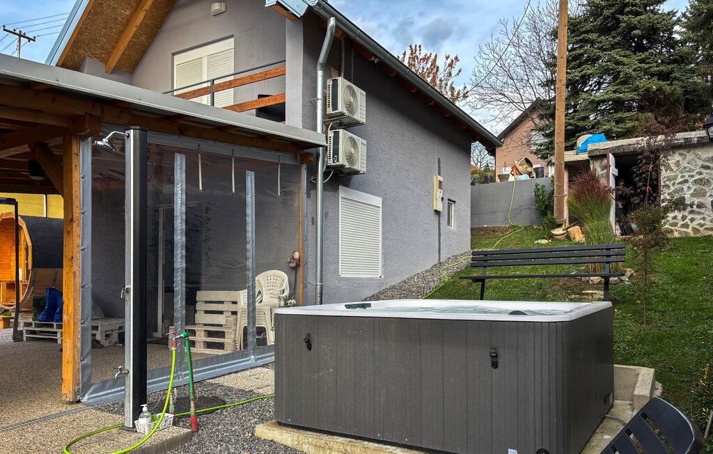 Tilbring en afslappende ferie i dette feriehus med spabad og sauna. Dette rummelige og moderne indrettede feriehus tilbyder et komfortabelt tilflugtssted midt i idyllisk natur og kun få skridt fra en badesø. Planlæg jeres aktiviteter med harmoniske måltider ved det indbydende spisebord, og efter en lang dag i den friske luft kan I slappe af i stuen med en spilleaften eller en god bog. Ren afslapning venter jer udenfor: Forkæl jer selv med afslappende øjeblikke i spabadet og saunaen, nyd den fredelige atmosfære med morgenmad på terrassen, og fejr tiden sammen med mindeværdige grillfester. Vandr gennem de maleriske vinmarker eller Papuk Naturpark, oplev imponerende vandfald, og nyd den betagende udsigt fra Velika-udsigtspunktet. Cykl gennem bølgende bakker og charmerende landsbyer, og besøg historiske steder som Stari Grad-fæstningen i Orahovica. Køb friske råvarer på lokale landmandsmarkeder, og prøv kroatisk køkken på hyggelige restauranter.