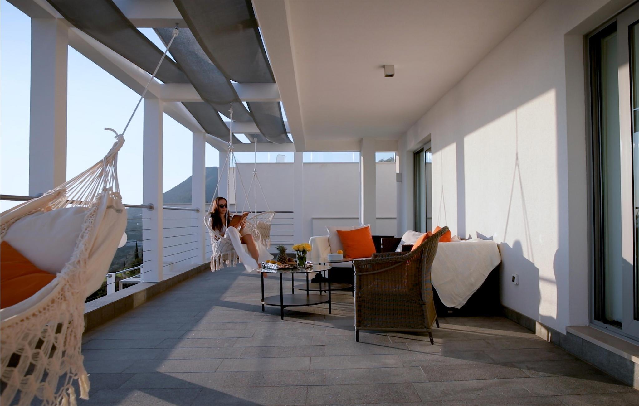 Indgangen og det omkringliggende område er udsmykket med en række forskellige middelhavsplanter. Glæd jer til et par dage fyldt med middelhavsferiefornemmelse med havudsigten som fast følgesvend.