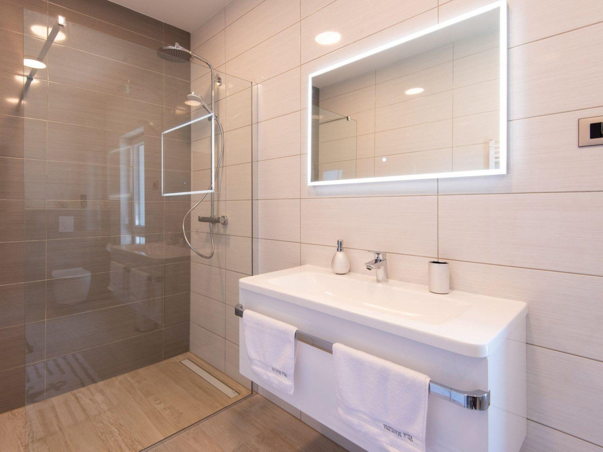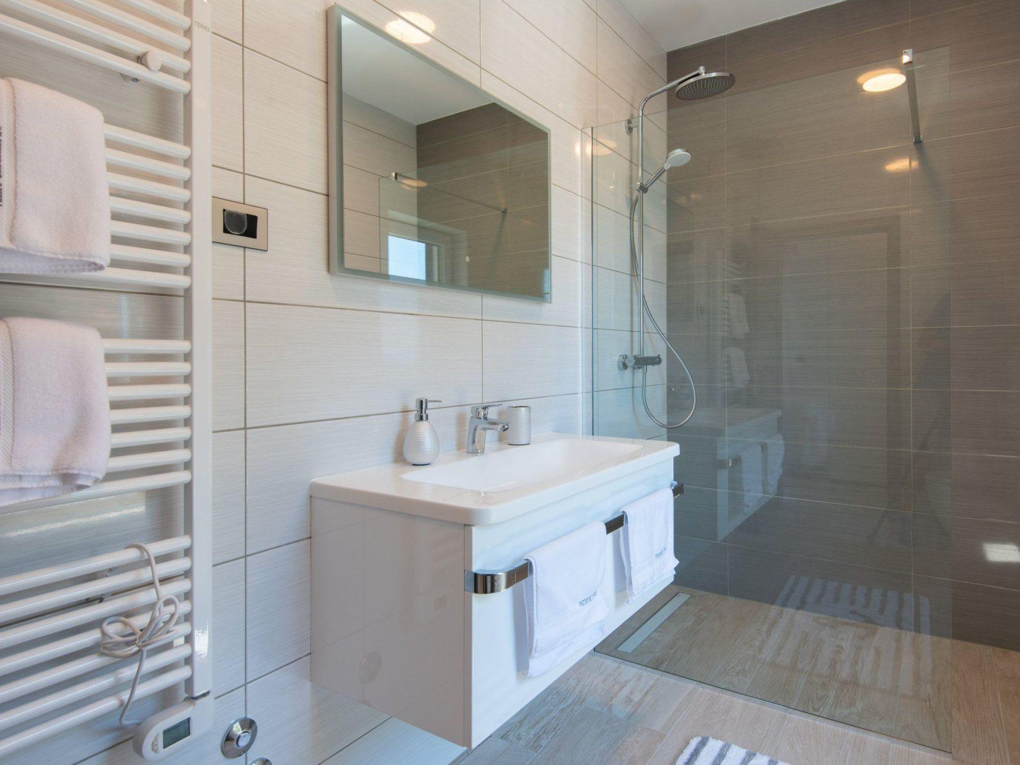 On the ground floor you can find the living room with a large sofa and a pool view. It is connected to a fully equipped kitchen and the dining room. In addition, on the ground floor there is also a bedroom with a private bathroom.