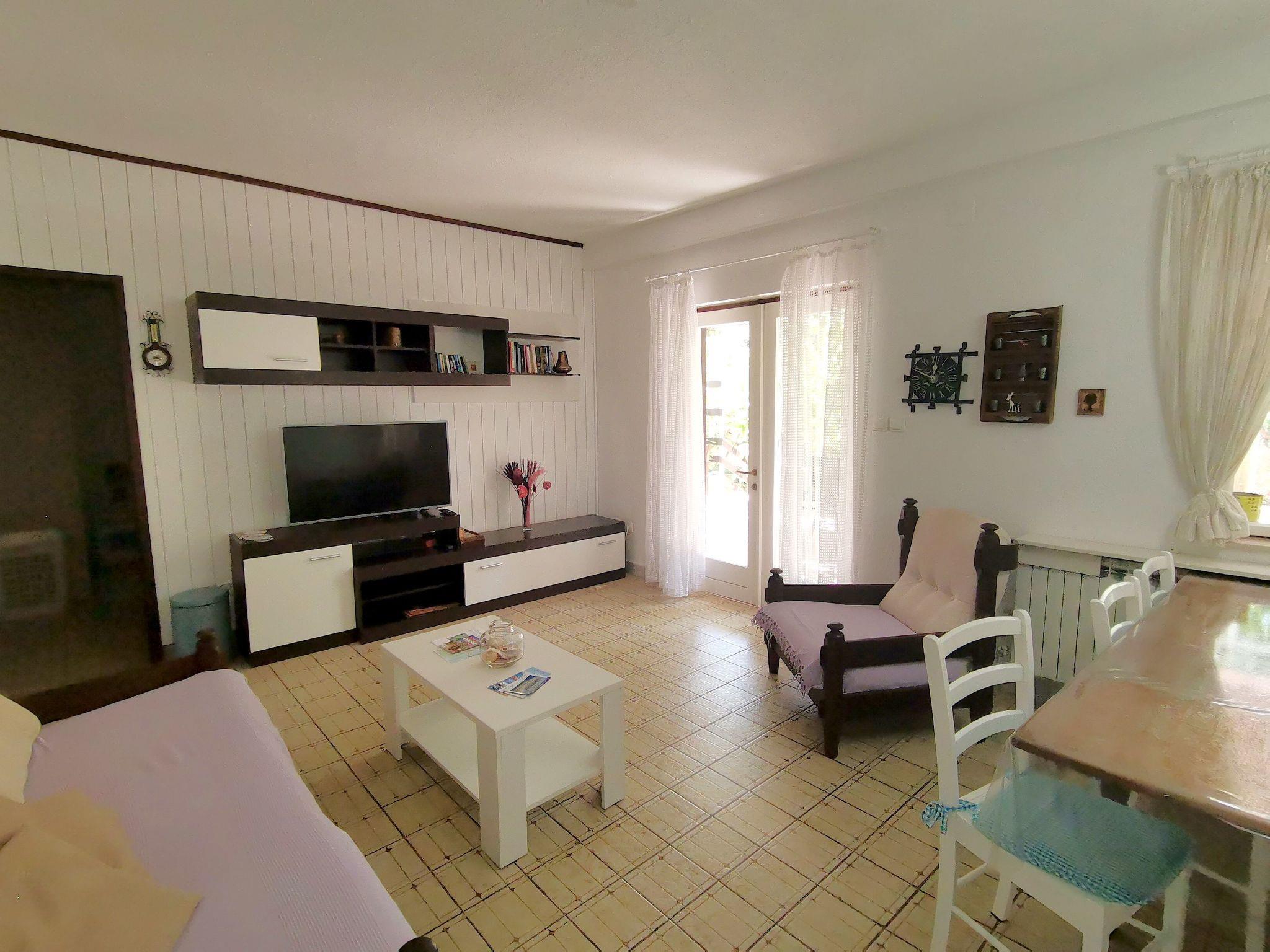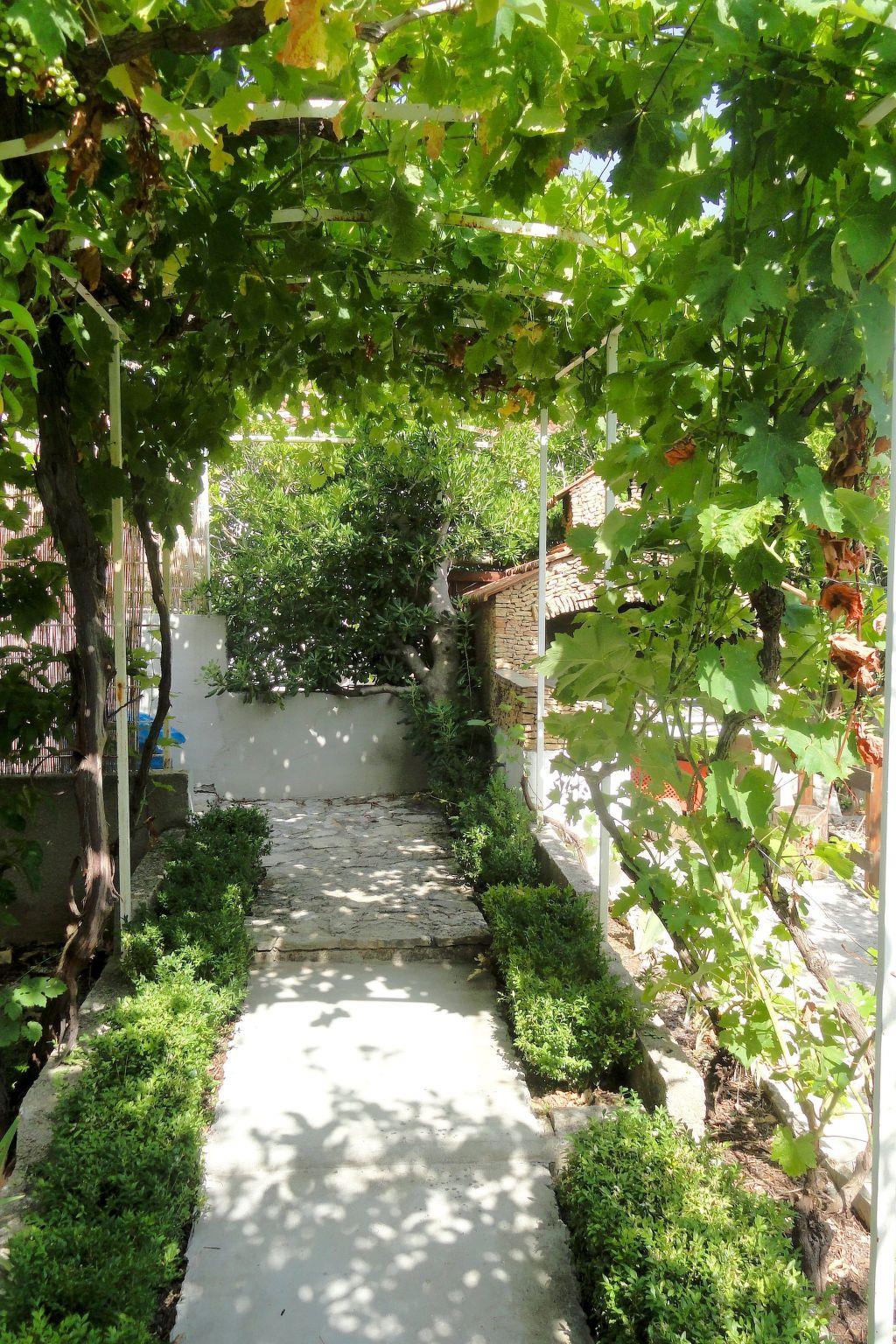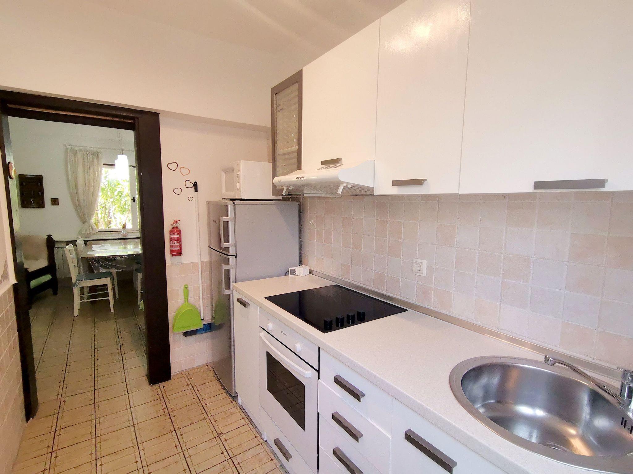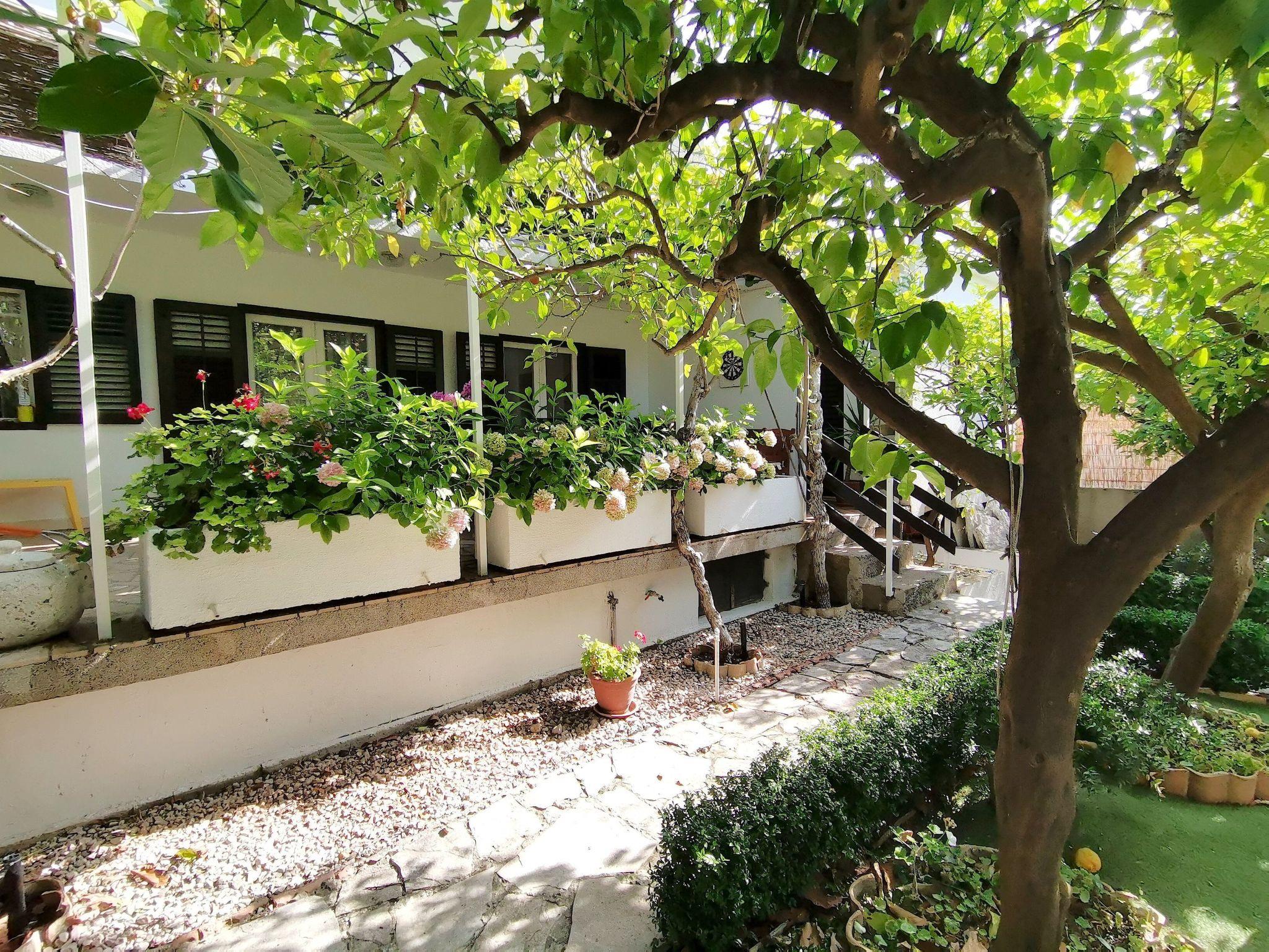 The holiday house is below the main road in a quiet area without car traffic, as the road towards the sea, about 100 metres away, ends with steps.