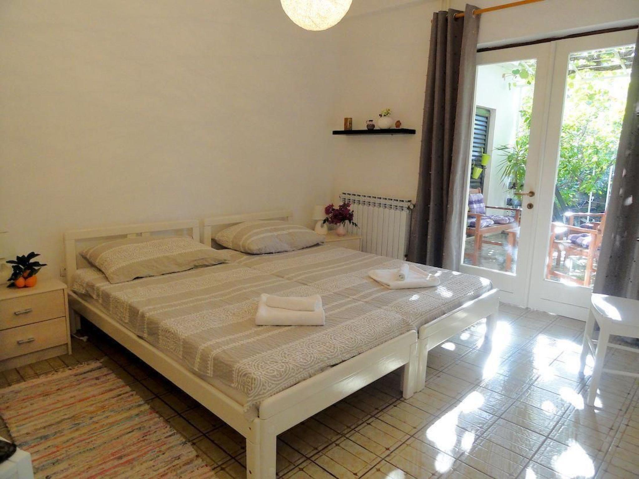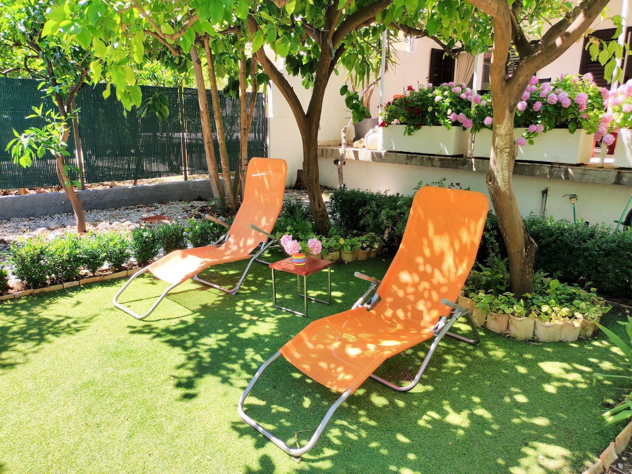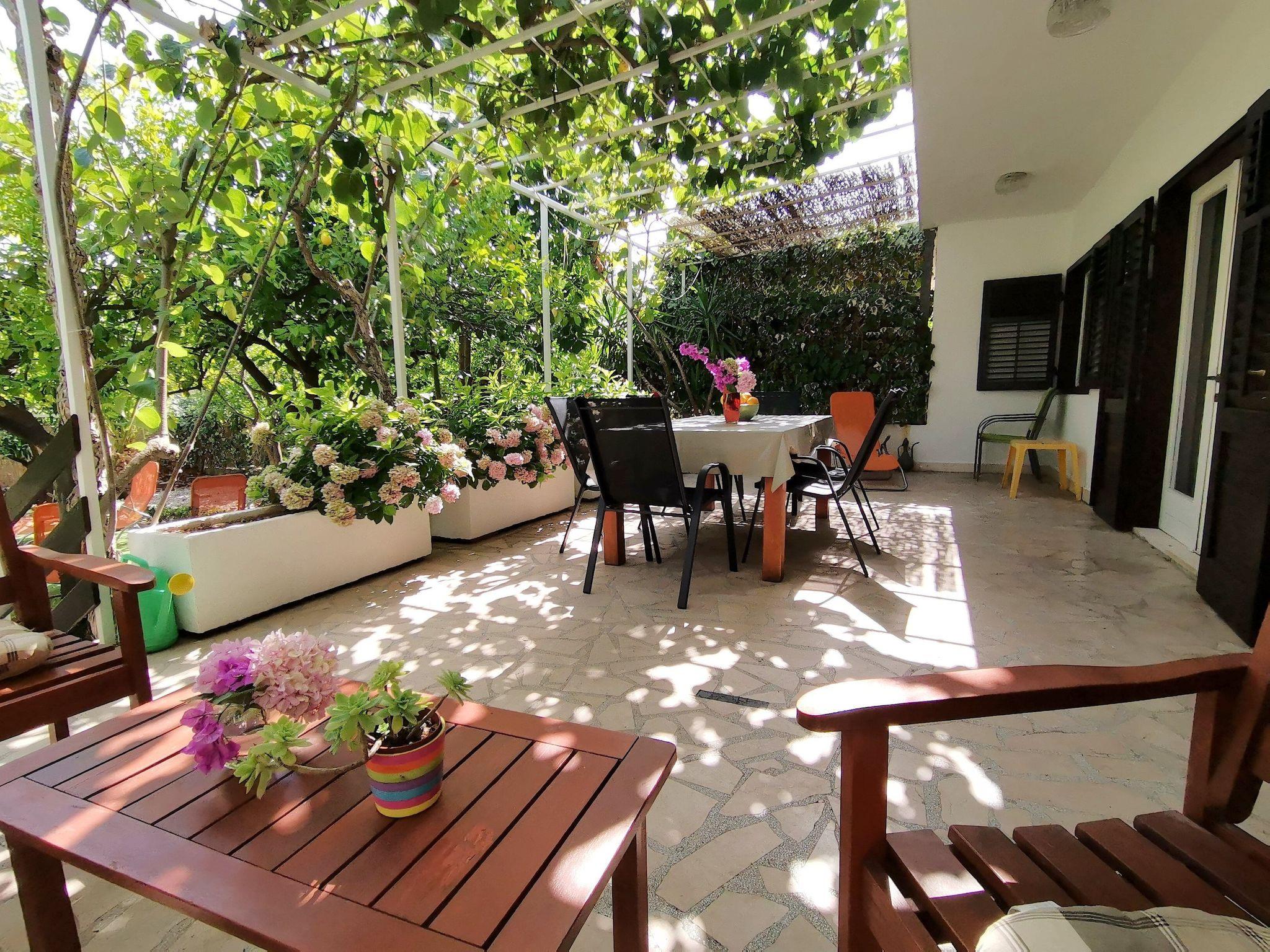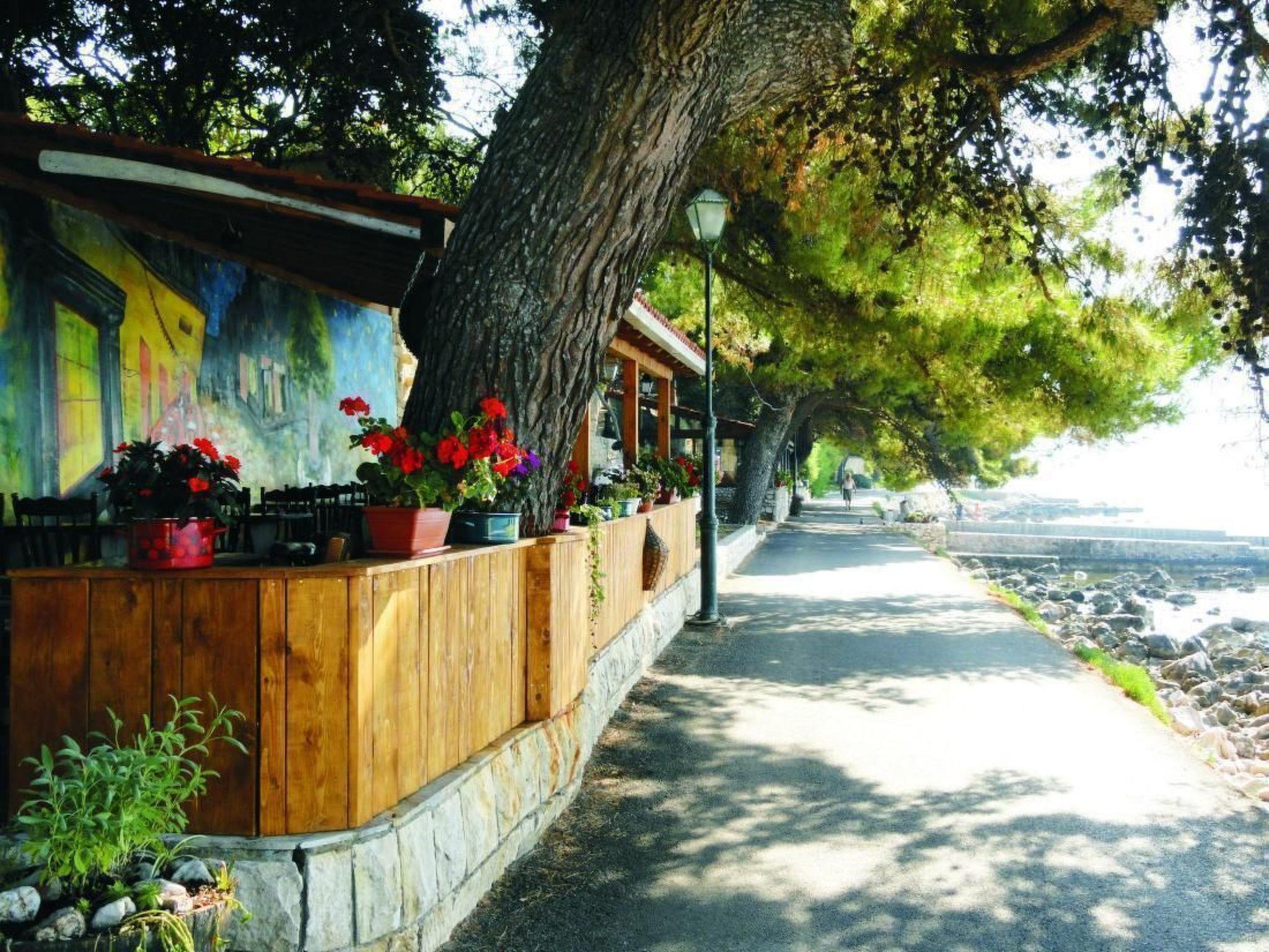 The holiday house is below the main road in a quiet area without car traffic, as the road towards the sea, about 100 metres away, ends with steps.