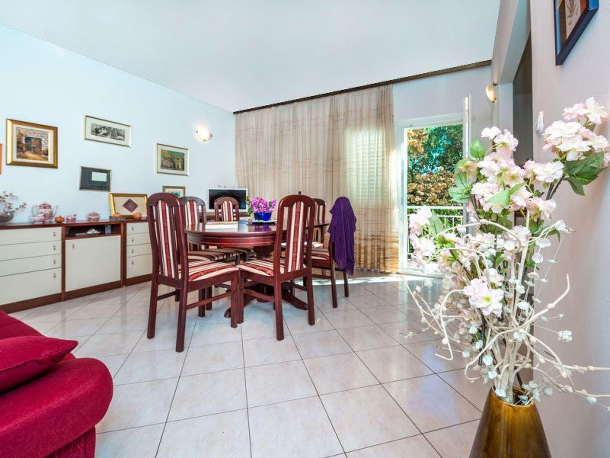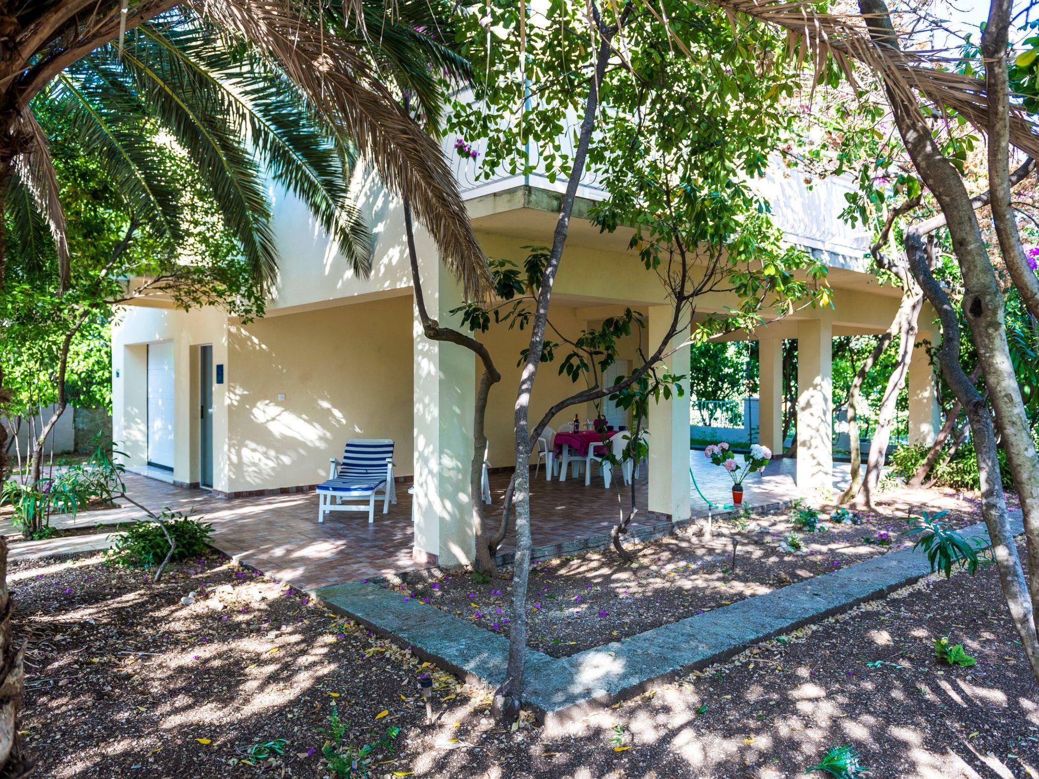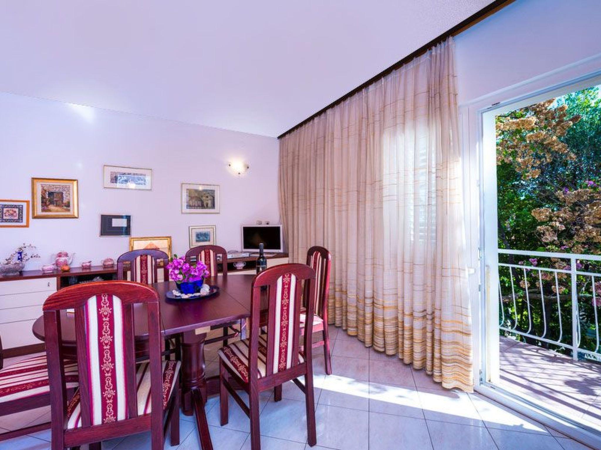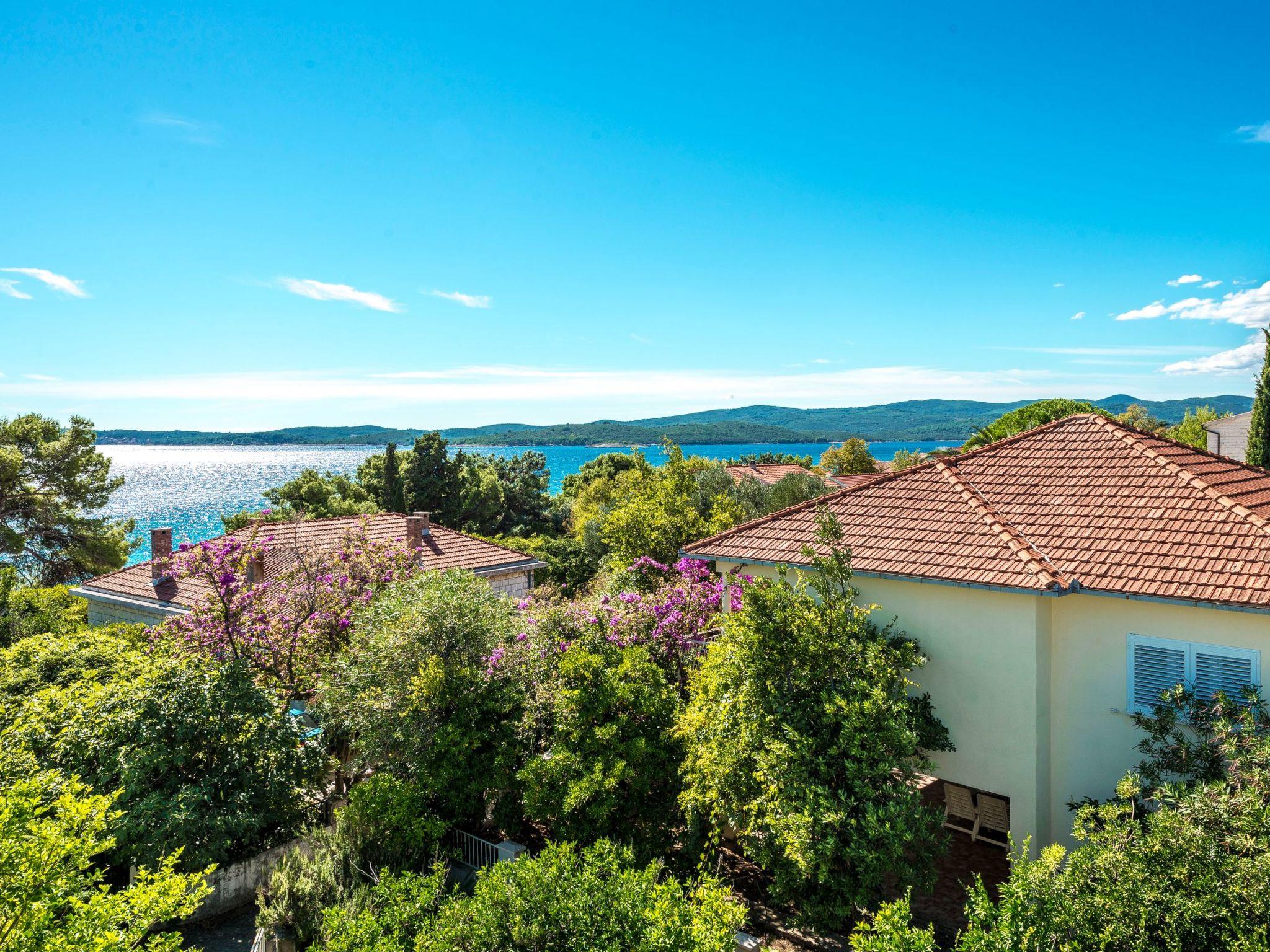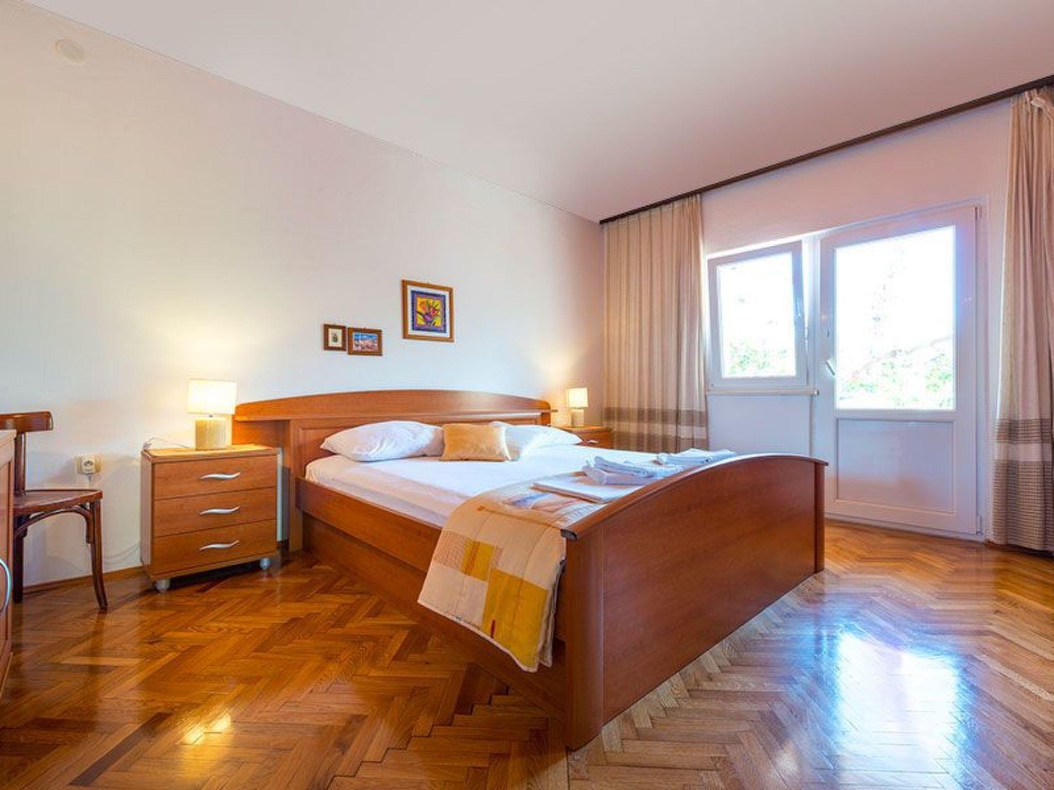 The outdoor area of the property is just as inviting, with 500 m2 of private, fenced grounds featuring trees and a natural garden. Just a stone's throw away, at 30 meters, is a pebble beach for those who love to swim or sunbathe, while the largest sandy beach "Trstenica" is only 200 meters away. This beach stretches over 1000 meters and offers a perfect place for a day under the sun. With two parking spaces available—one in the garage and one in front of it—guests have the convenience of secure parking right at the property.
