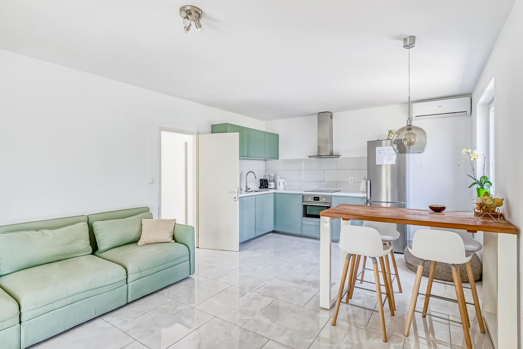 Villa Marta er et moderne møbleret sommerhus, fuldt udstyret. I stueetagen er stuen med åbent køkken, med døre, der giver direkte adgang til den solbadede terrasse. Nedenunder er også et toiletrum, hvor der også er en vaskemaskine og tørretumbler. På øverste etage er der to soveværelser: et soveværelse med adgang til balkonen og et soveværelse med en lidt mindre dobbeltseng og en lænestol, der kan foldes ud til en enkeltseng. Begge soveværelser har tilstrækkelig skabsplads. Badeværelset med en rummelig bruseniche og et andet toilet er også placeret på øverste etage. I den store have er der plads nok til at parkere din (leje) bil, slappe af under oliventræet i hængekøjen eller kigge efter små skildpadder, der undertiden kommer på besøg i haven. Villa Marta er ikke-ryger.